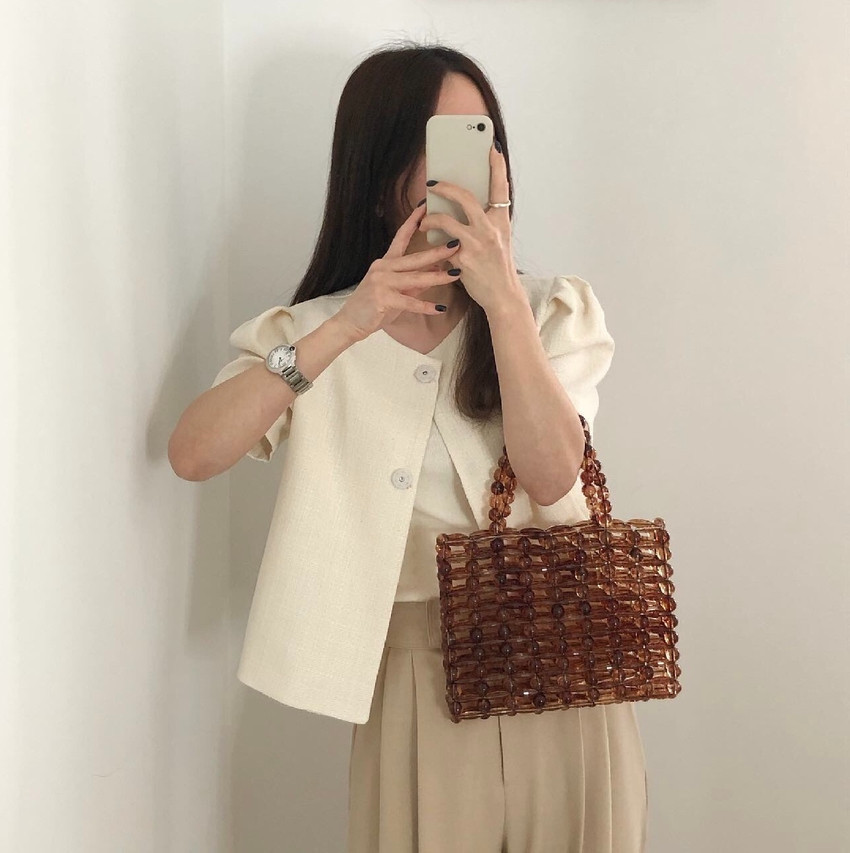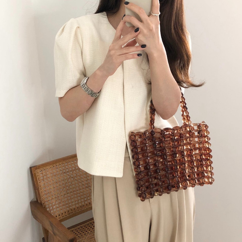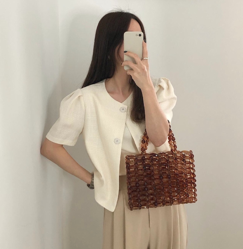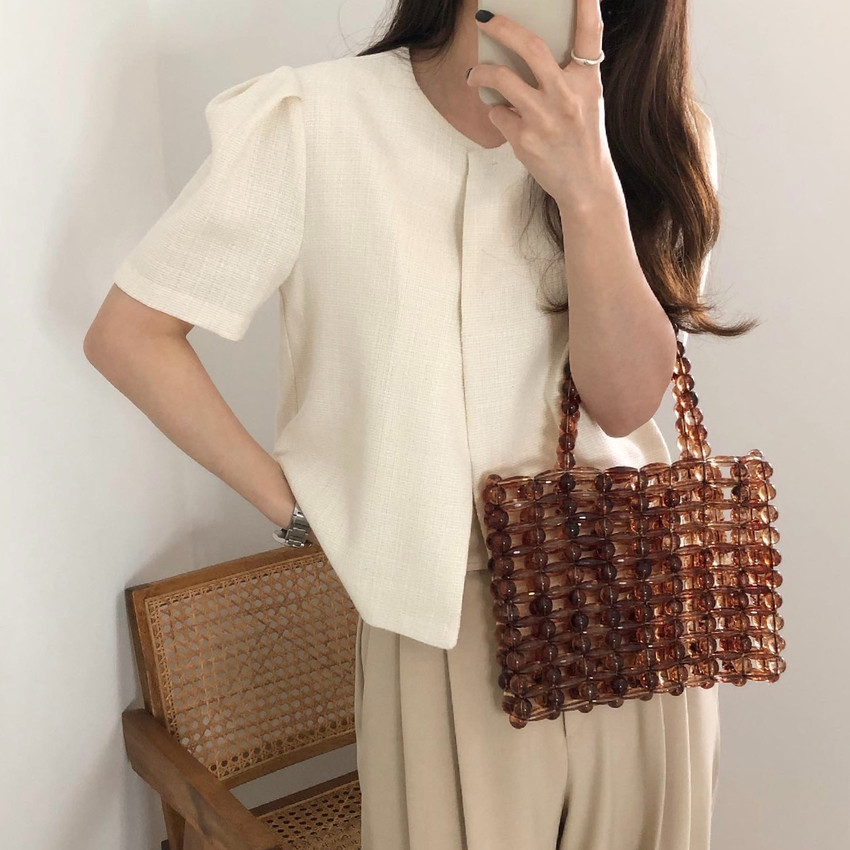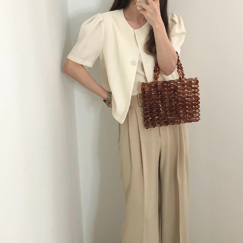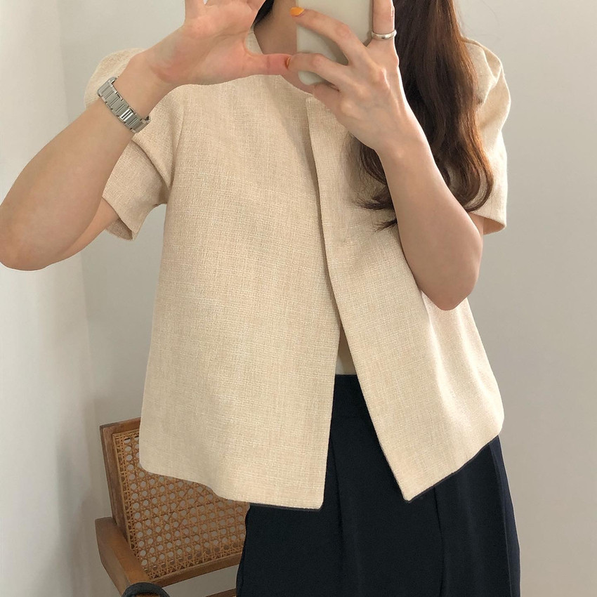 Suit Women's 2024 Summer New Two-button Crewneck Loose Puff Sleeve Cardigan Small Suit Jacket Top