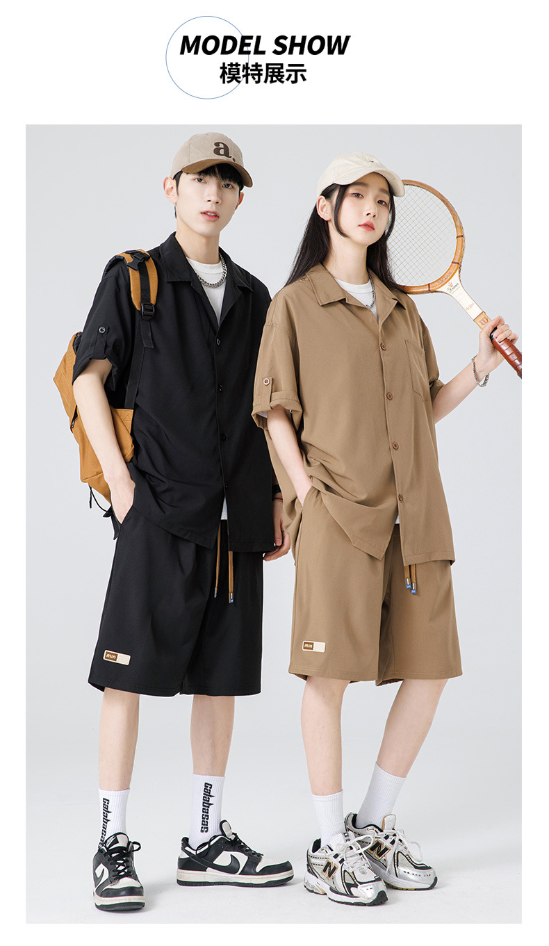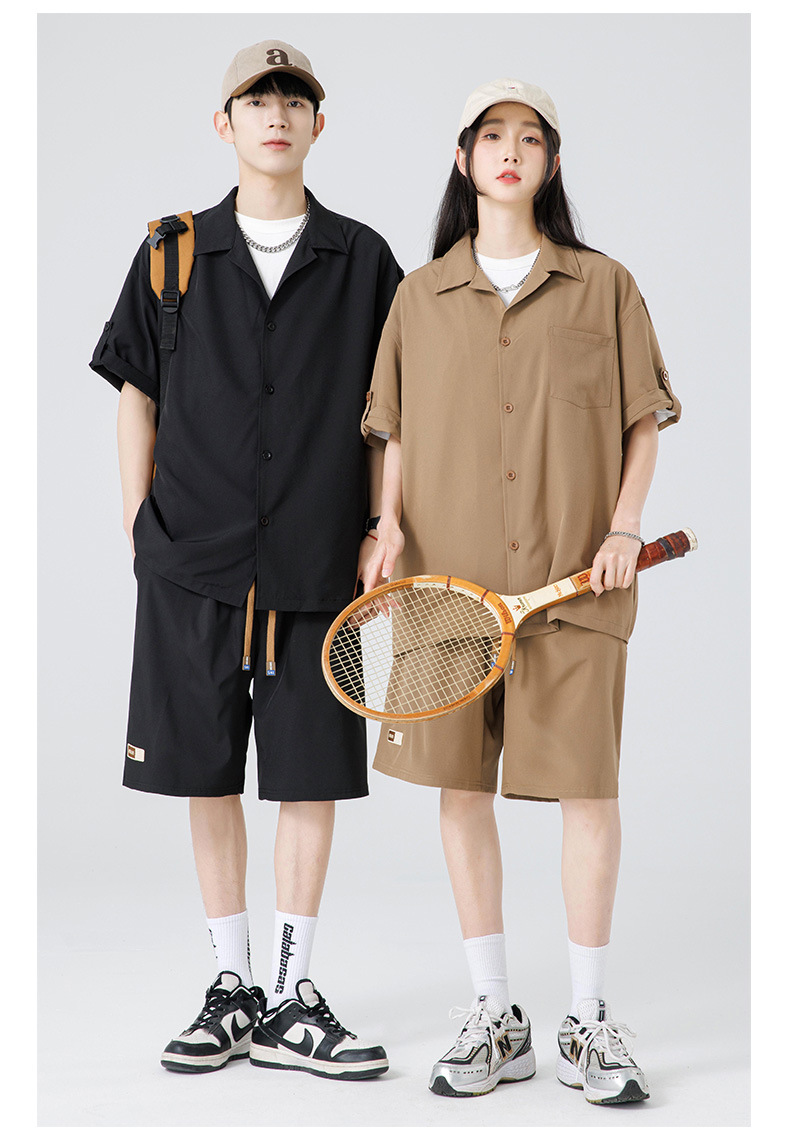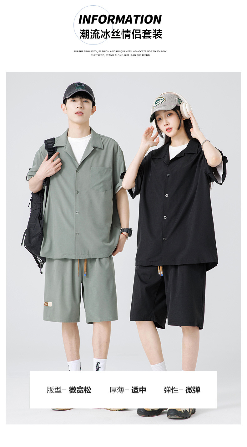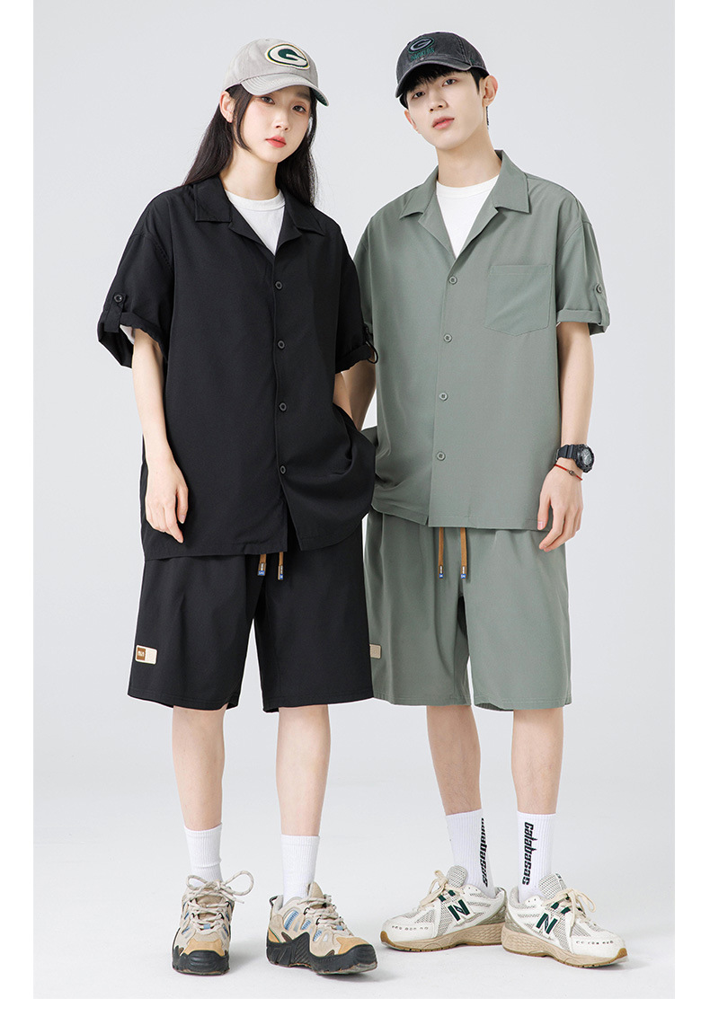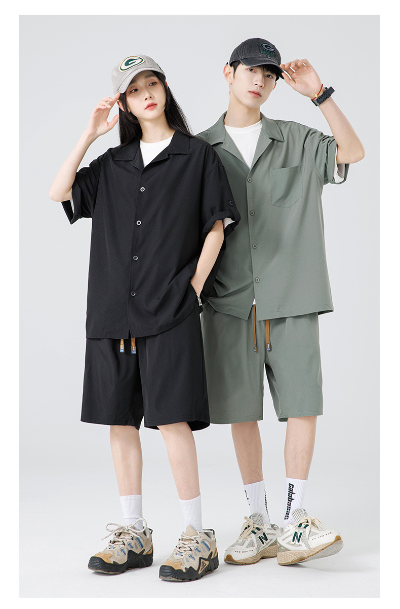 Summer Ultra-thin Draped Ice Silk Men's and Women's Same Shirt Suit 2024 Short-sleeved Polo Shirt Solid Color Sports Suit