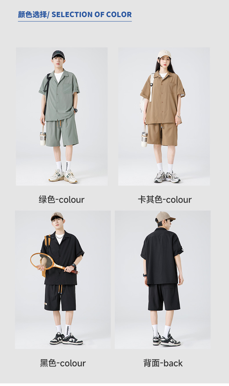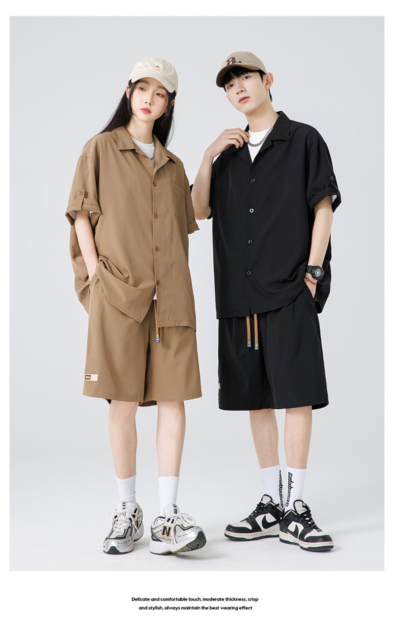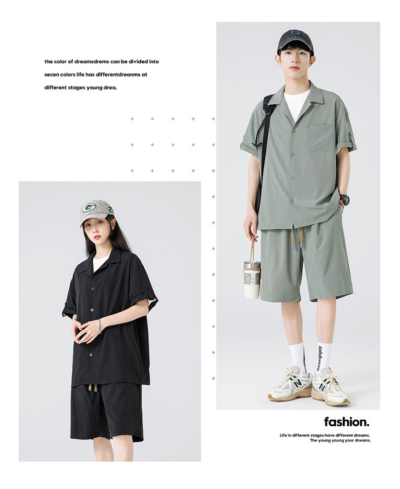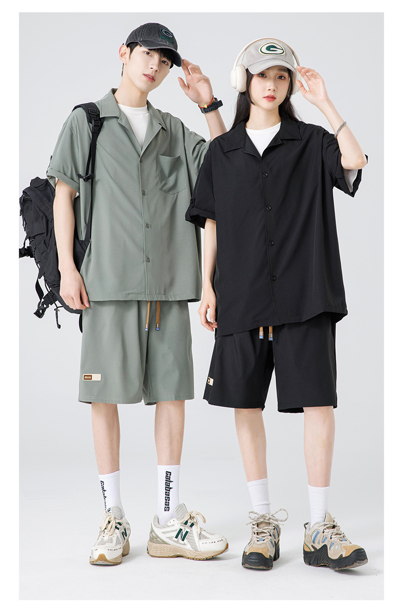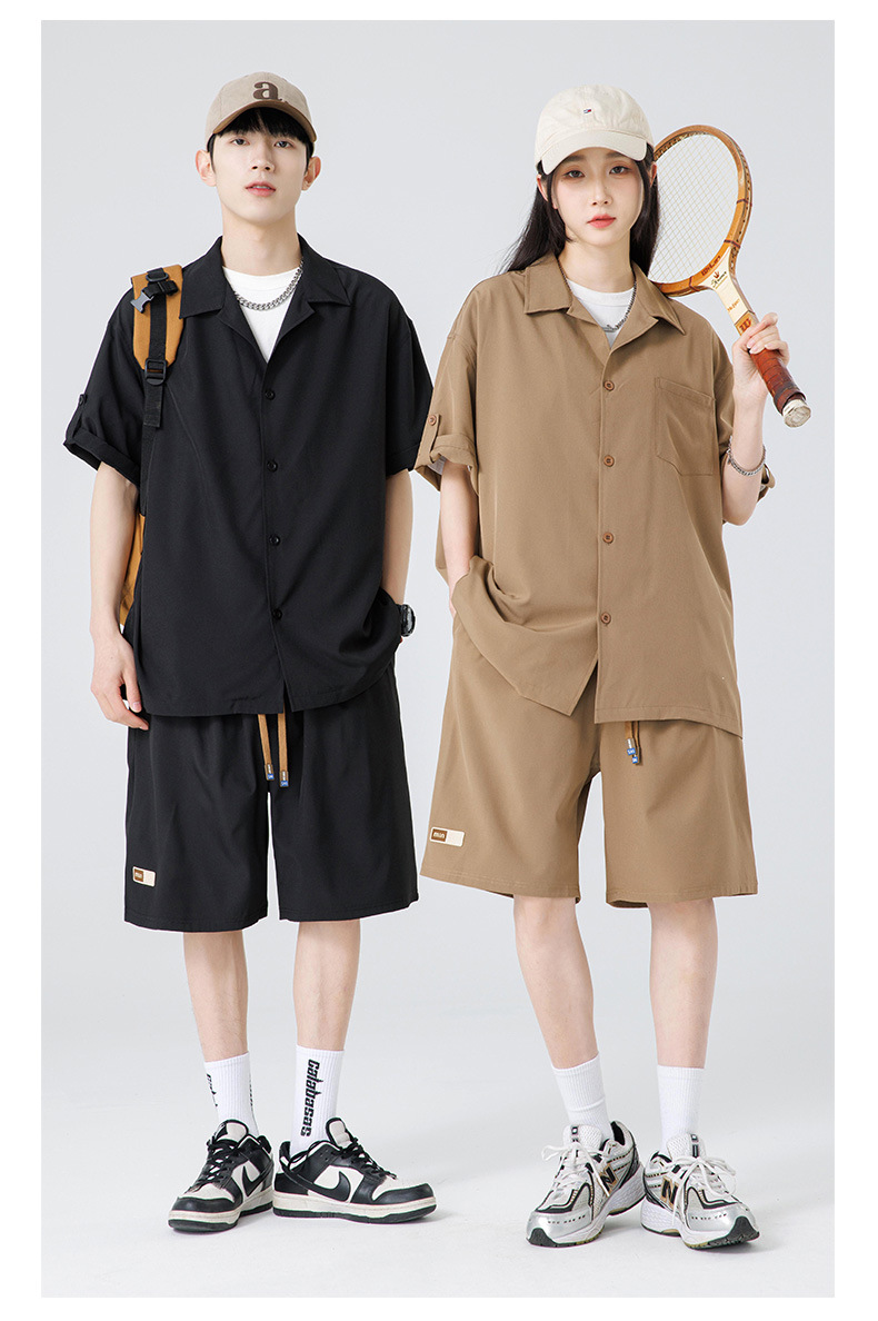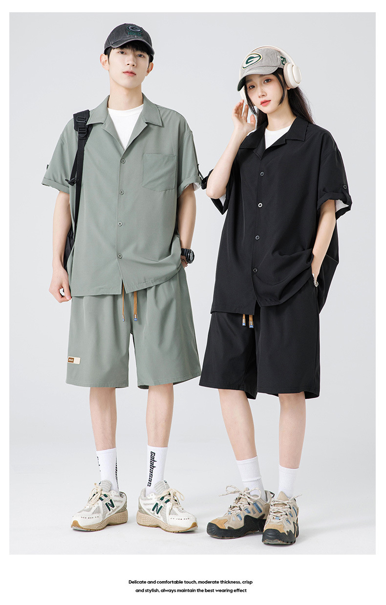 Summer Ultra-thin Draped Ice Silk Men's and Women's Same Shirt Suit 2024 Short-sleeved Polo Shirt Solid Color Sports Suit