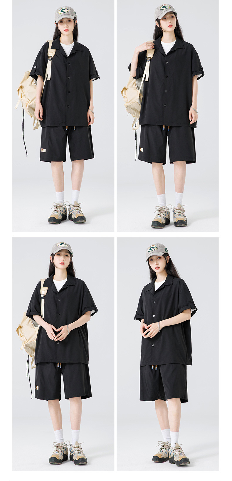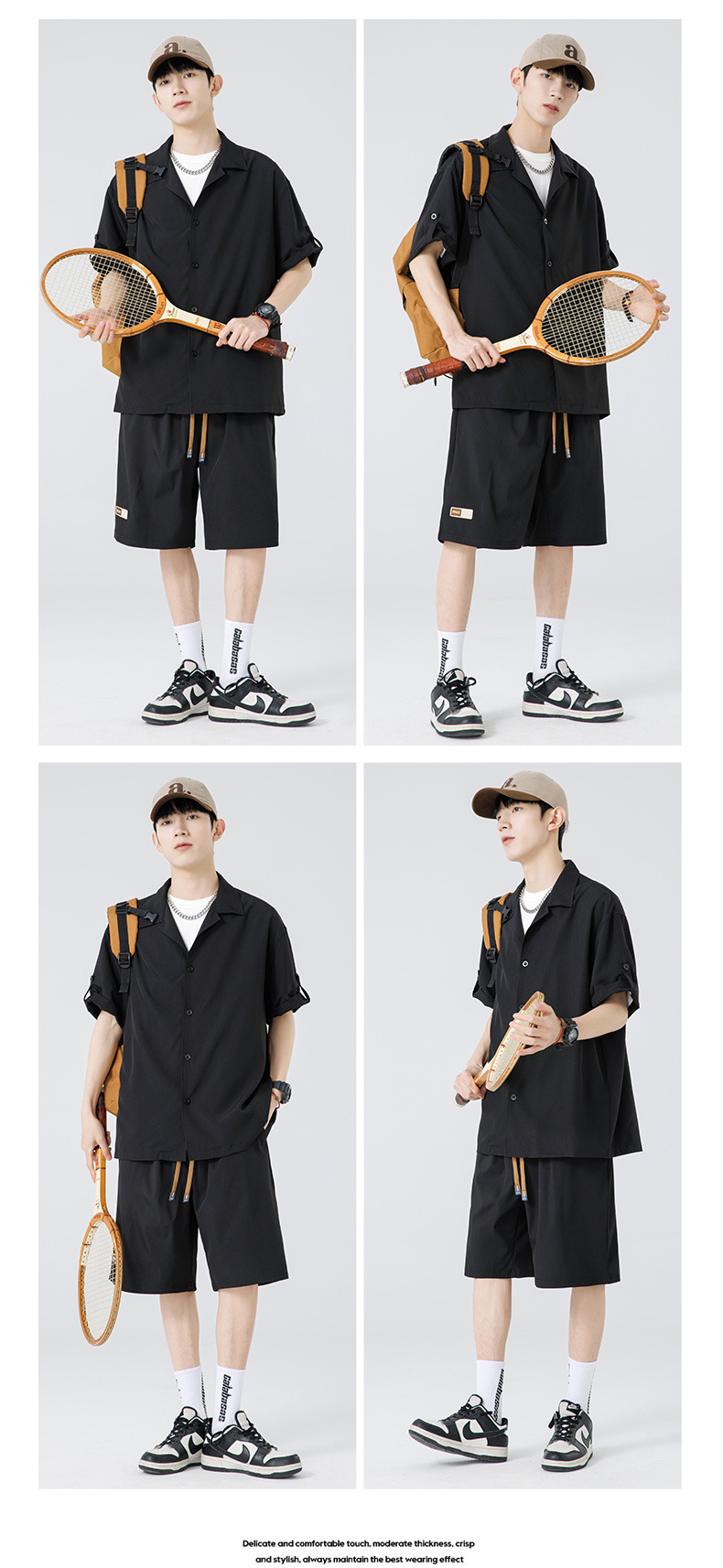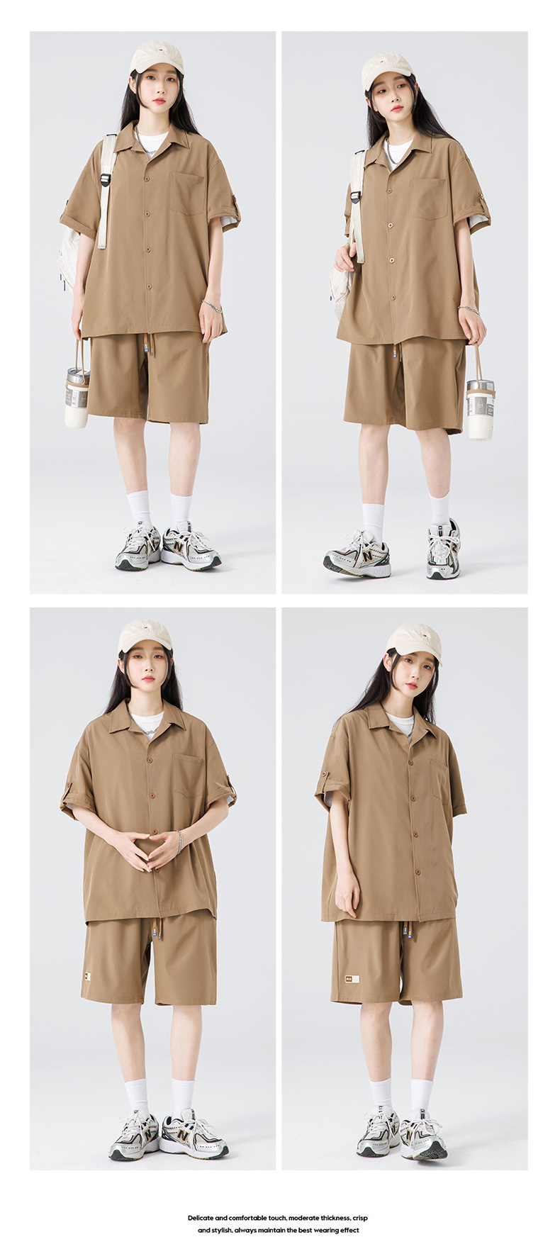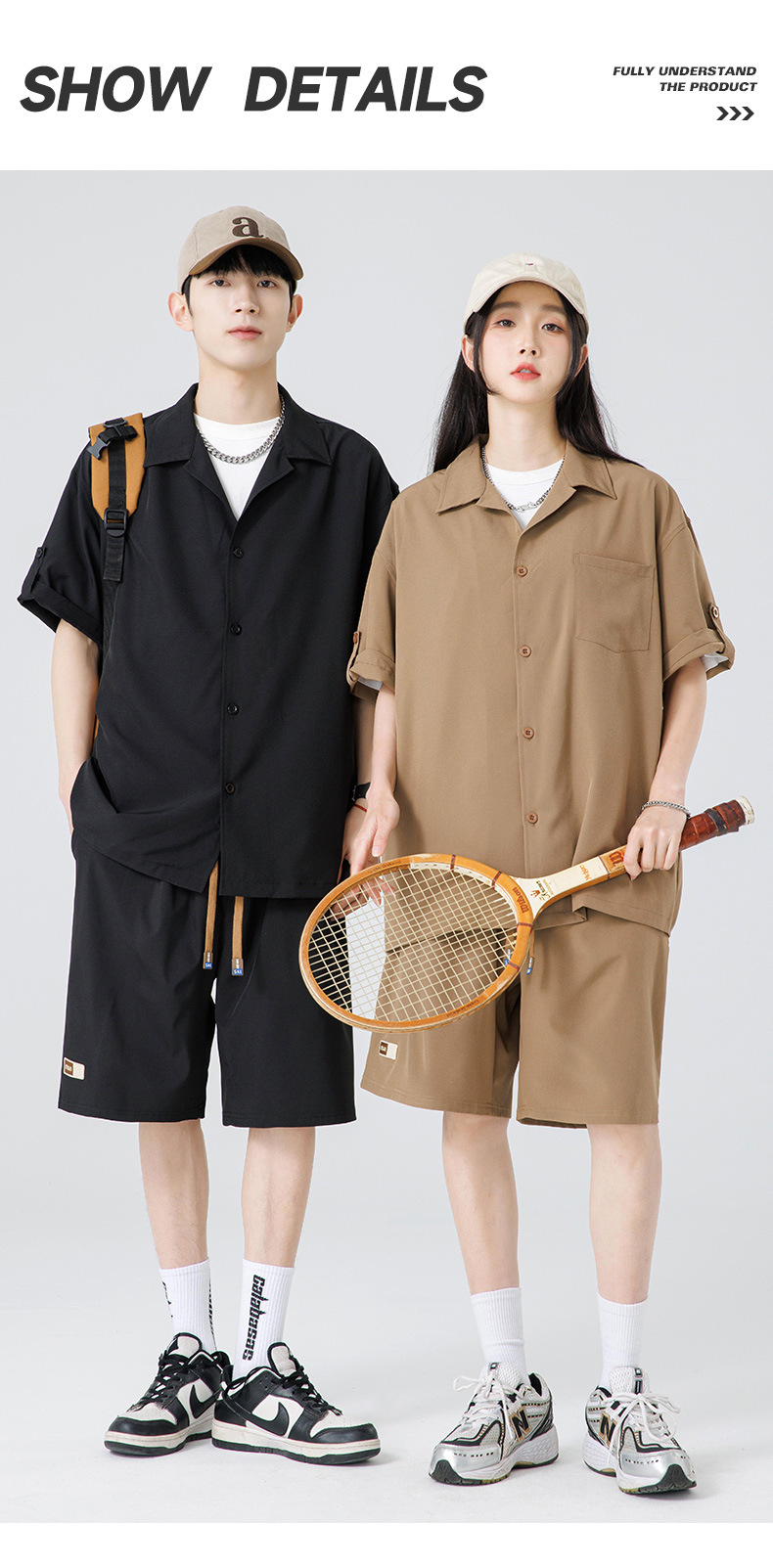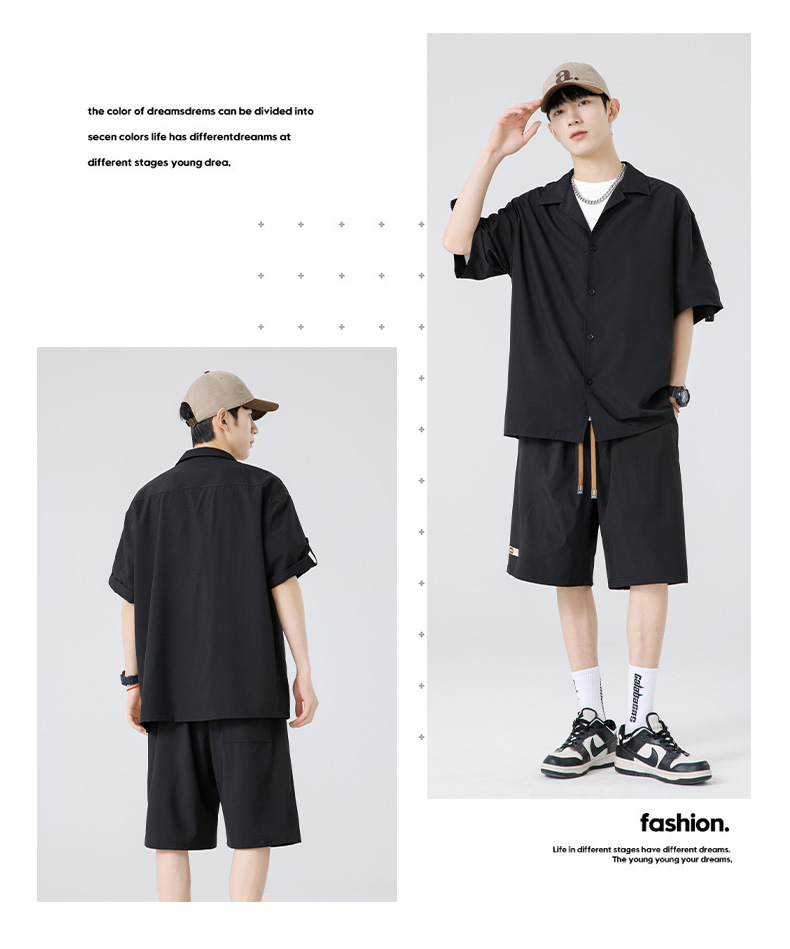 Summer Ultra-thin Draped Ice Silk Men's and Women's Same Shirt Suit 2024 Short-sleeved Polo Shirt Solid Color Sports Suit