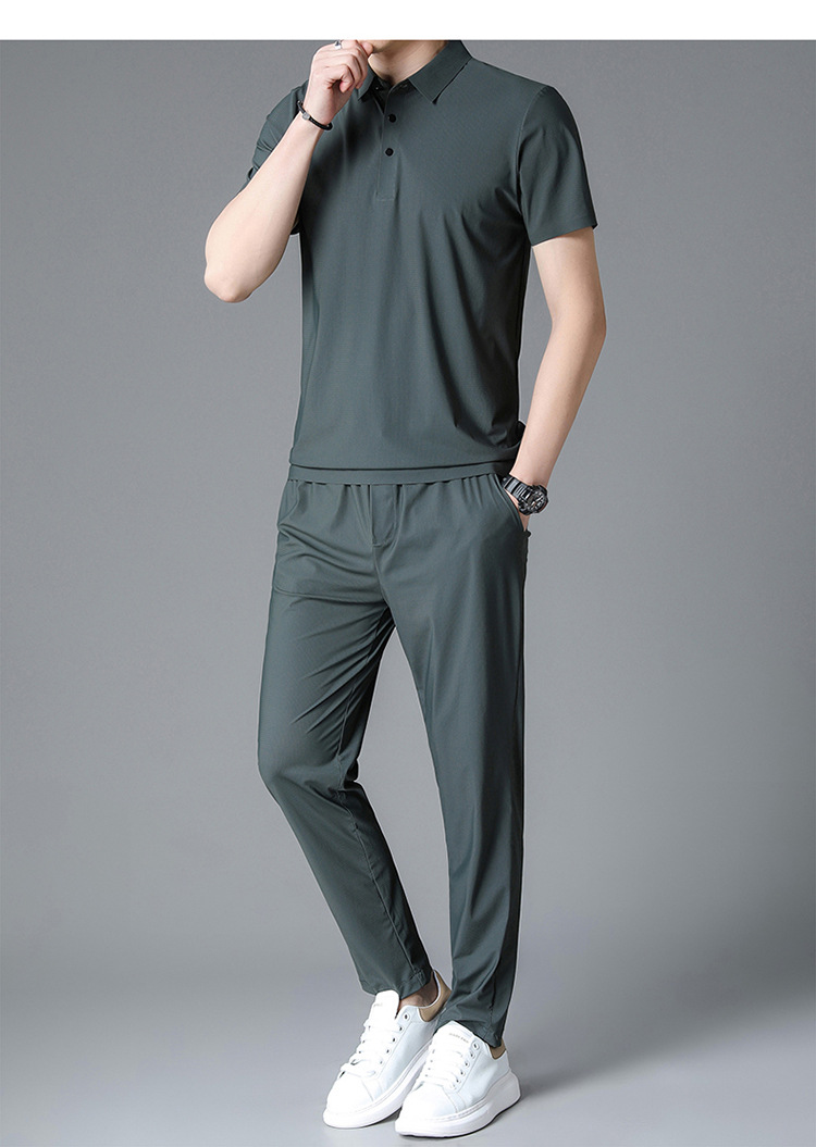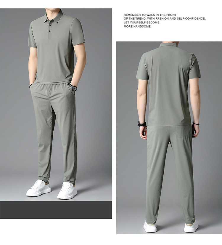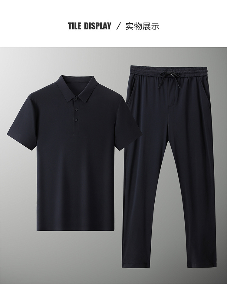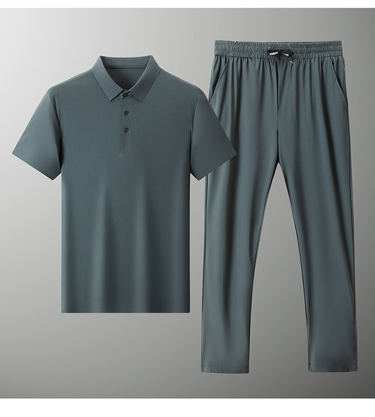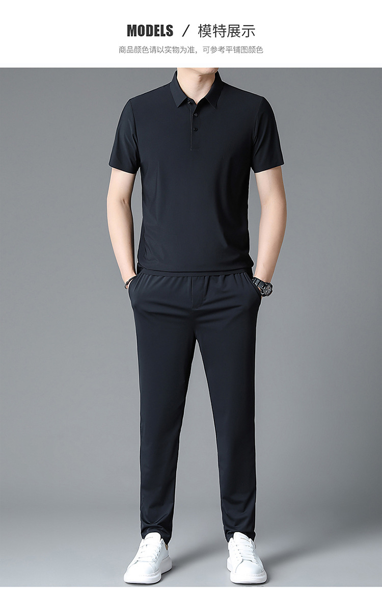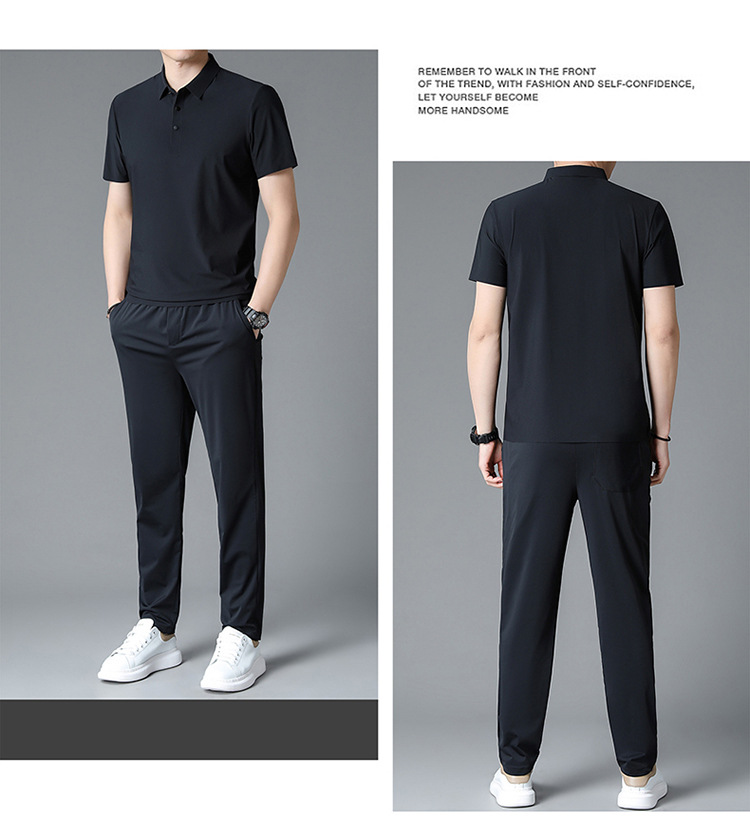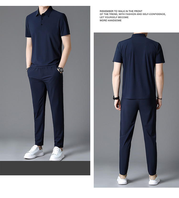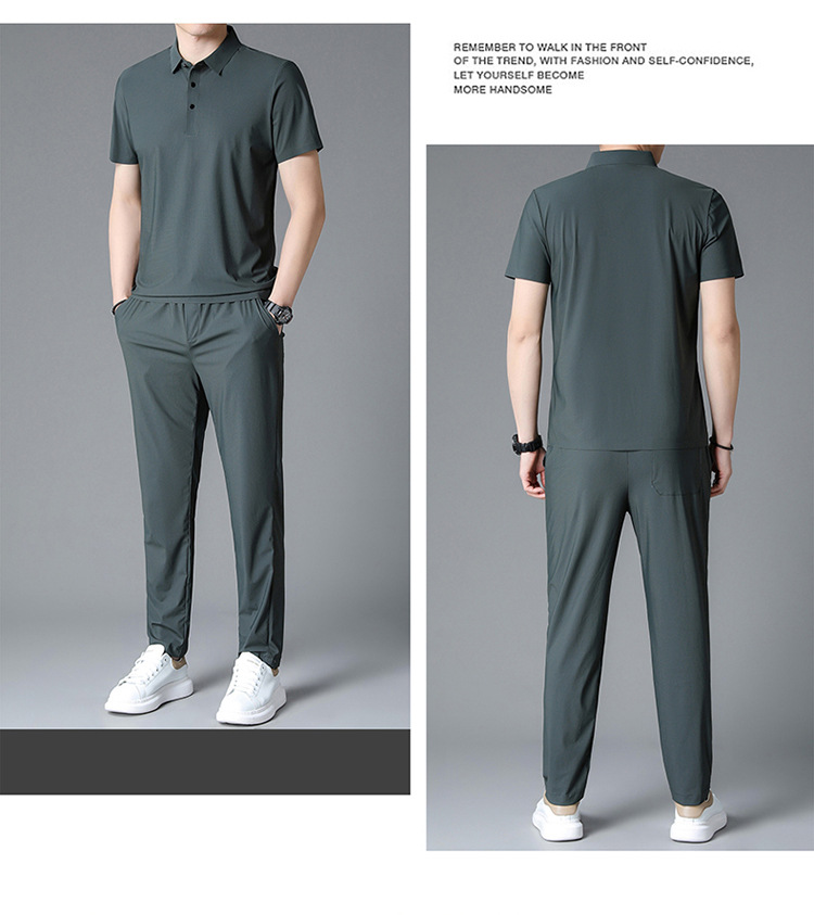 Traceless Men's Short-sleeved Ice Silk Fashion Two-piece Set Young and Middle-aged Casual Sports Shorts suit Polo Shirt suit