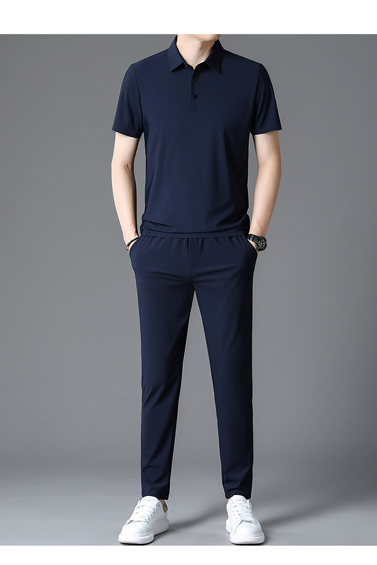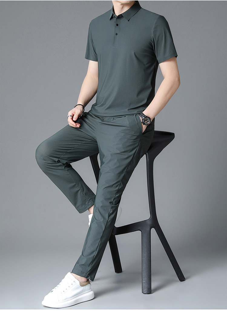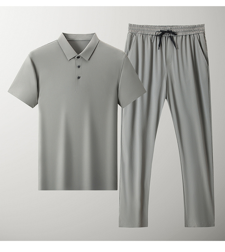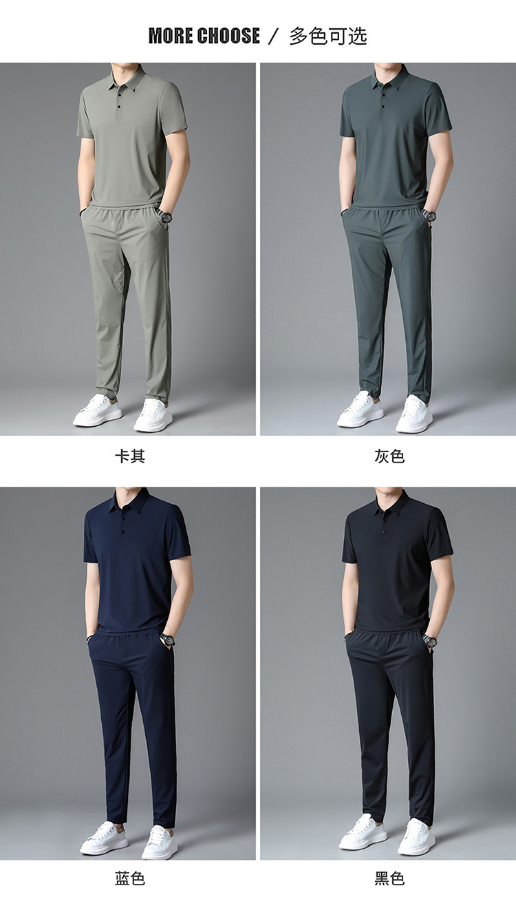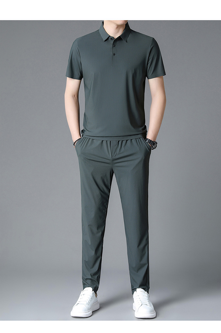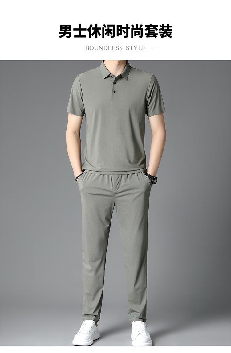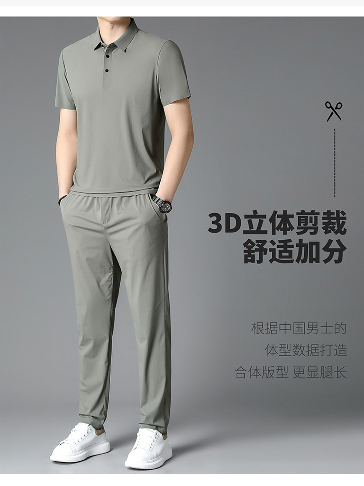 Traceless Men's Short-sleeved Ice Silk Fashion Two-piece Set Young and Middle-aged Casual Sports Shorts suit Polo Shirt suit