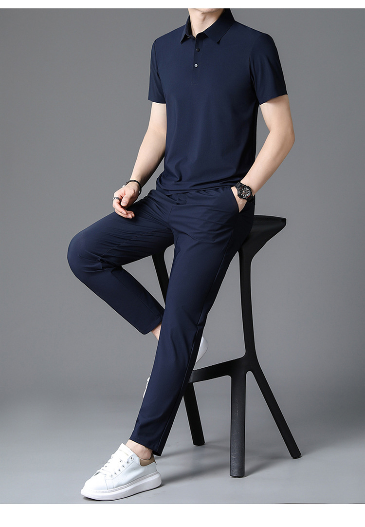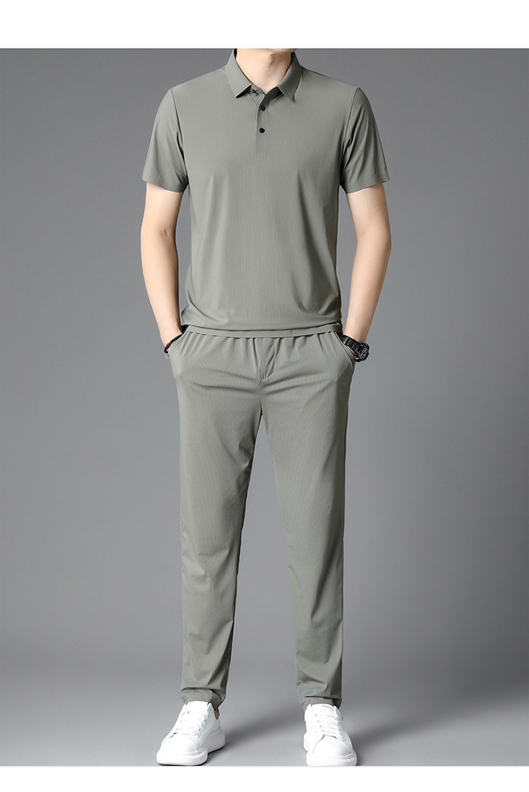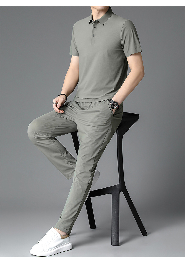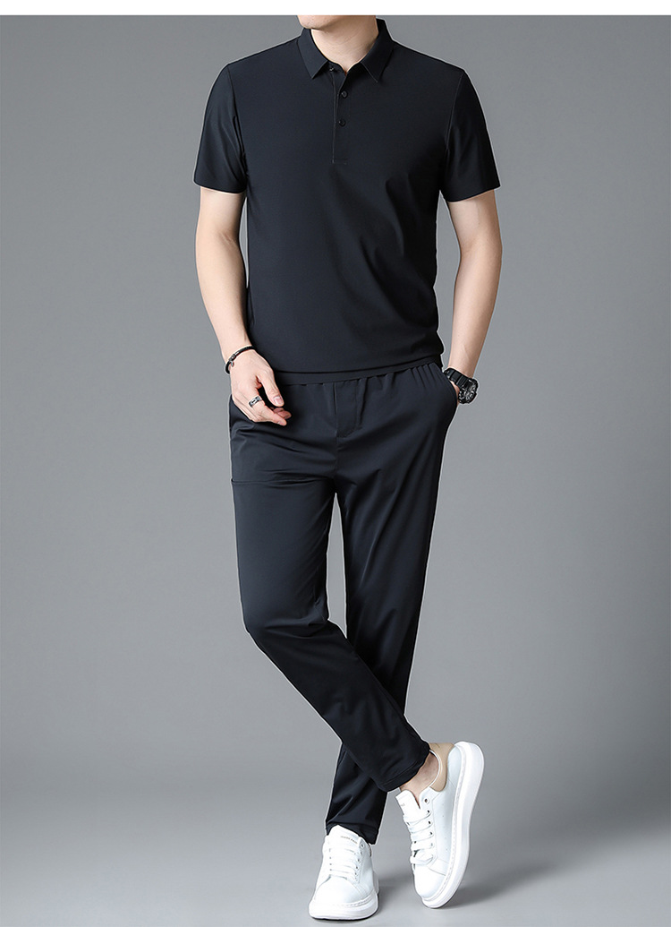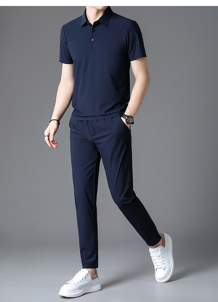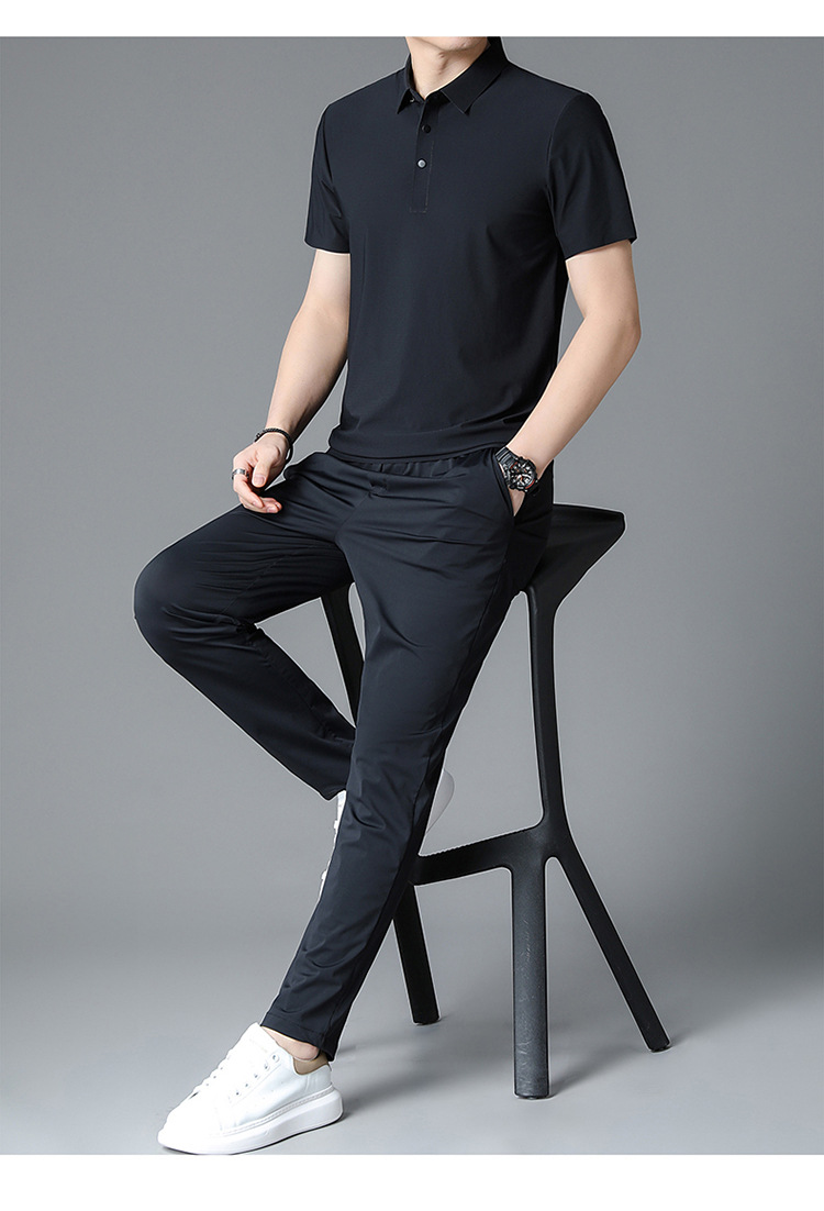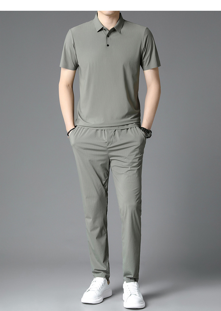 Traceless Men's Short-sleeved Ice Silk Fashion Two-piece Set Young and Middle-aged Casual Sports Shorts suit Polo Shirt suit