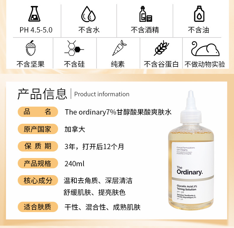 TheOrdinary tartaric acid toner 7% glycolic acid glycolic acid lotion exfoliating 240ml