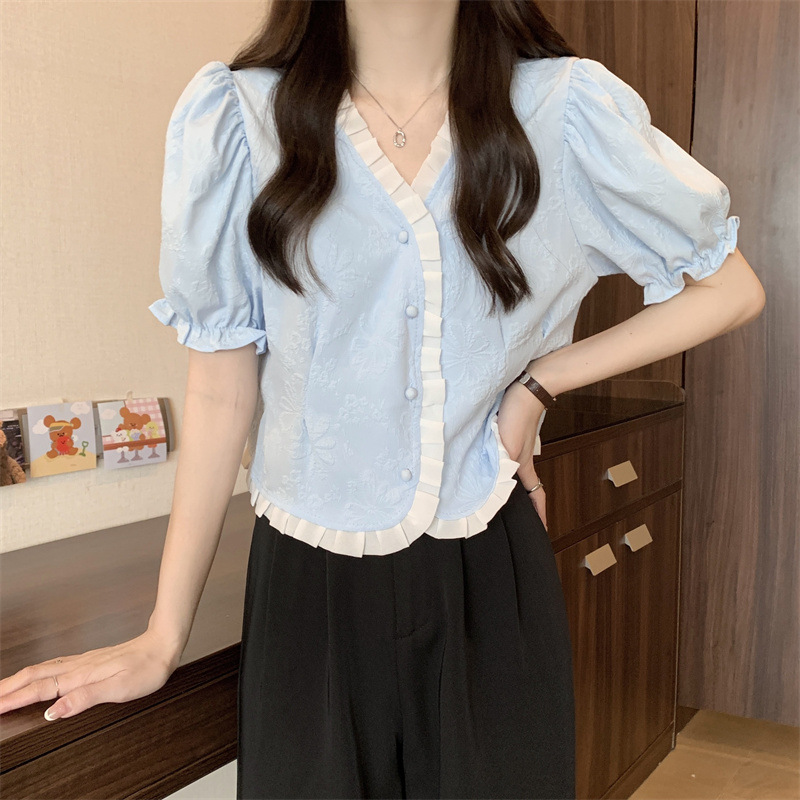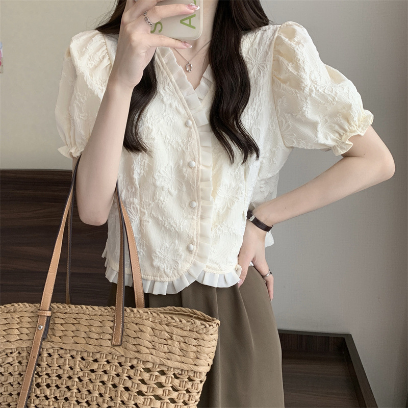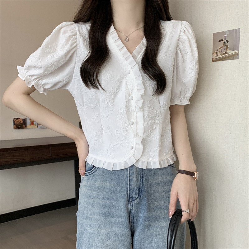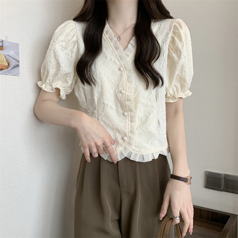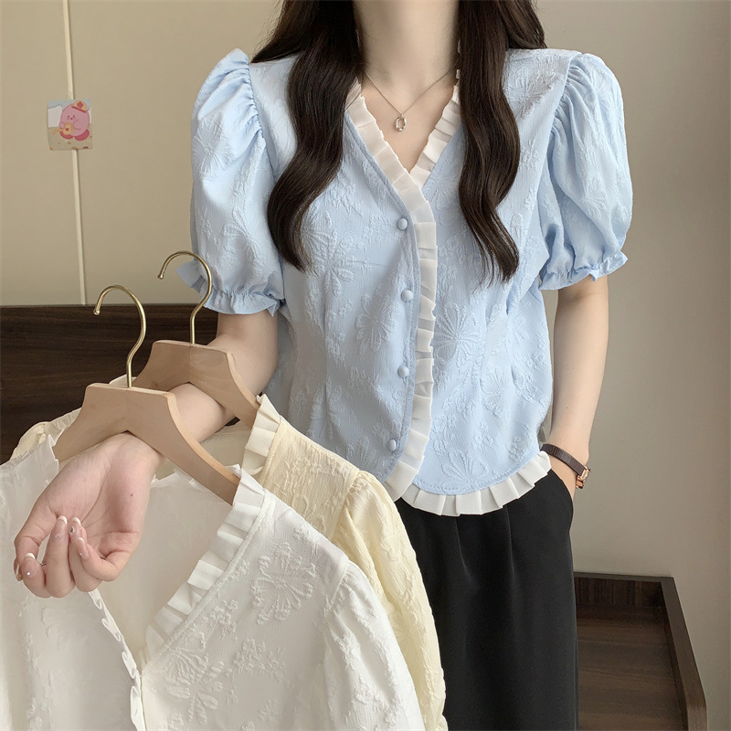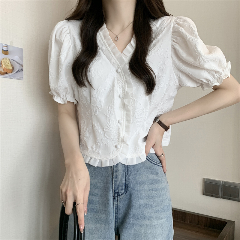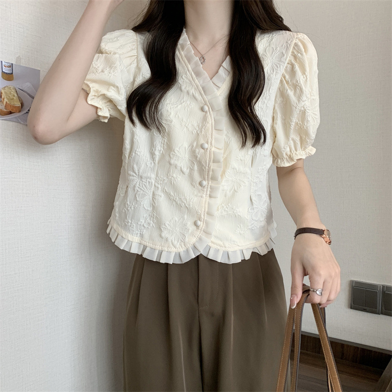 Women's Shirt Short Sleeve Summer Chic Sweet Small Shirt Puff Sleeve Sense Age-reducing Beautiful Western Style Short Top