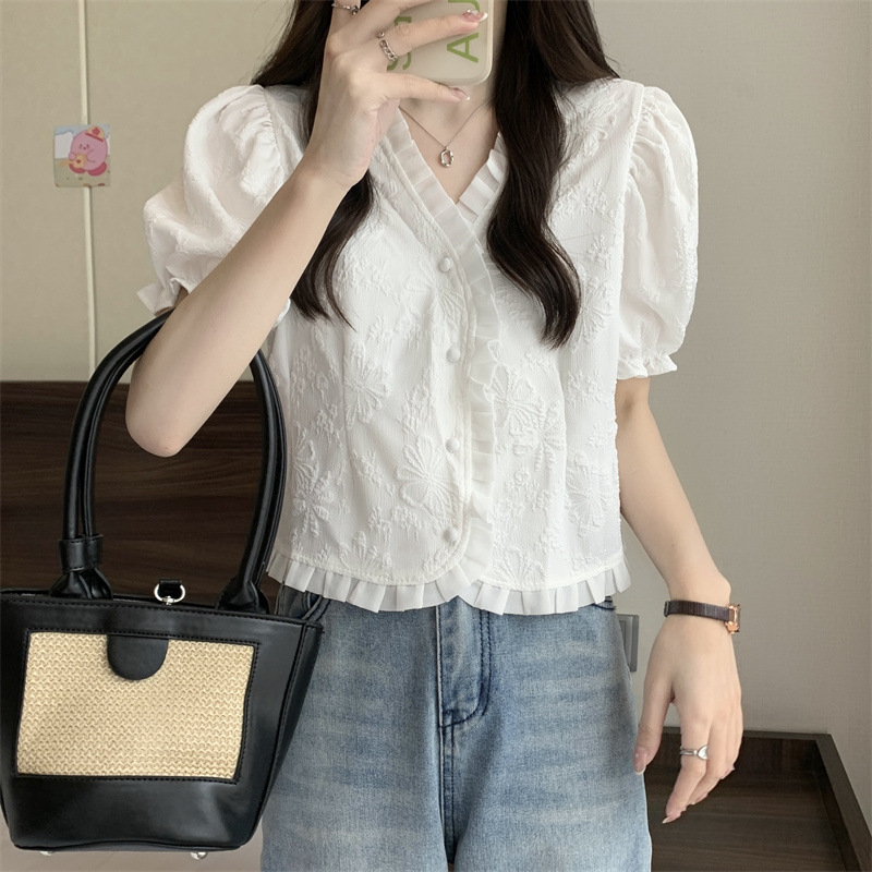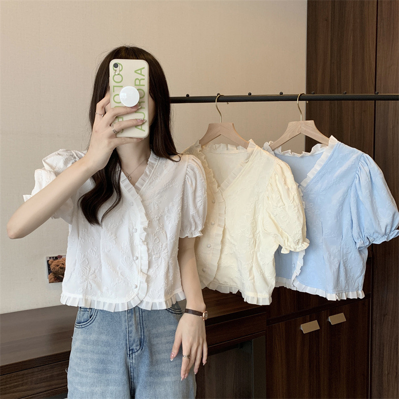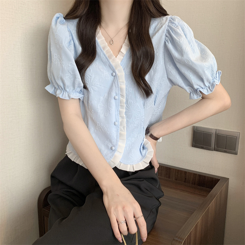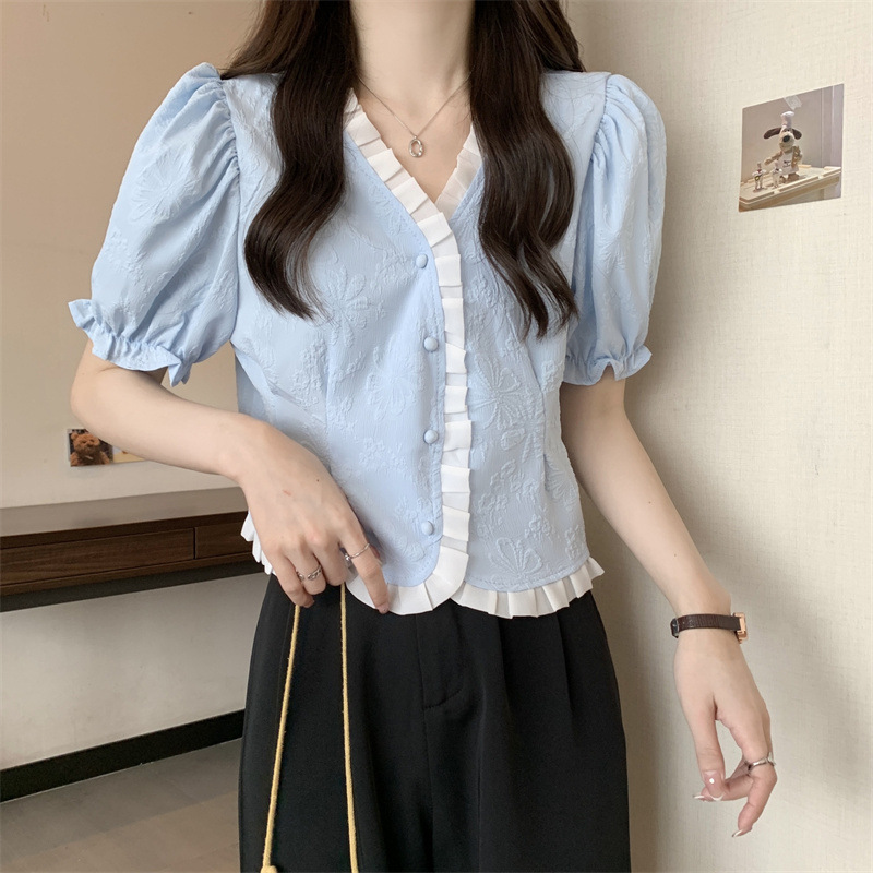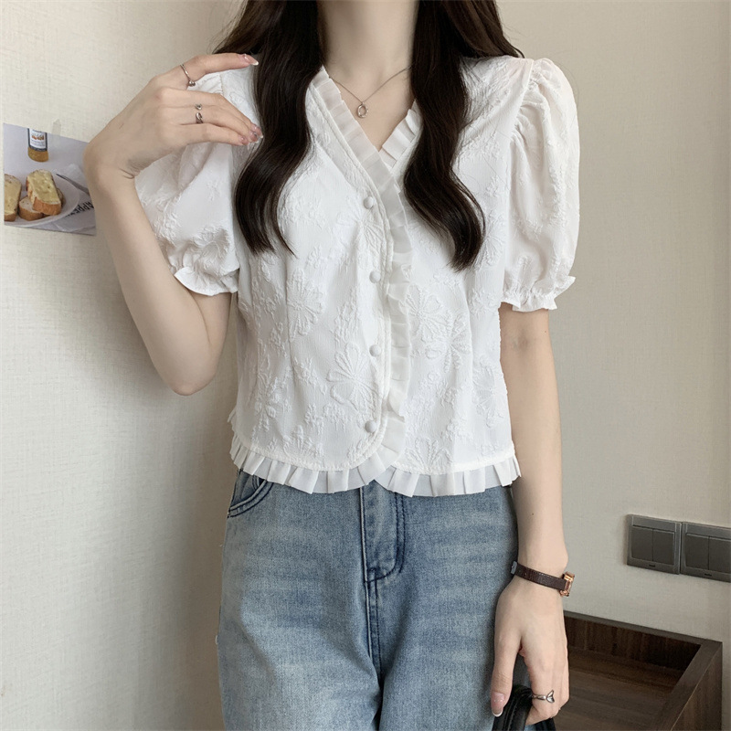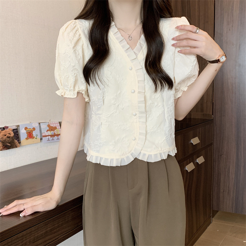 Women's Shirt Short Sleeve Summer Chic Sweet Small Shirt Puff Sleeve Sense Age-reducing Beautiful Western Style Short Top