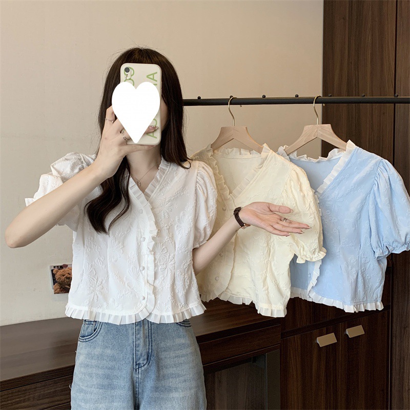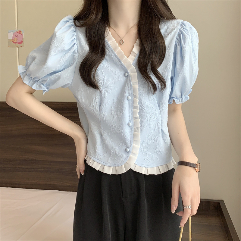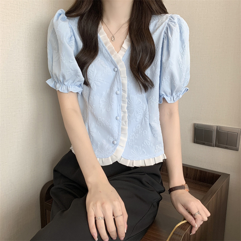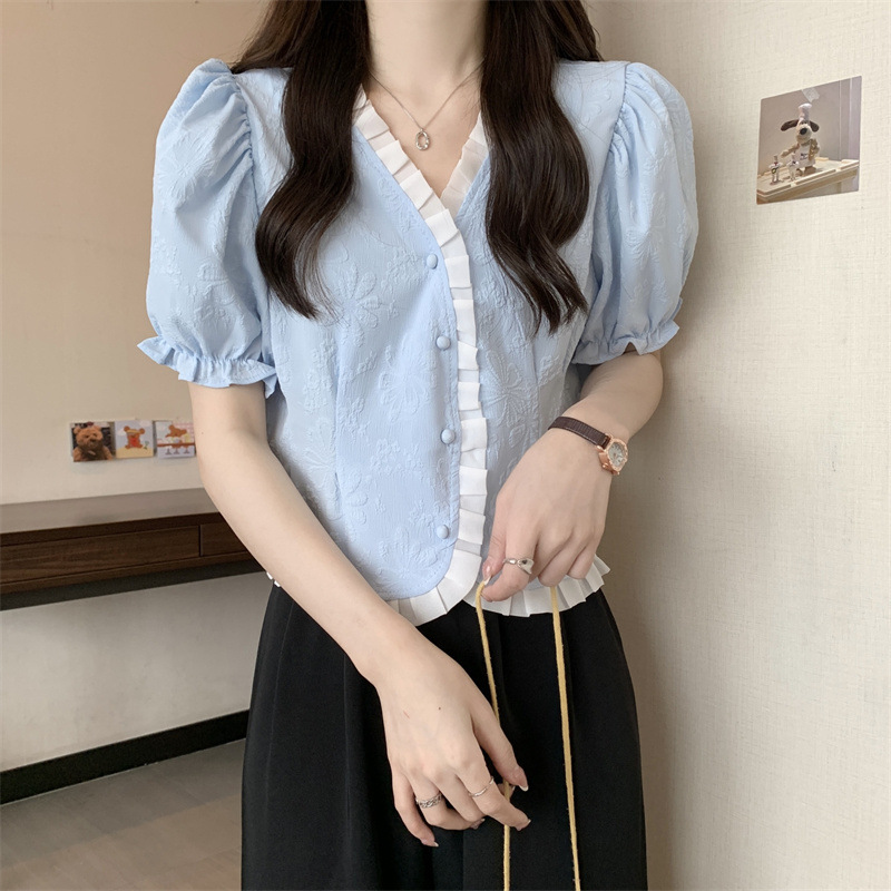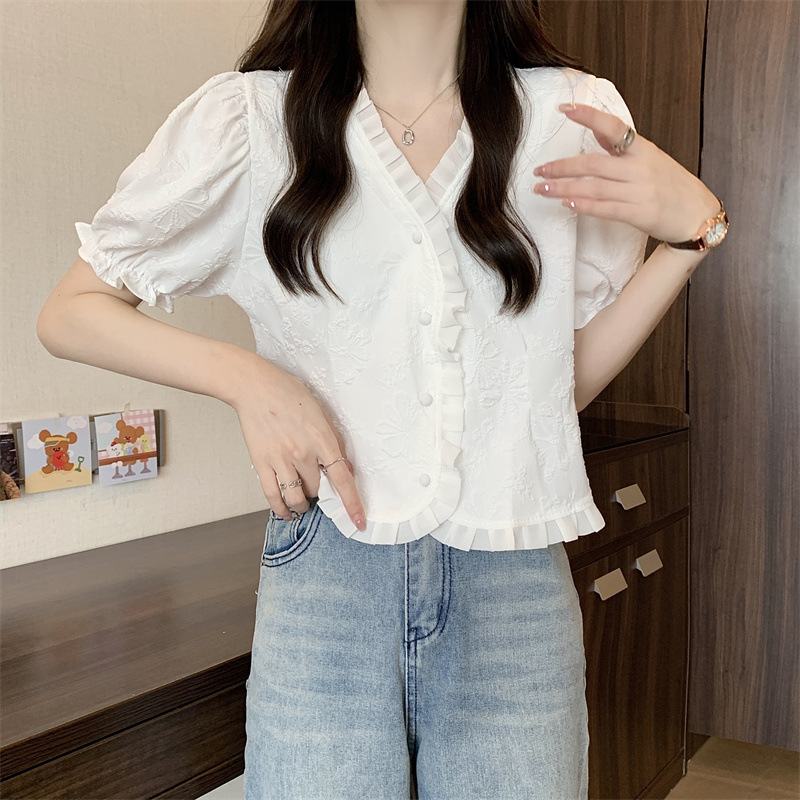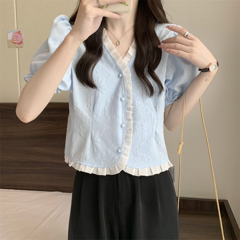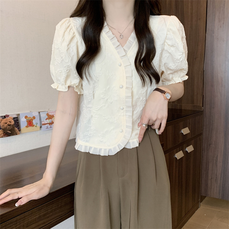 Women's Shirt Short Sleeve Summer Chic Sweet Small Shirt Puff Sleeve Sense Age-reducing Beautiful Western Style Short Top