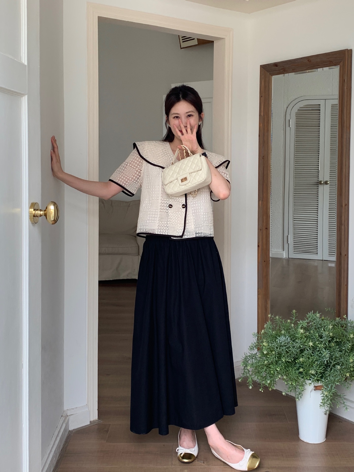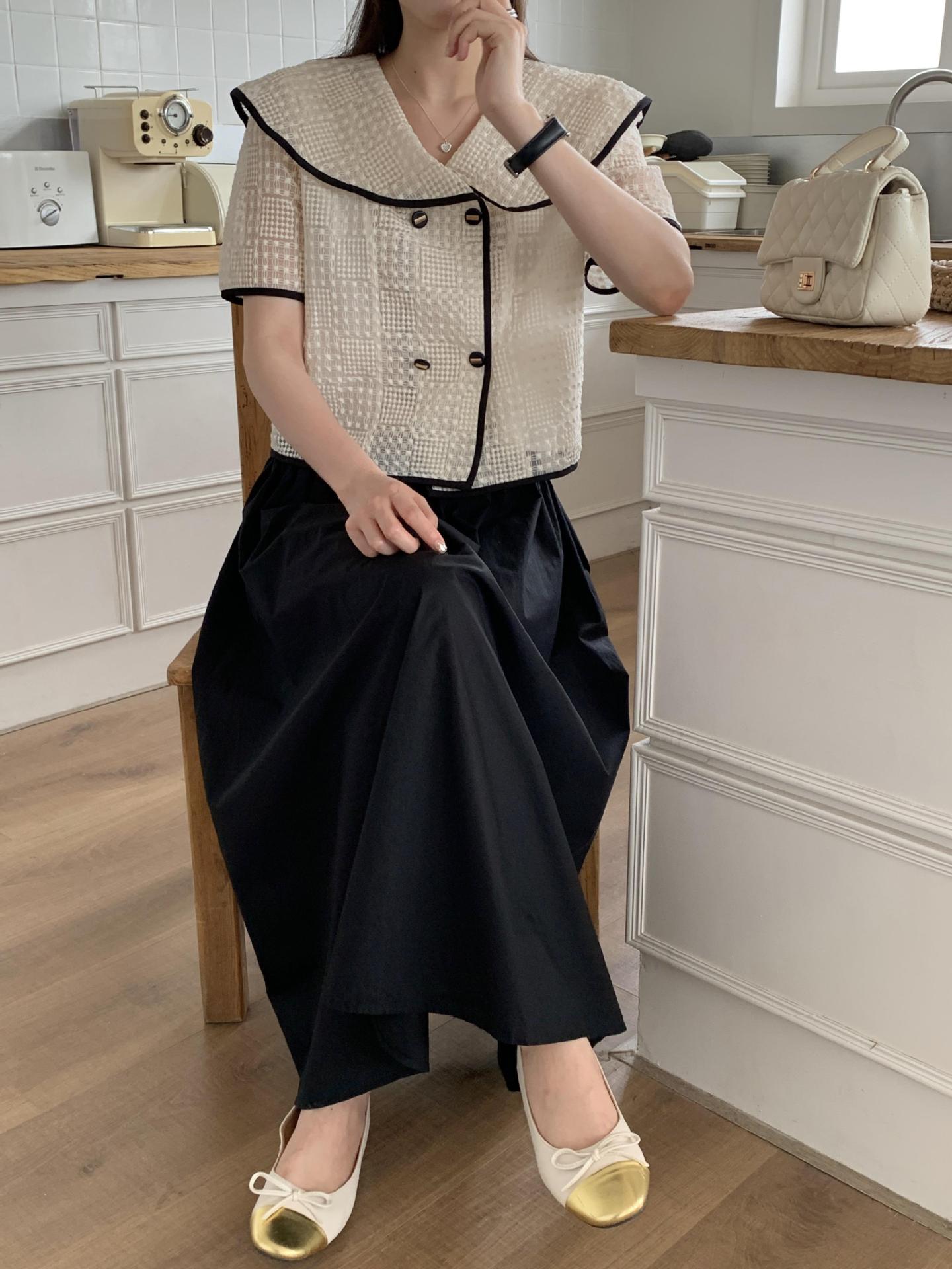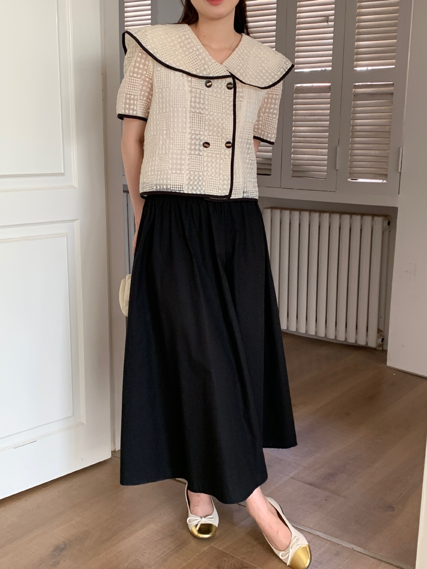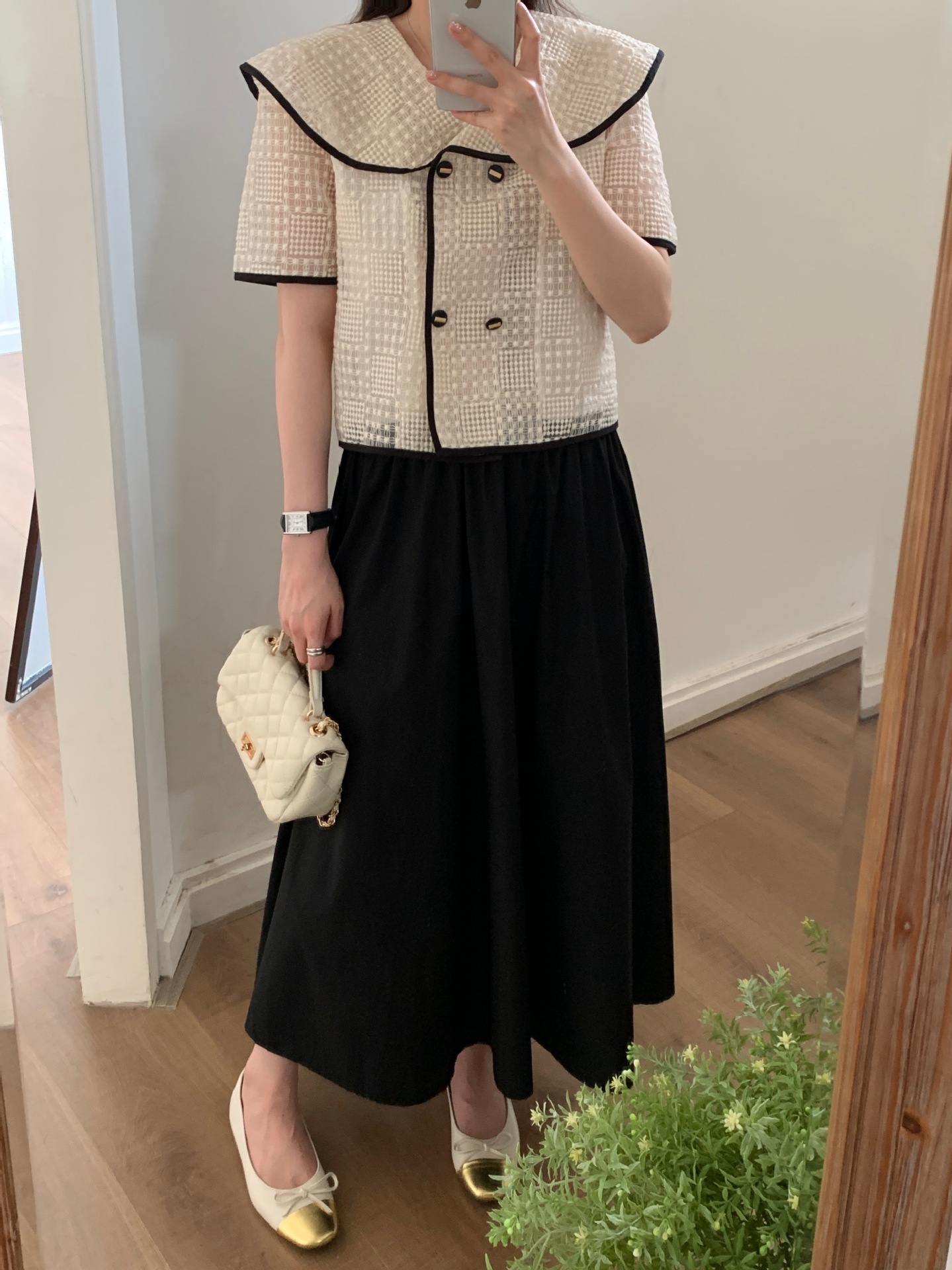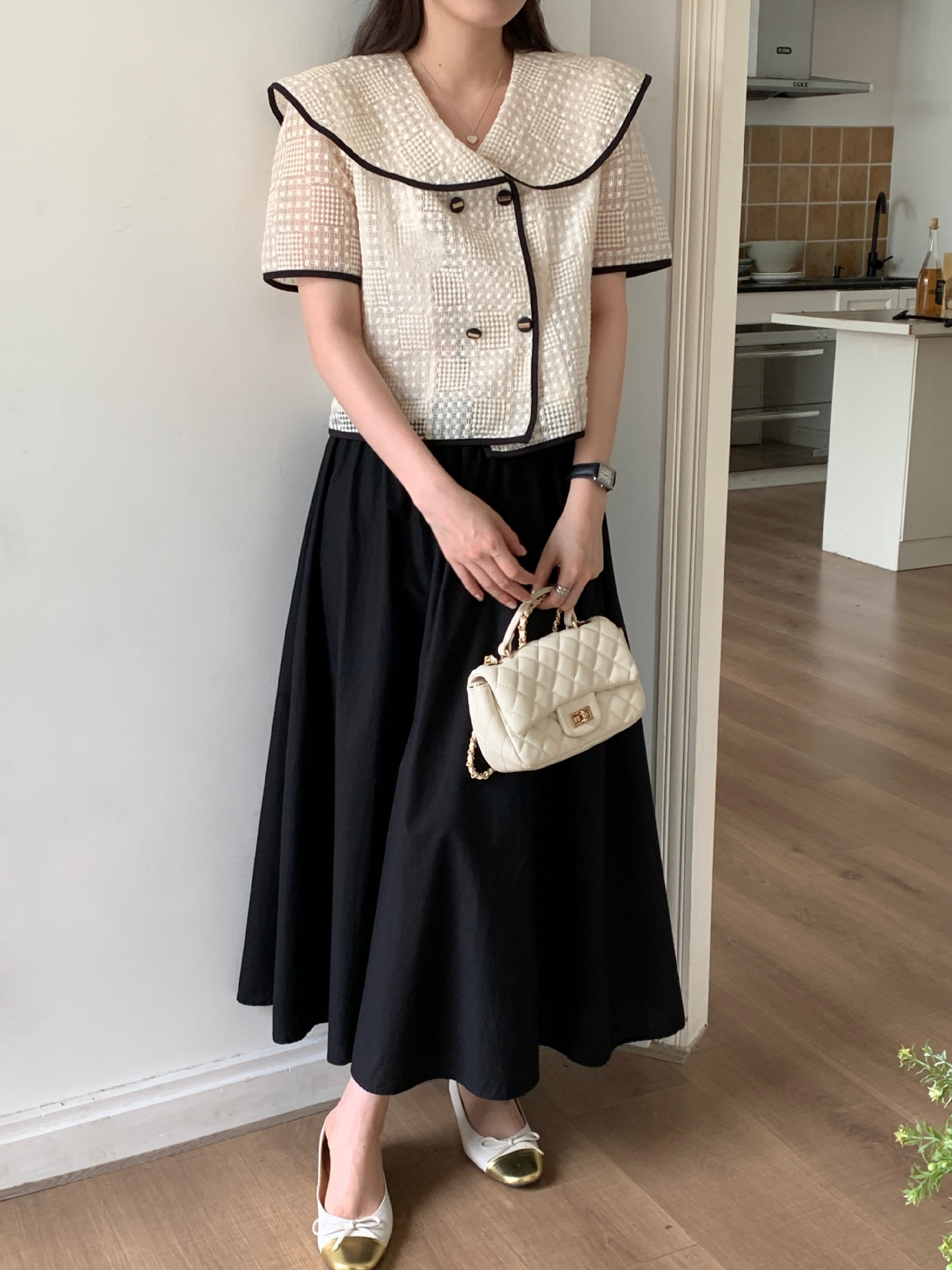 Real Shot Lace Contrast Lapel Age-reducing Double-breasted Shirt Women's Summer New Loose Short Top 63337