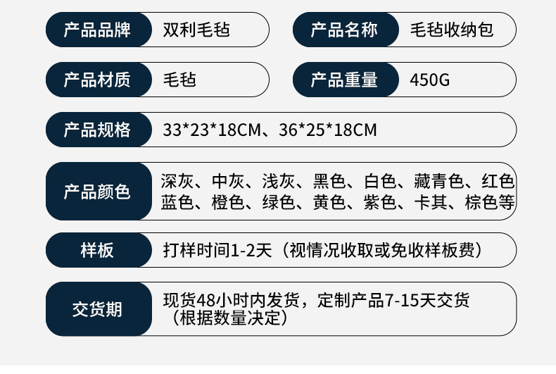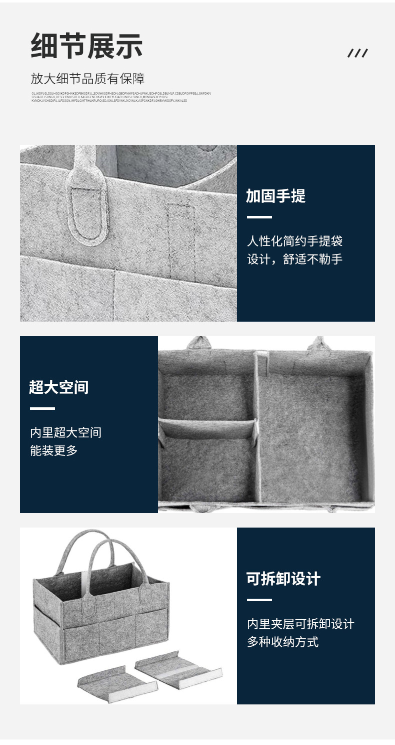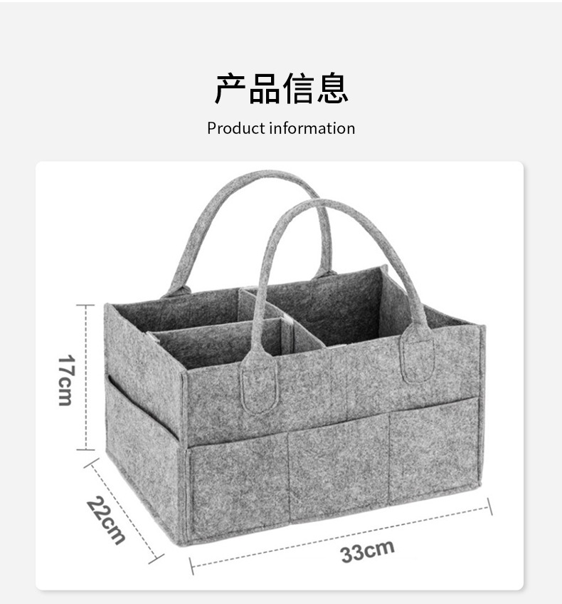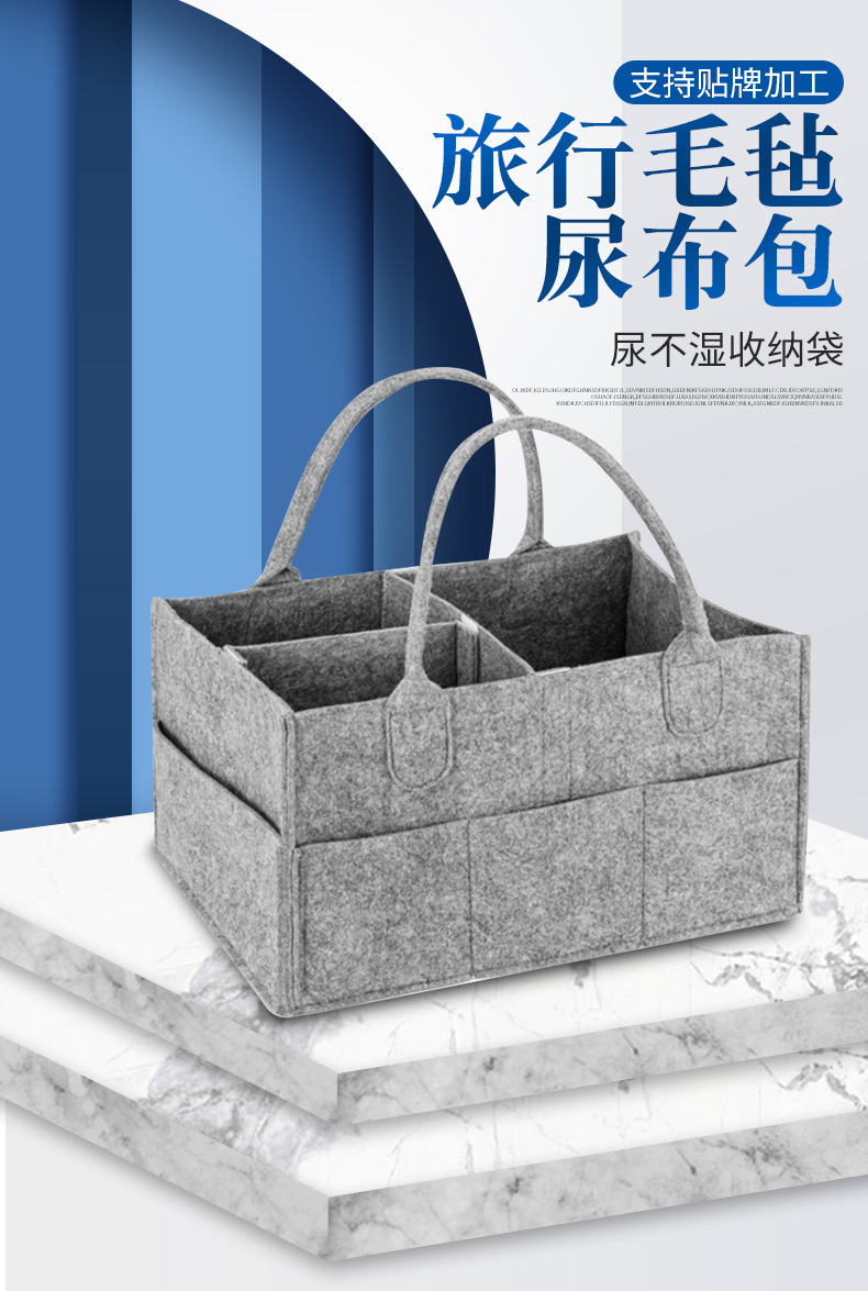 品名:双层带拉链侧兜毛毡尿布收纳包