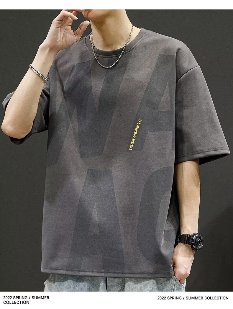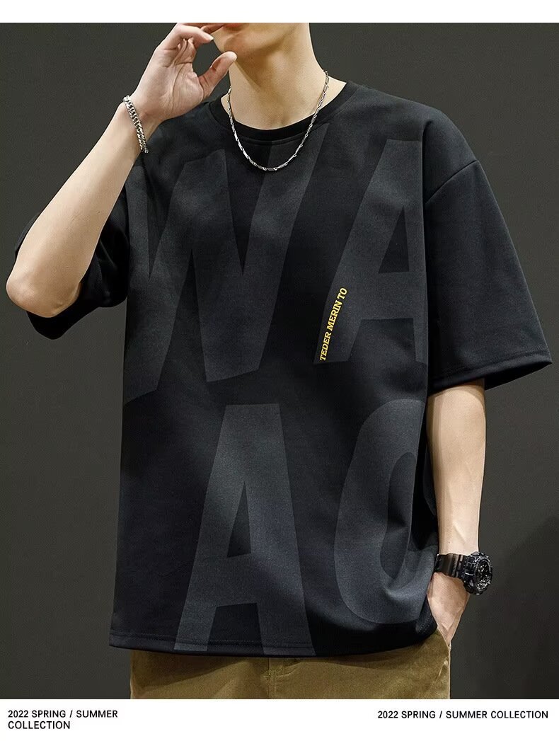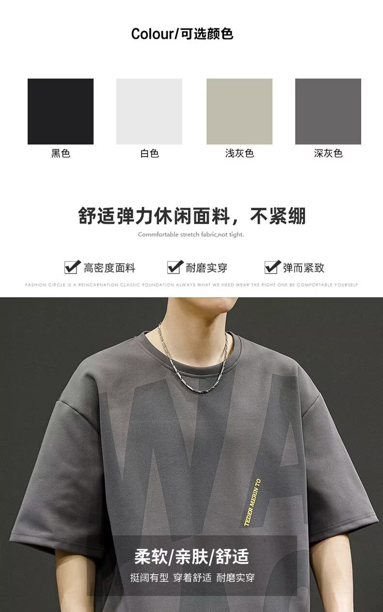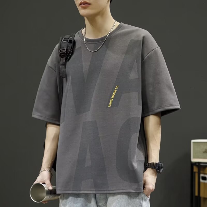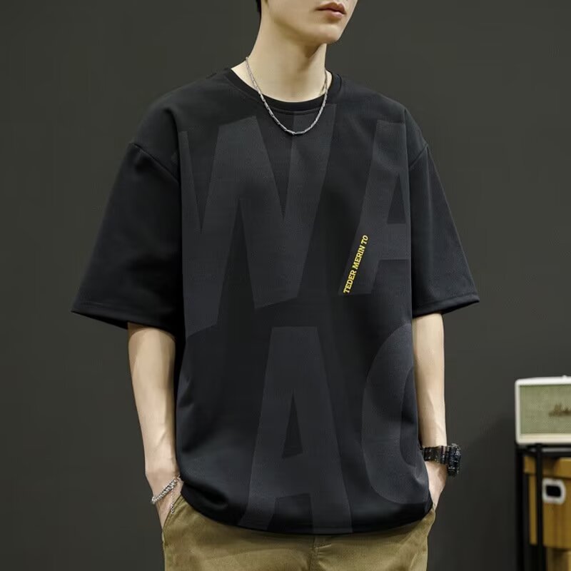 Short-sleeved T-shirt Men's Fertilized Plus Size Summer American Loose Round Neck Half-sleeved Top Men's Trendy Ice Silk T-shirt