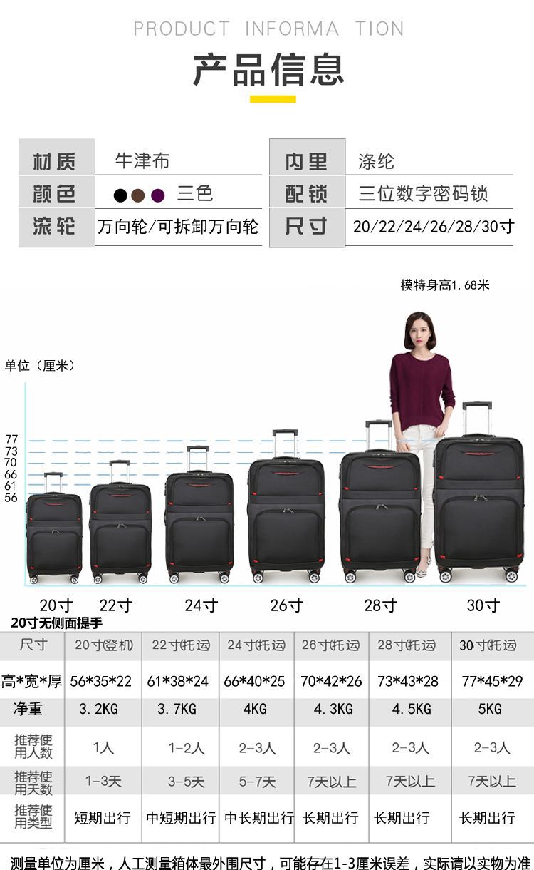 Large Capacity luggage Oxford cloth trolley case men and women student fashion luggage Korean canvas password case leather case