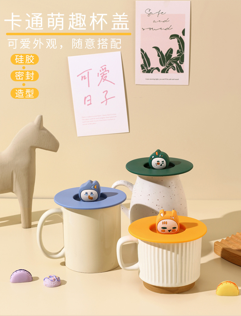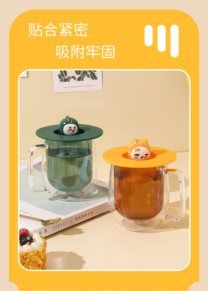 Cute food grade silicone universal dustproof Cup Cover accessories high temperature resistant glass mug cover universal cover