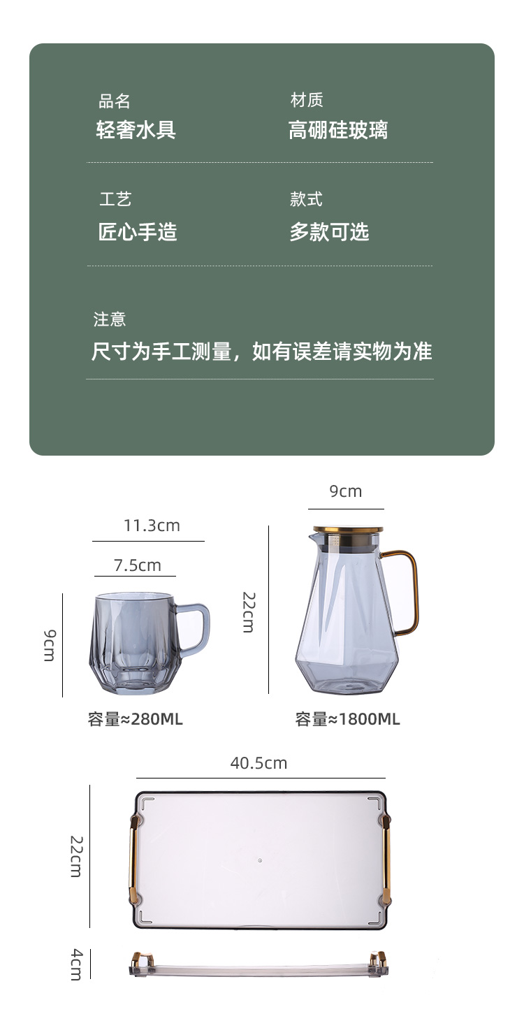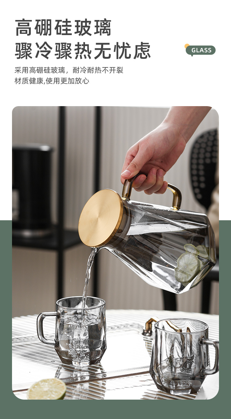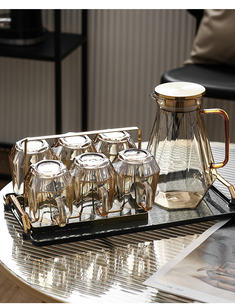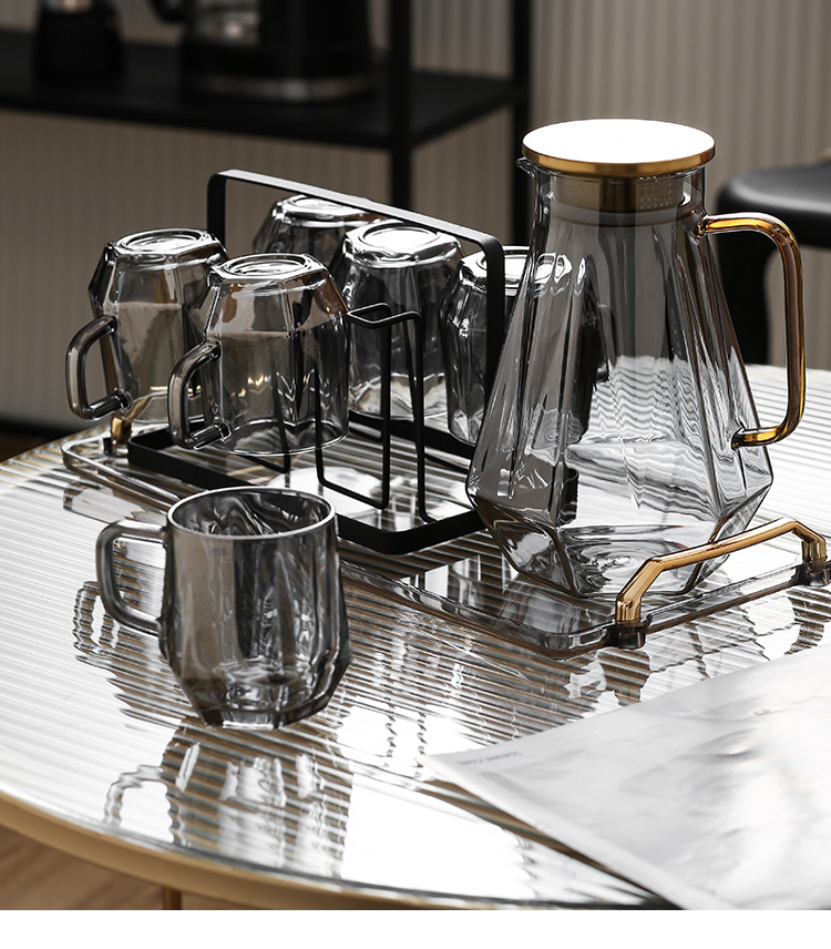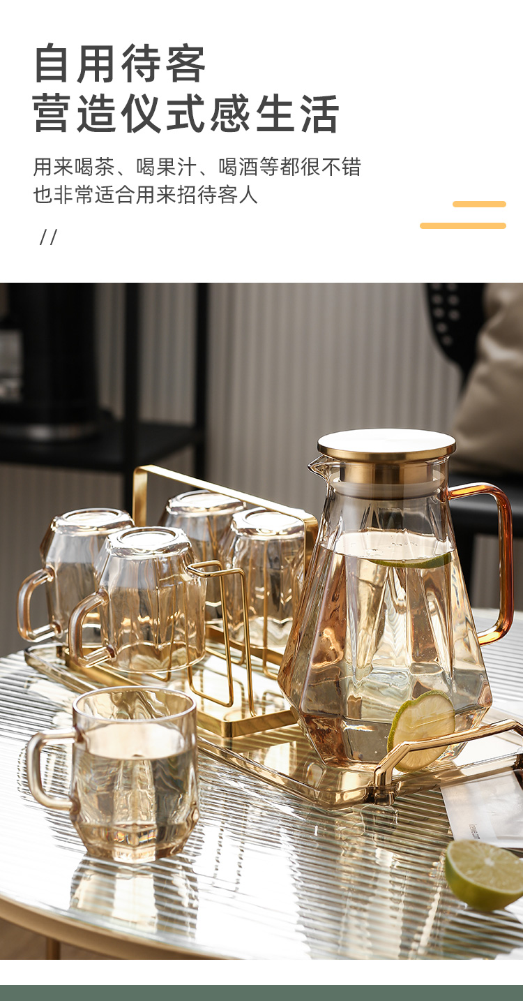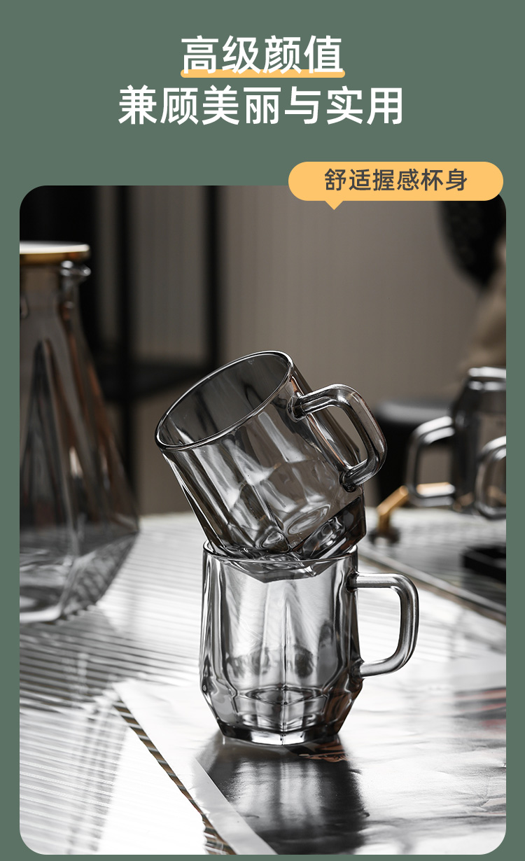 Diamond water set suit household living room with handle glass drinking cup family tea cup tea set for guests with Tangxiang