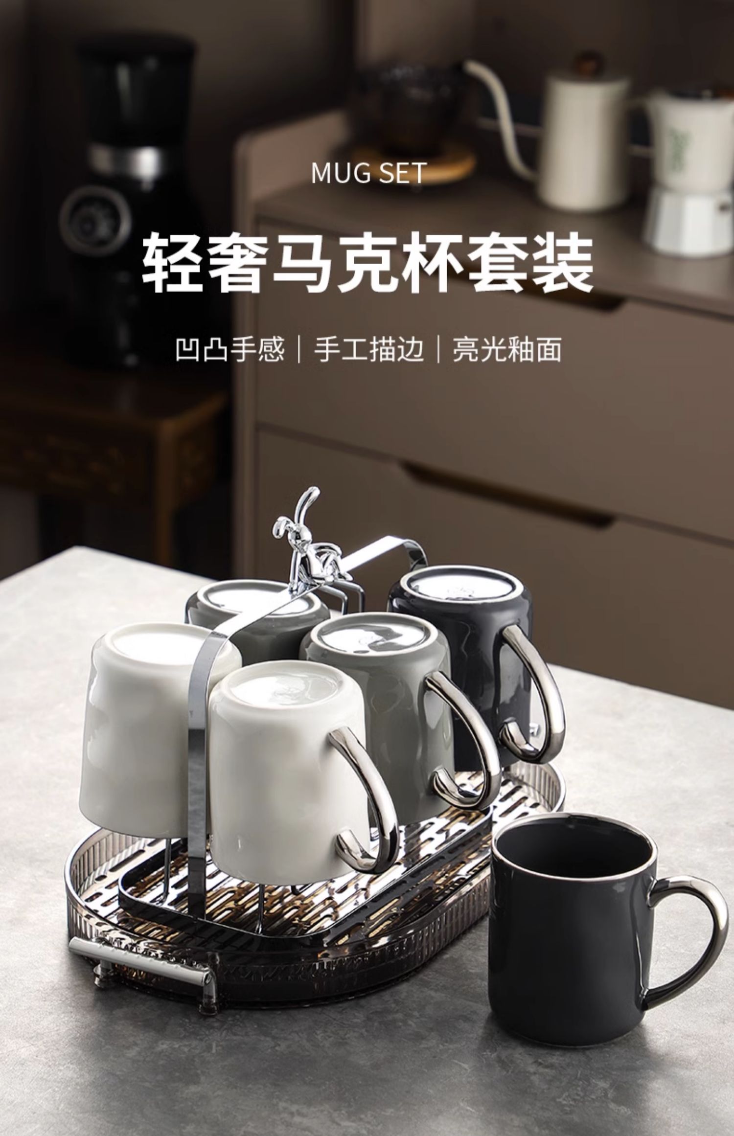 LW96 light luxury mug drinking cup household living room ceramic coffee tea cup household water set suit housewarming