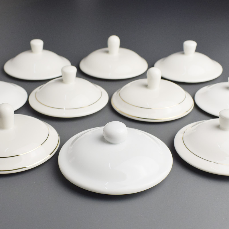 Ceramic cup lid golden edge tea cup lid round white dust conference room Classic with handle handle water cup lid