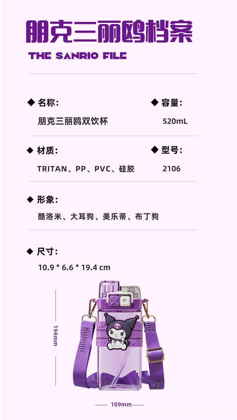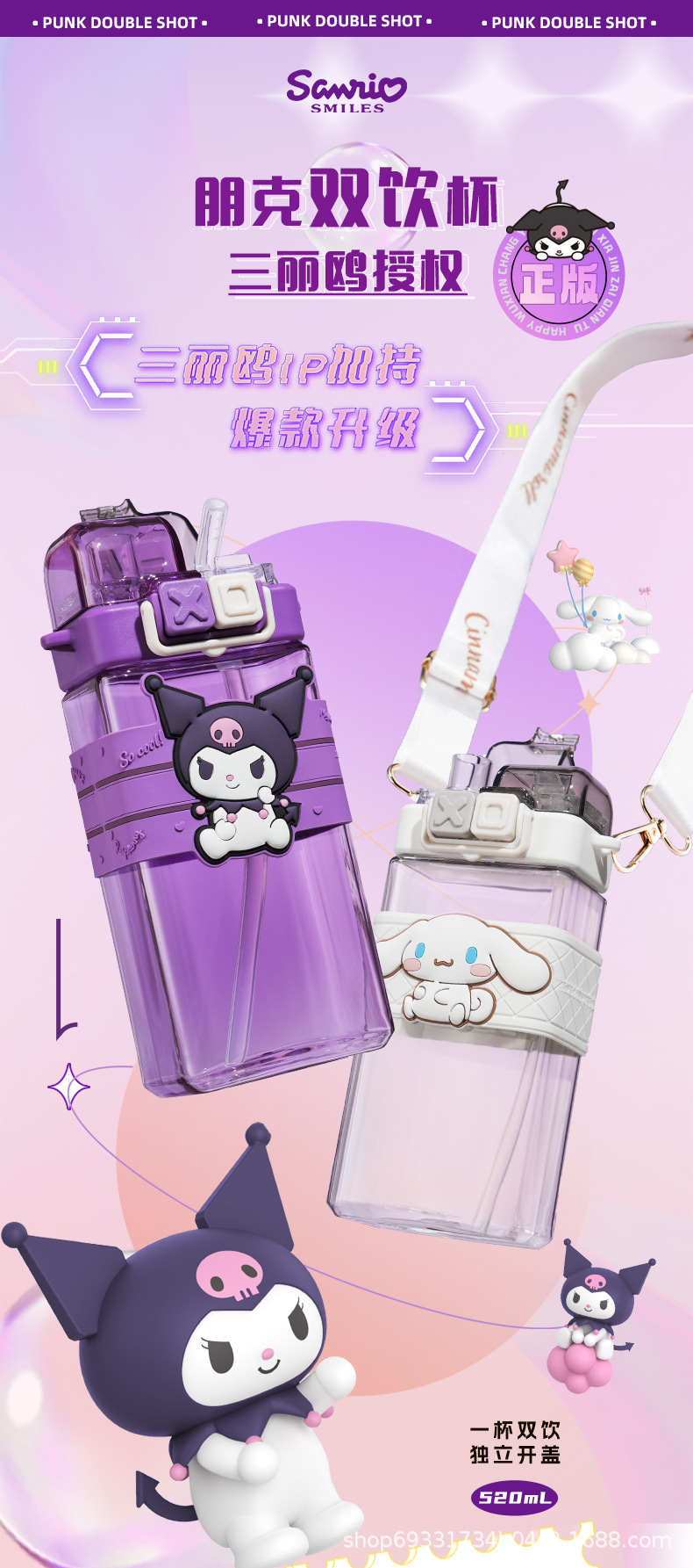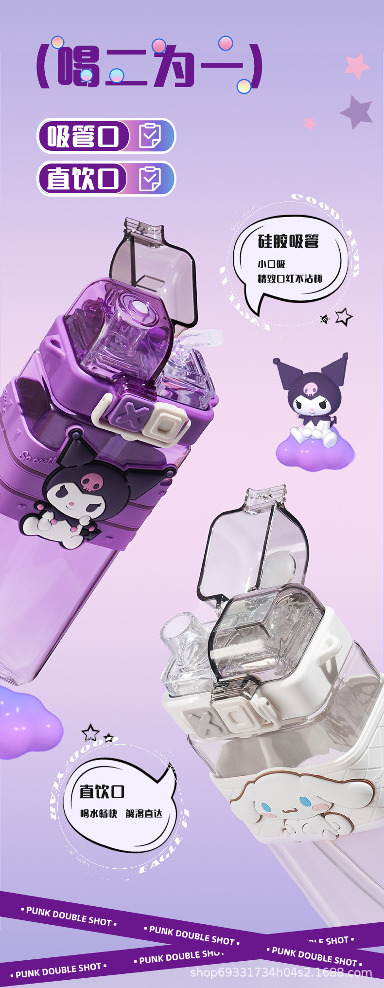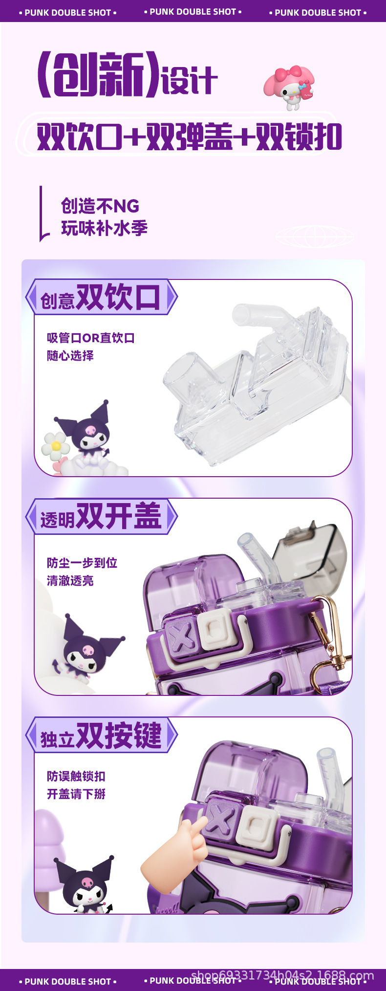 Punk Double Drink Square Straw Cup Sanrio Kulomi Children's Primary School Women's Water Cup School Special Kettle