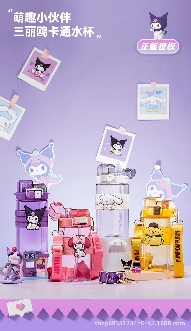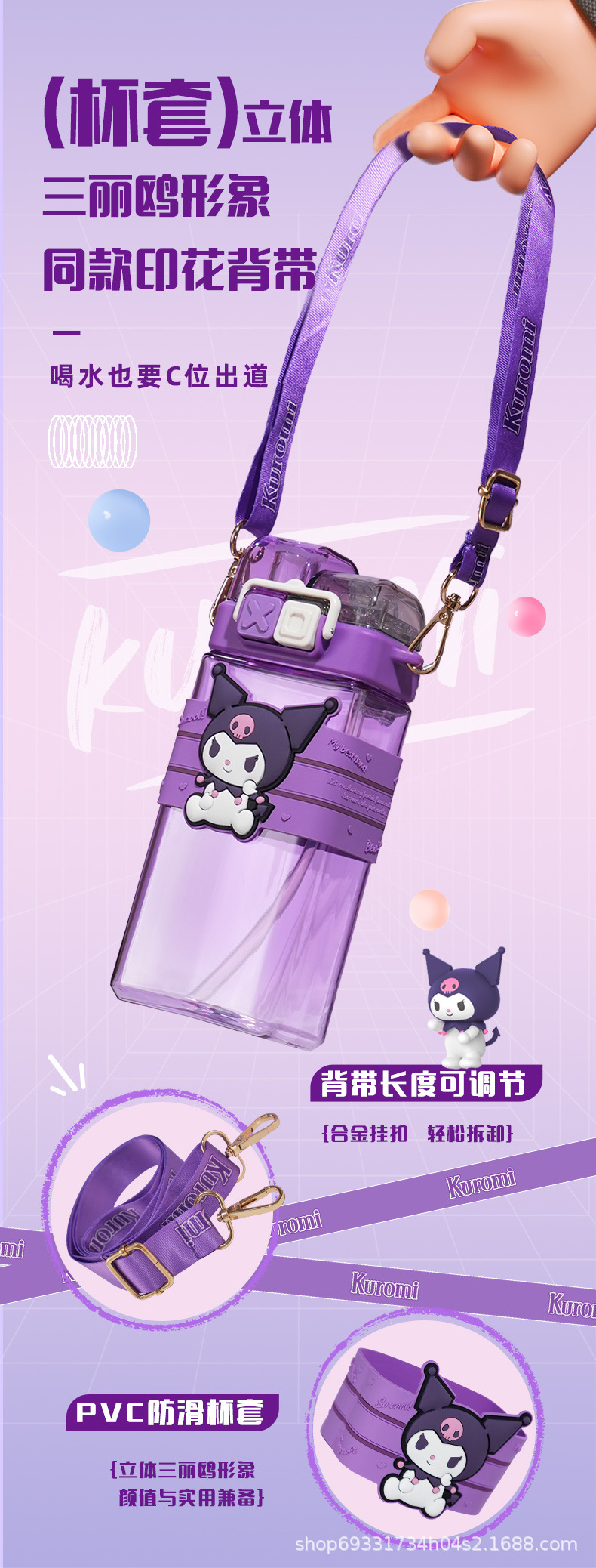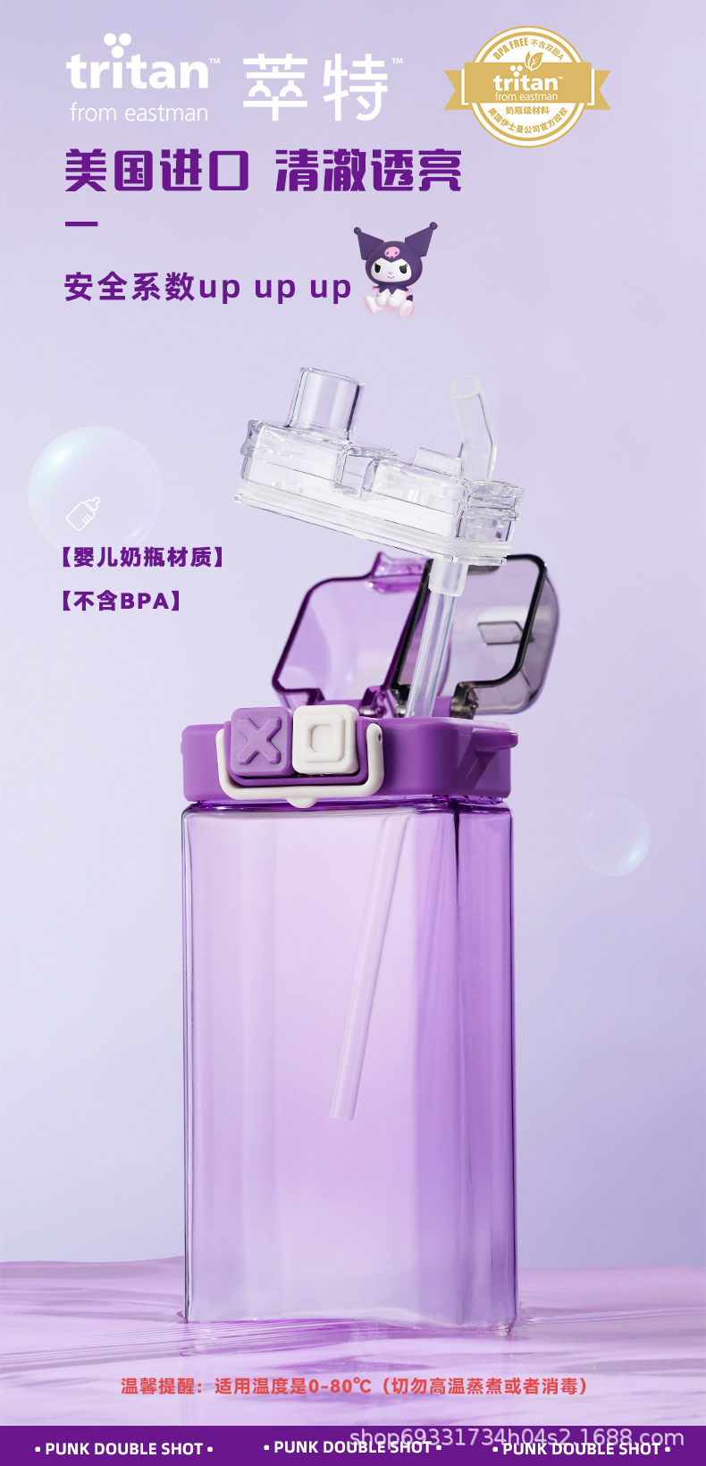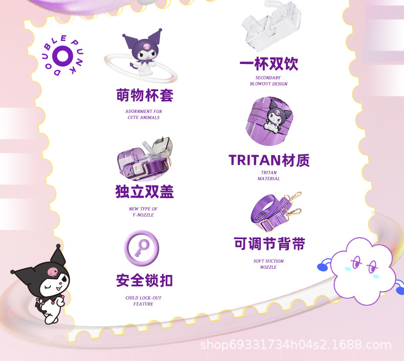 Punk Double Drink Square Straw Cup Sanrio Kulomi Children's Primary School Women's Water Cup School Special Kettle