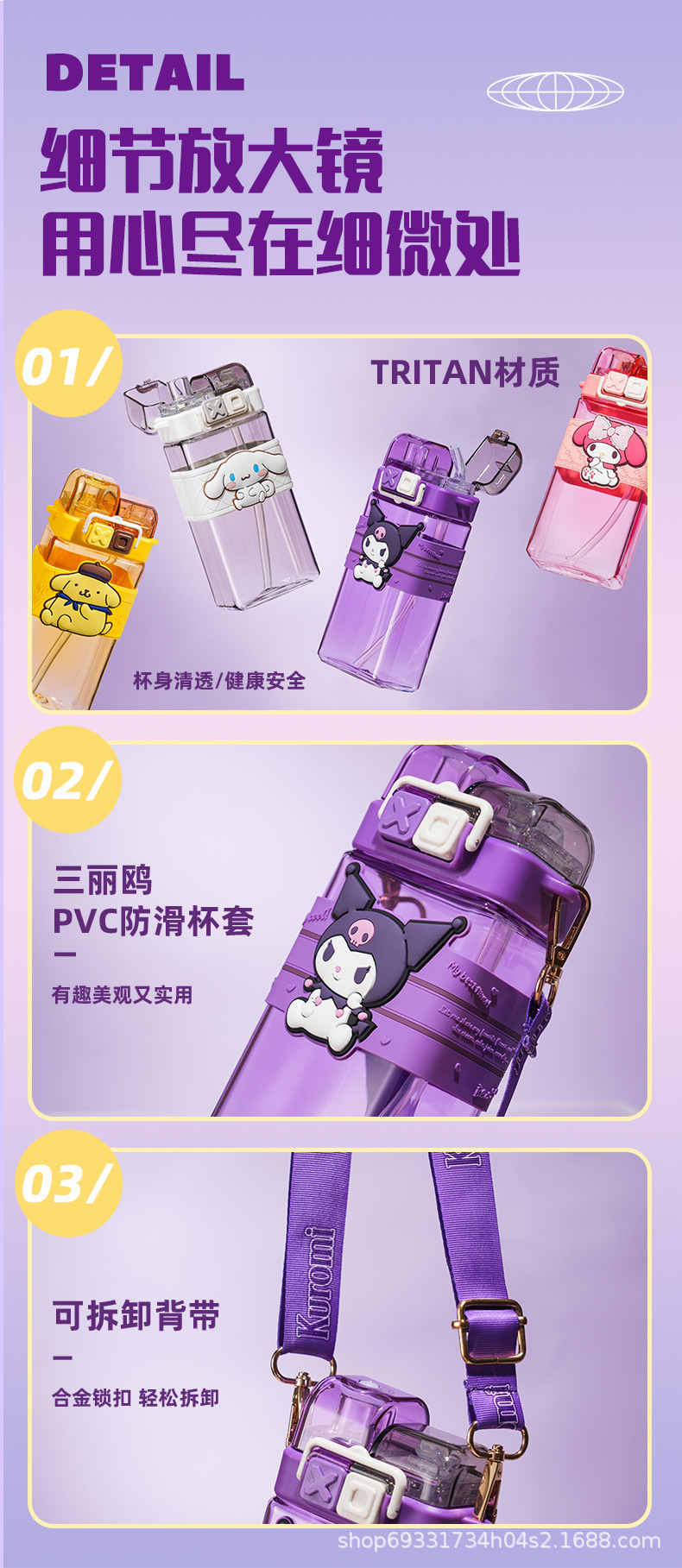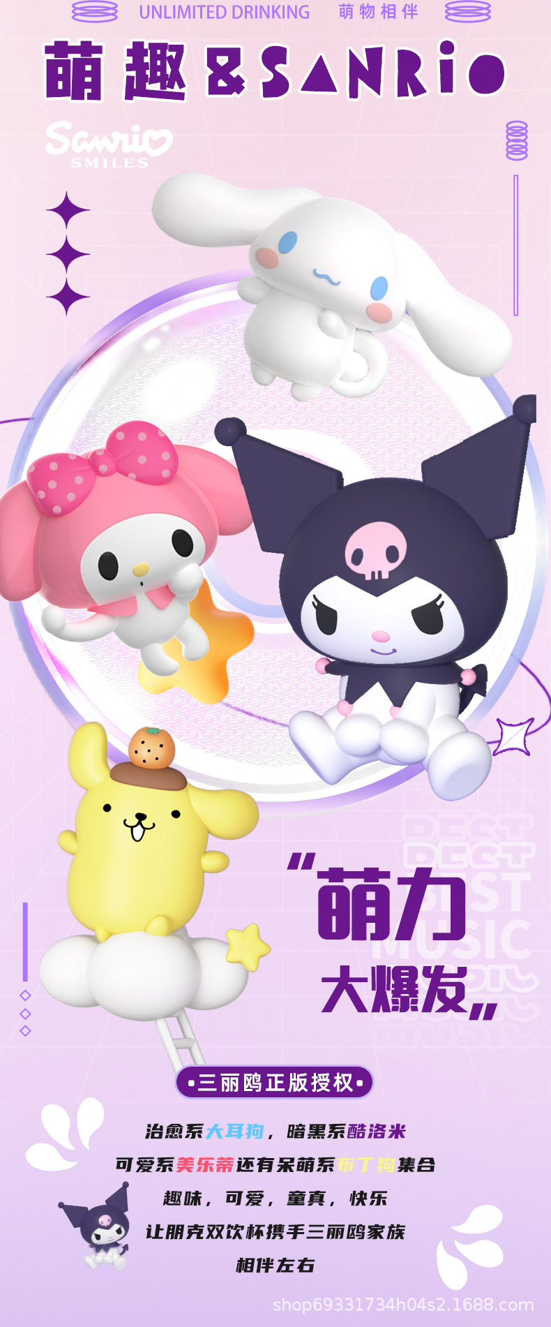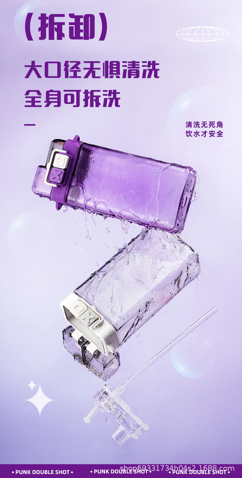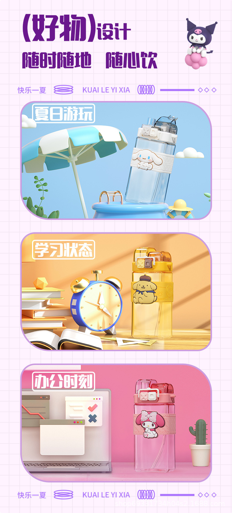 Punk Double Drink Square Straw Cup Sanrio Kulomi Children's Primary School Women's Water Cup School Special Kettle