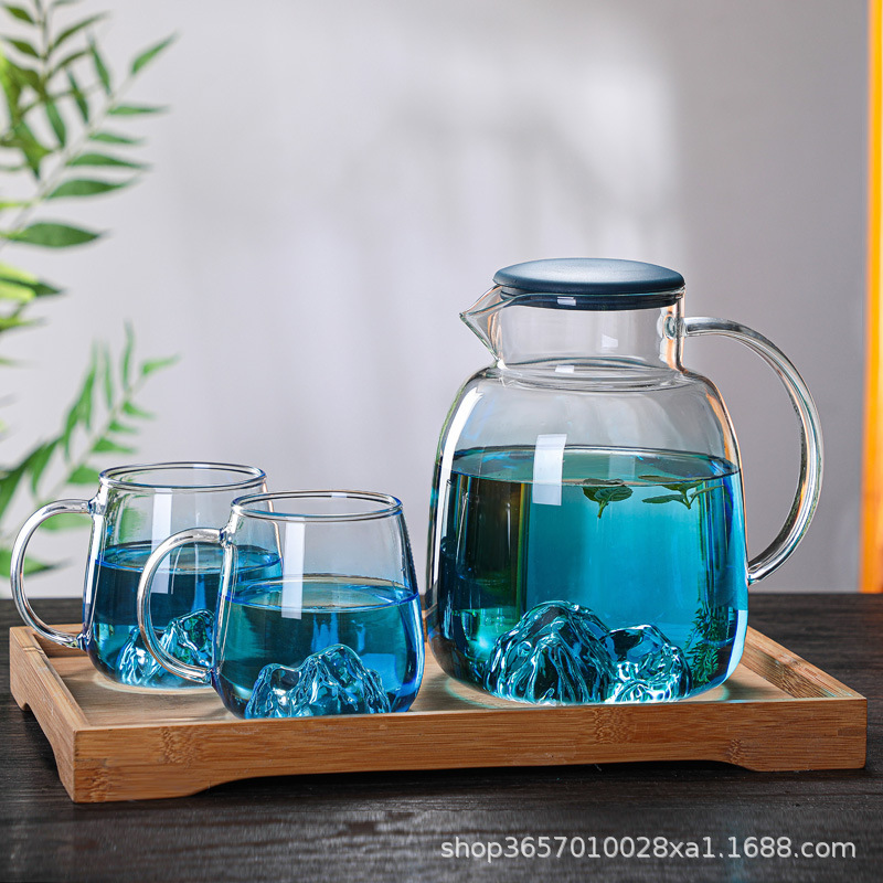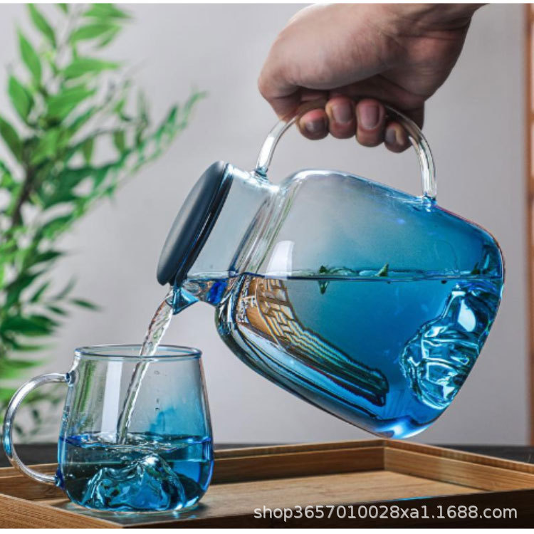 Snow Mountain cold water bottle with handle anti-scald heat-resistant glass suit tea cup coffee cup light luxury living room drinking cup