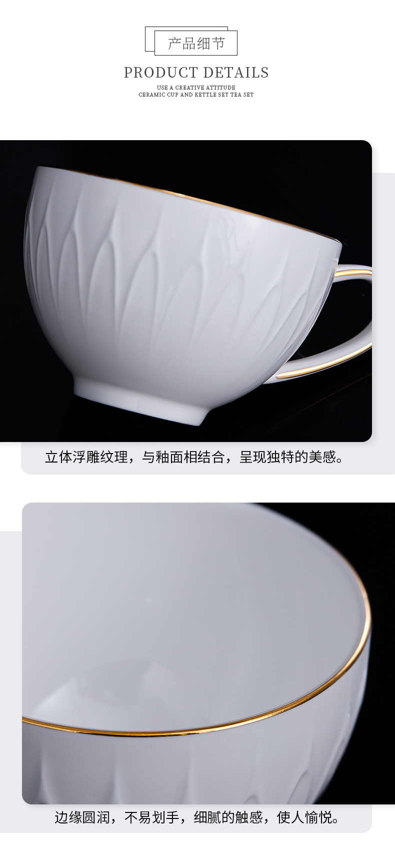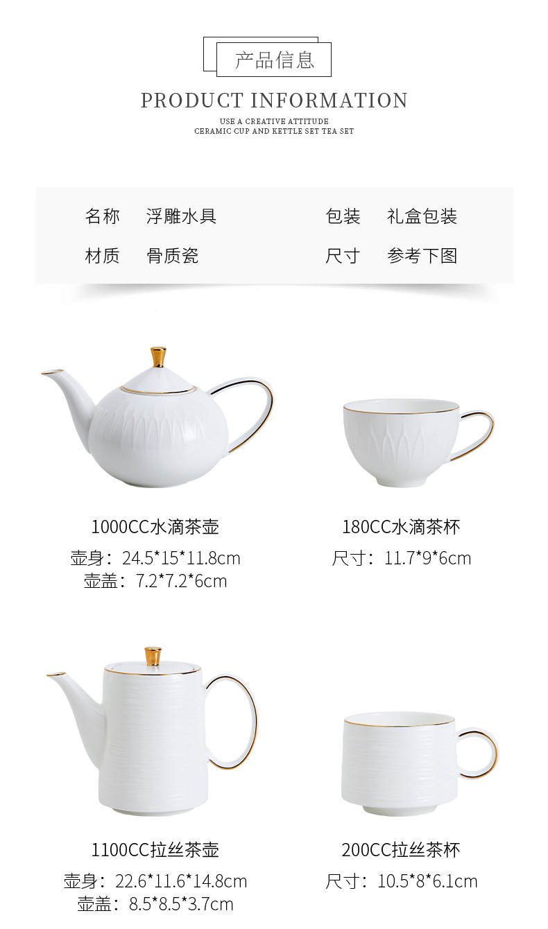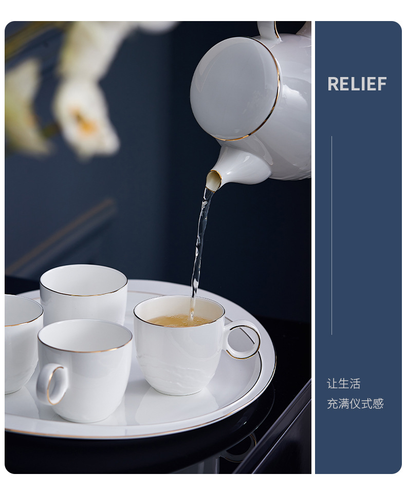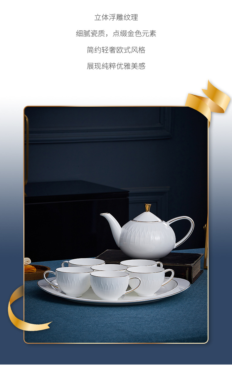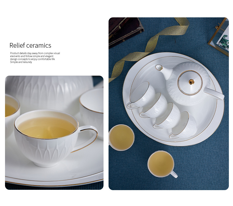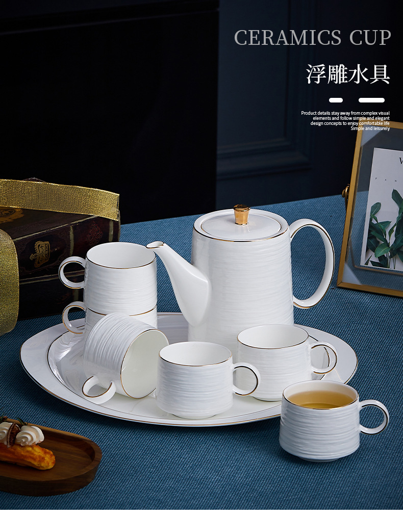 Water Set French High-end Afternoon Tea Set Gift Box High-value Embossed Bone China Water Cup Coffee Cup Household Complete Set
