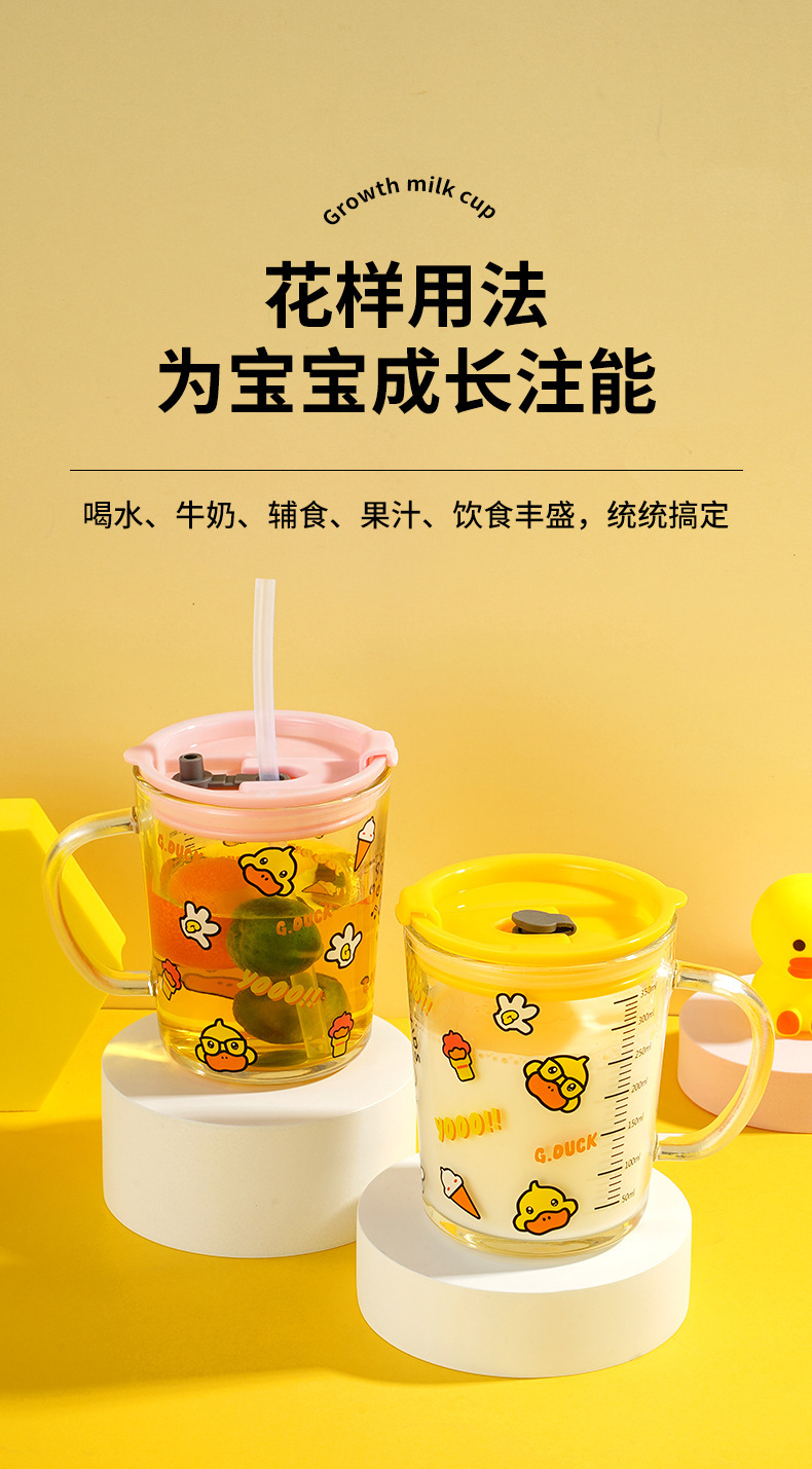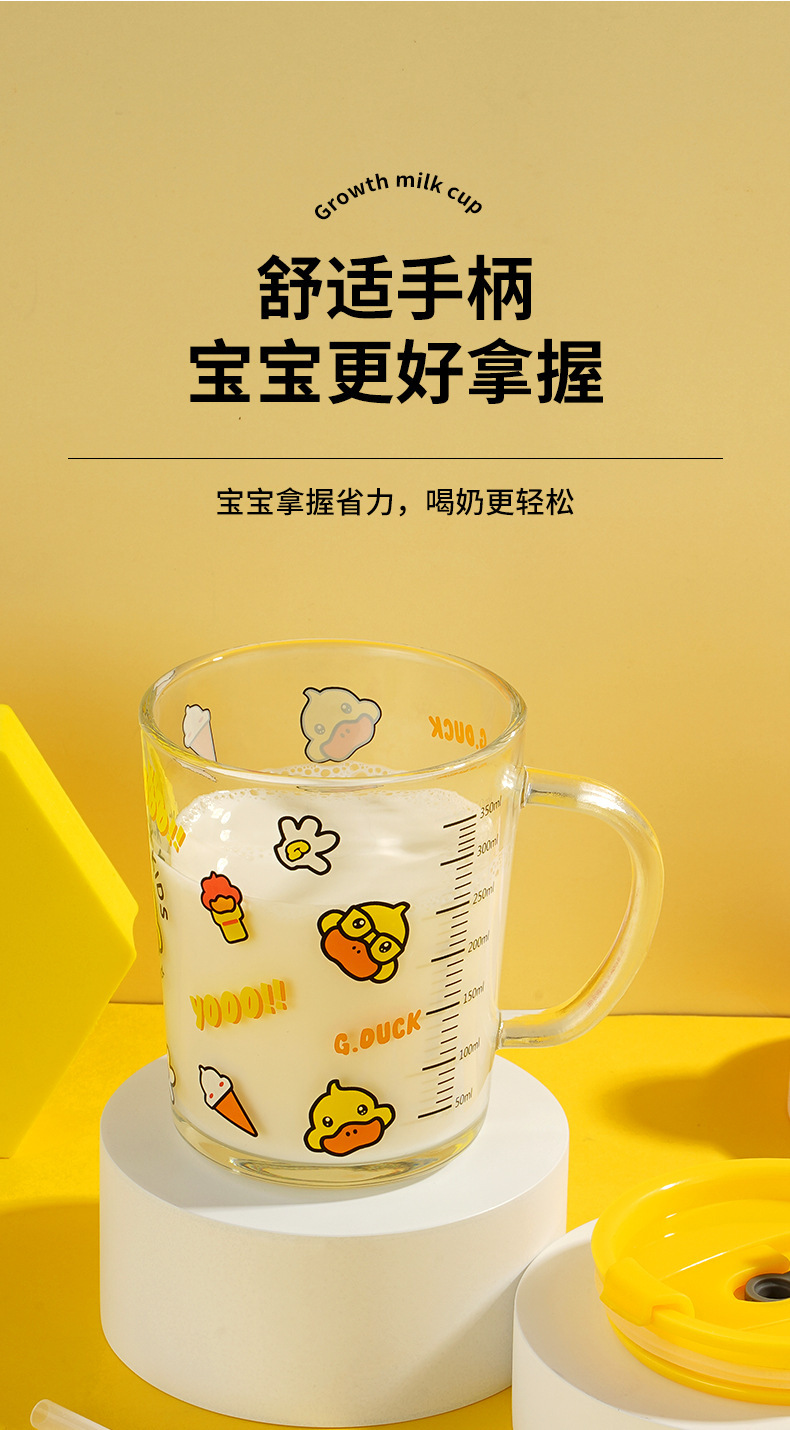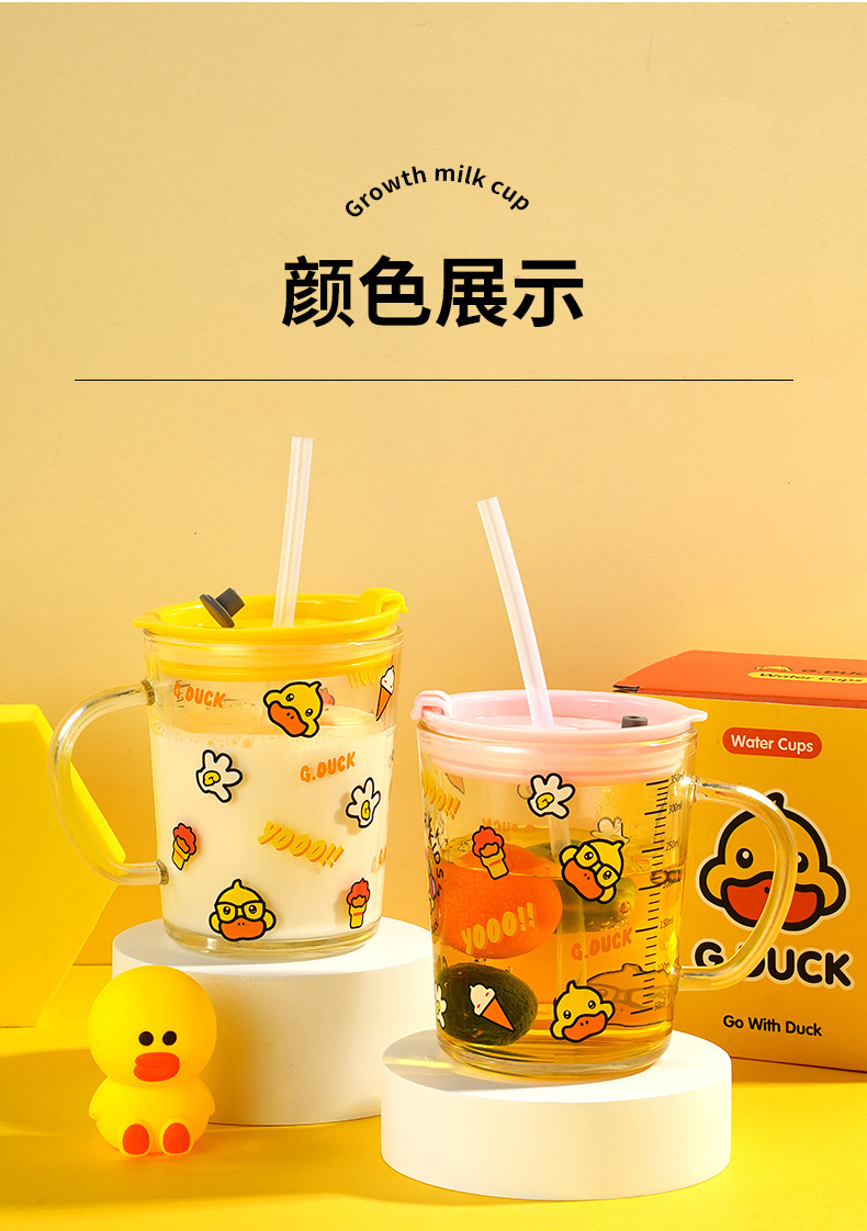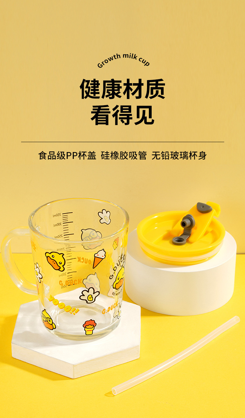 G.DUCK small yellow DUCK children's Milk Cup with scale suction tube cup thickened glass household cartoon drinking cup summer