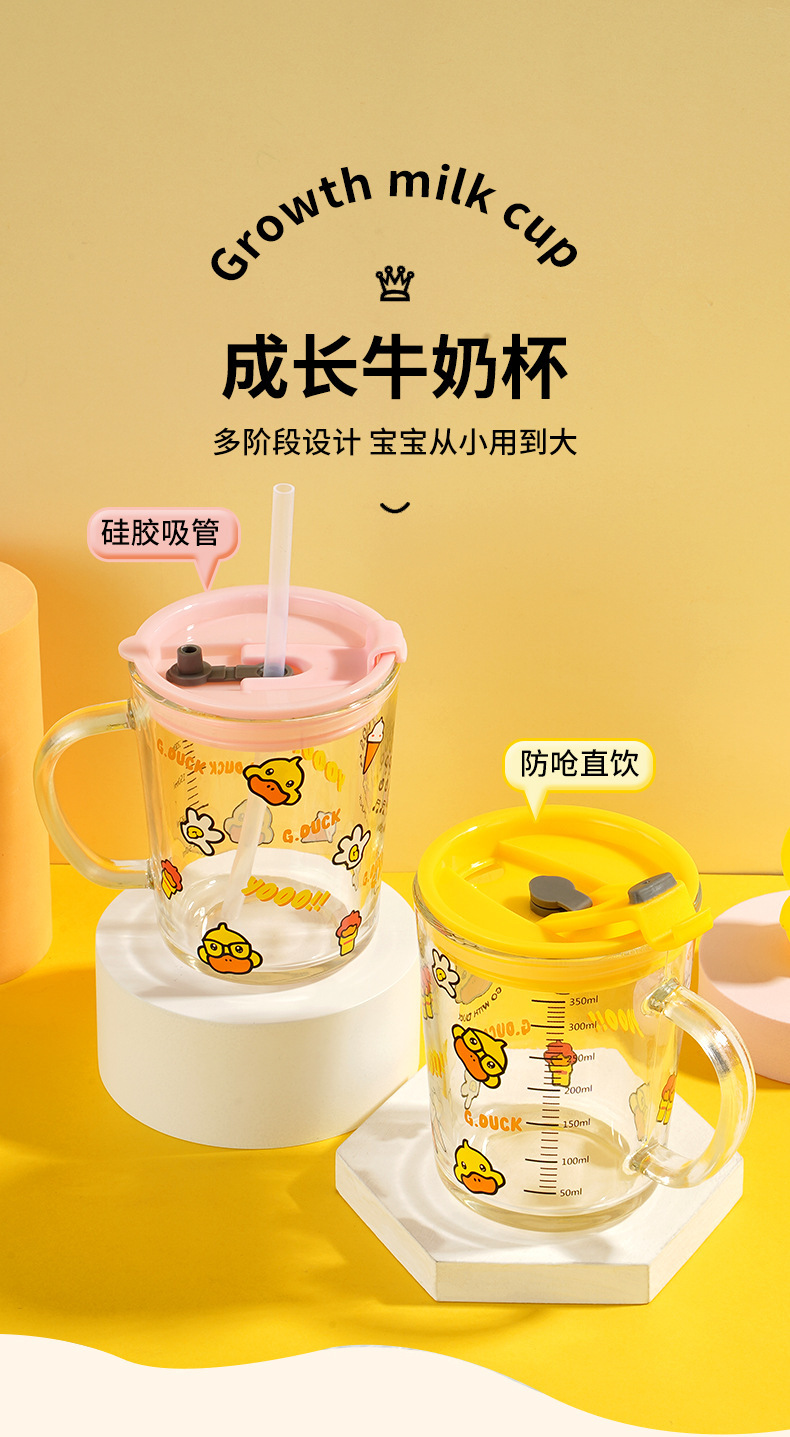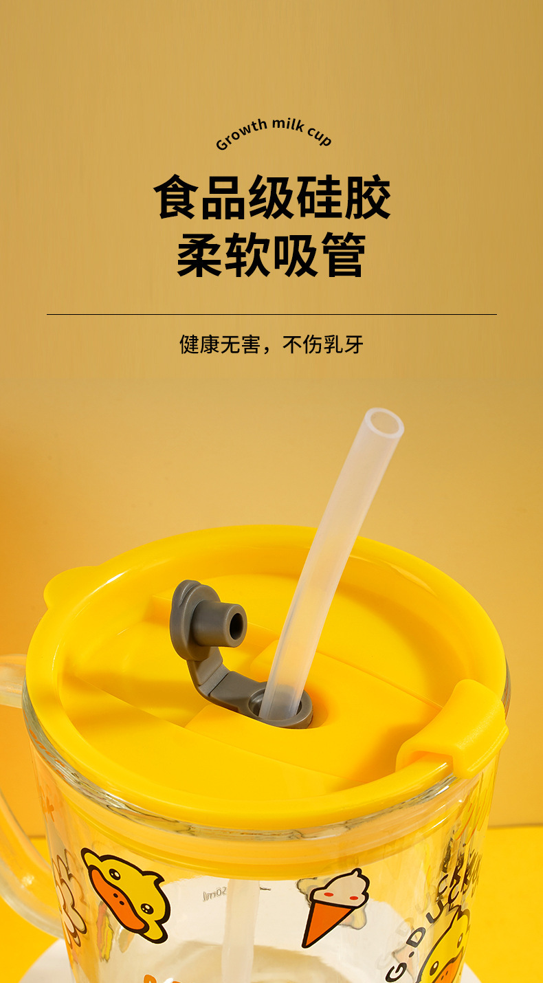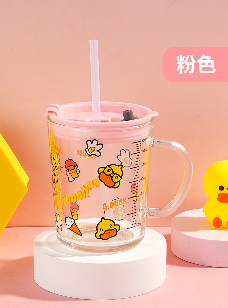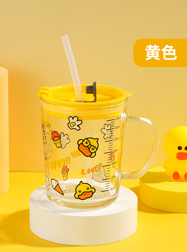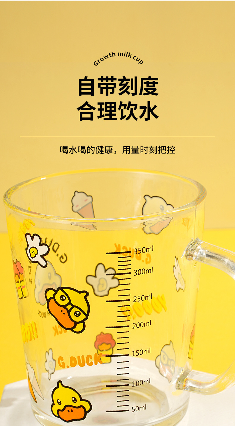 G.DUCK small yellow DUCK children's Milk Cup with scale suction tube cup thickened glass household cartoon drinking cup summer