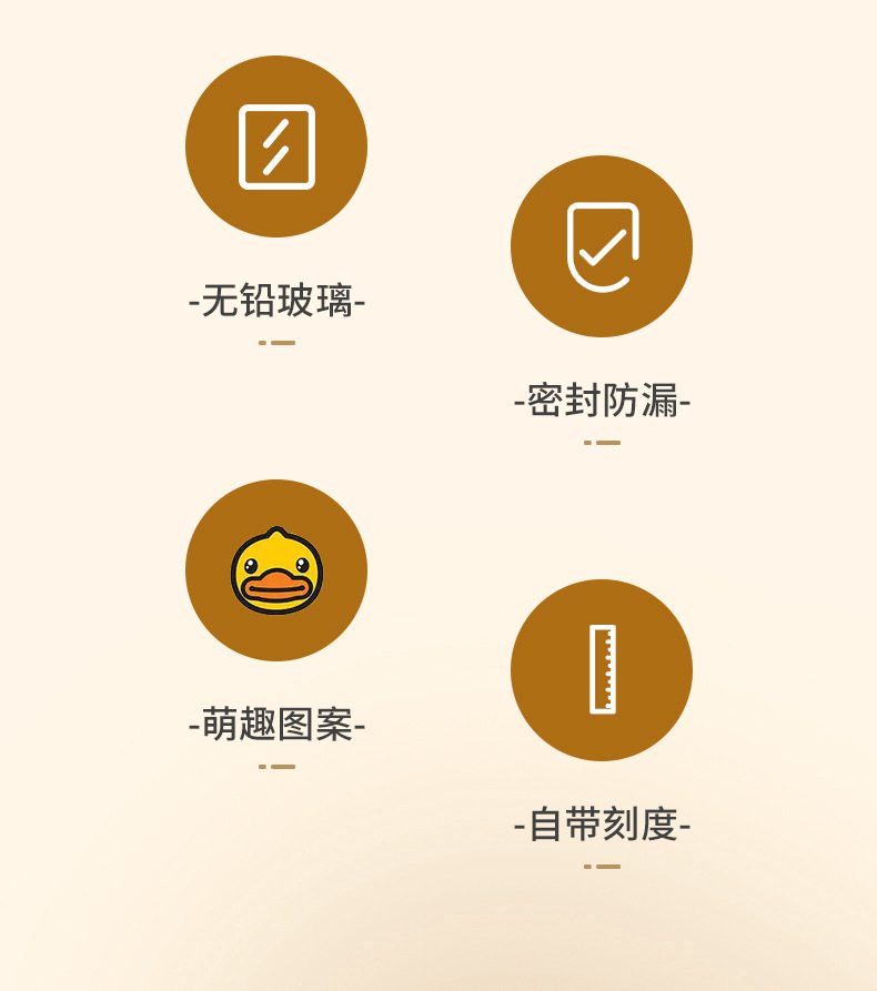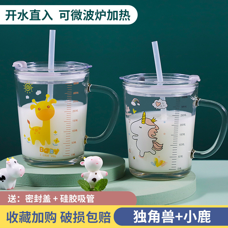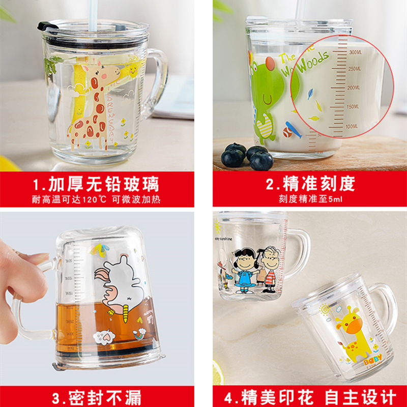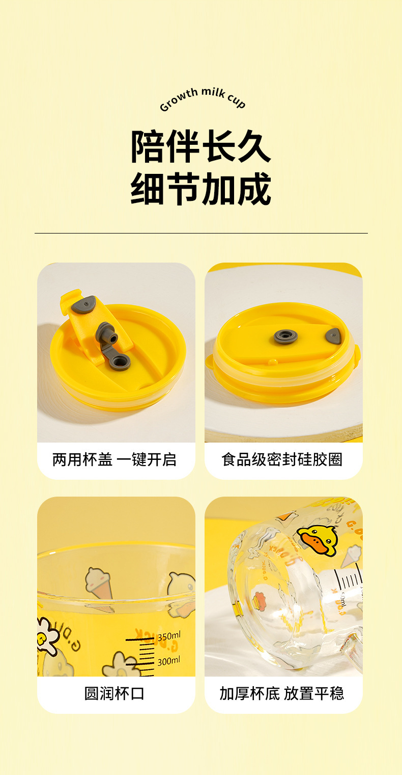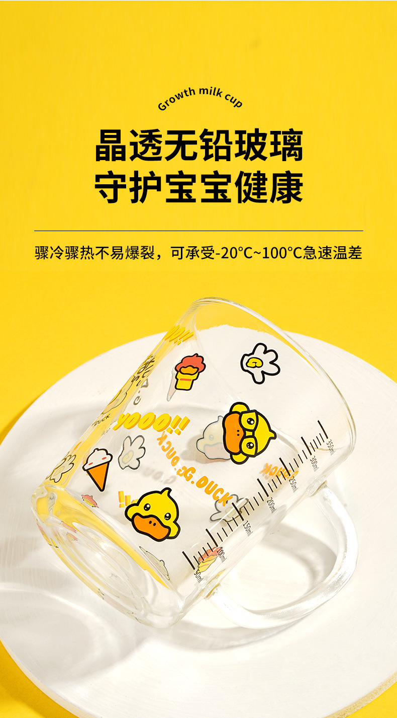 G.DUCK small yellow DUCK children's Milk Cup with scale suction tube cup thickened glass household cartoon drinking cup summer