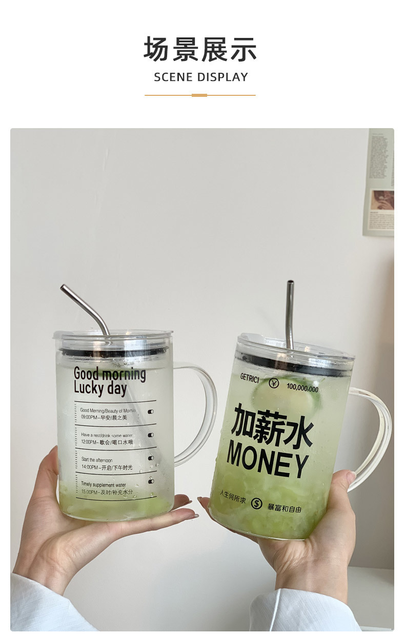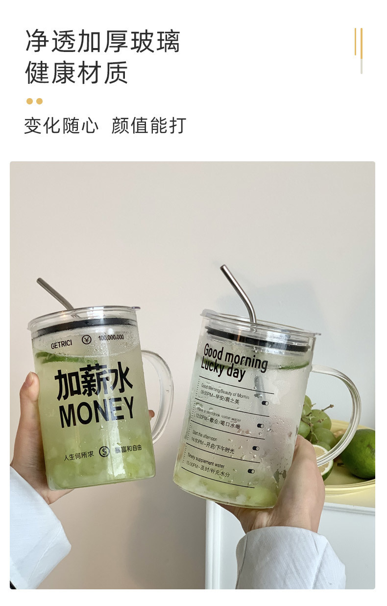2023 new water cup large capacity glass office office office worker simple Cup ins high-looking straw Cup