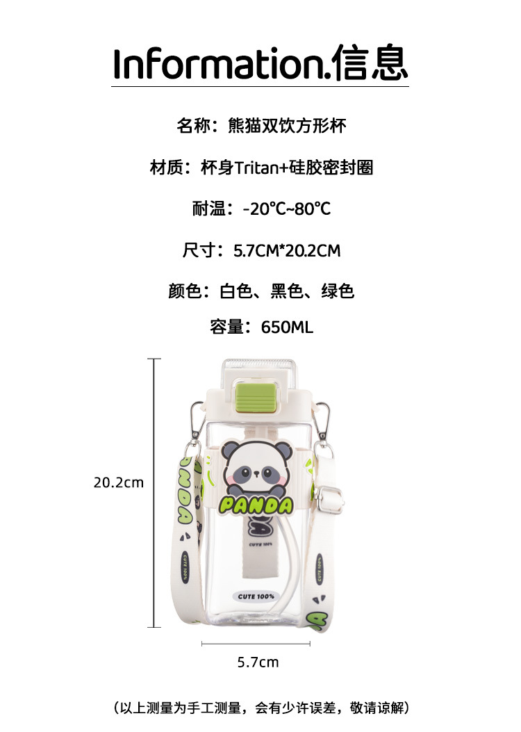 Panda Children's Water Cup for School Students Stupid Cup for Boys Summer Portable Plastic Cup Cute Girls