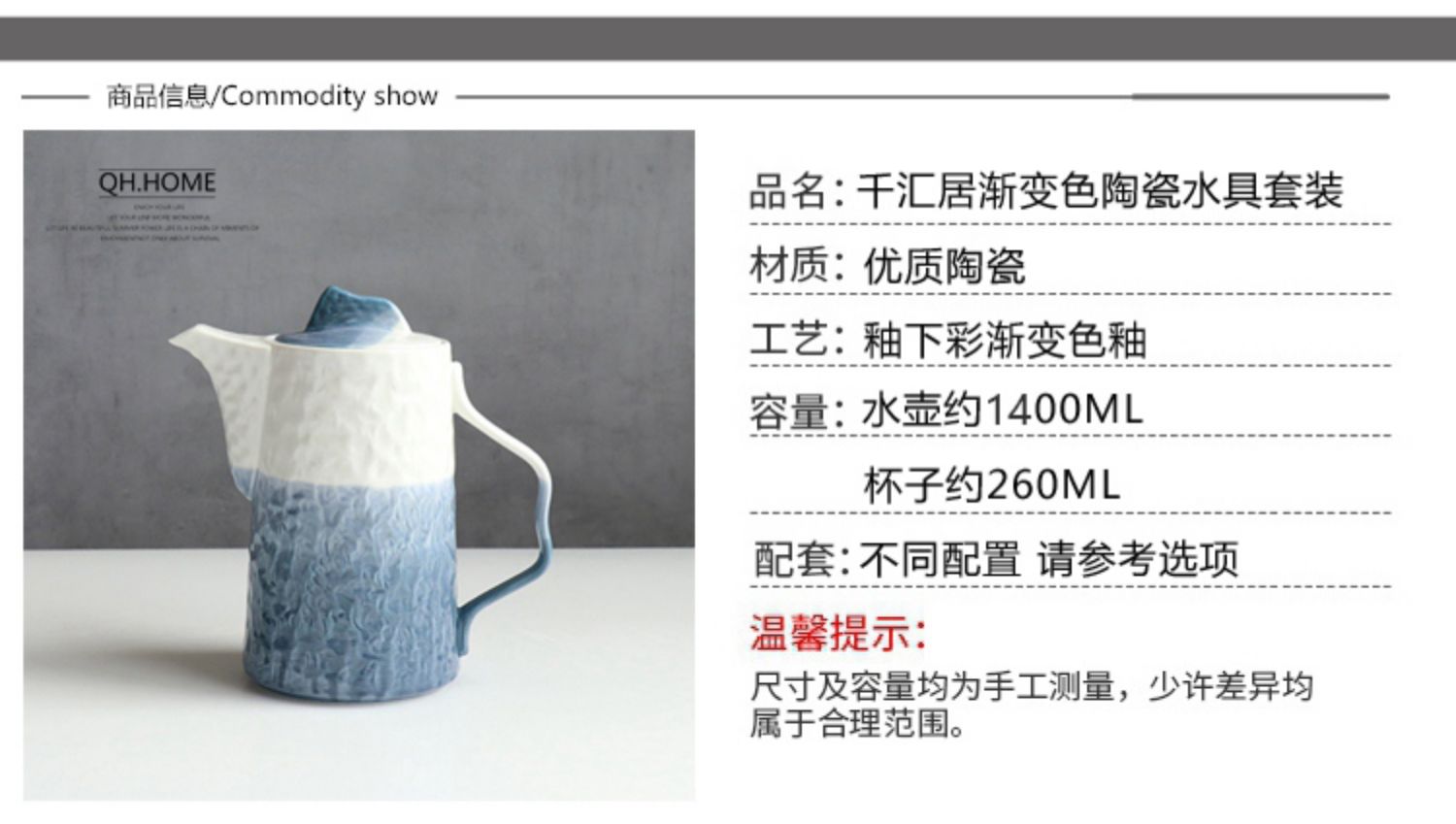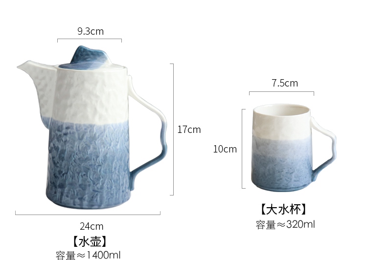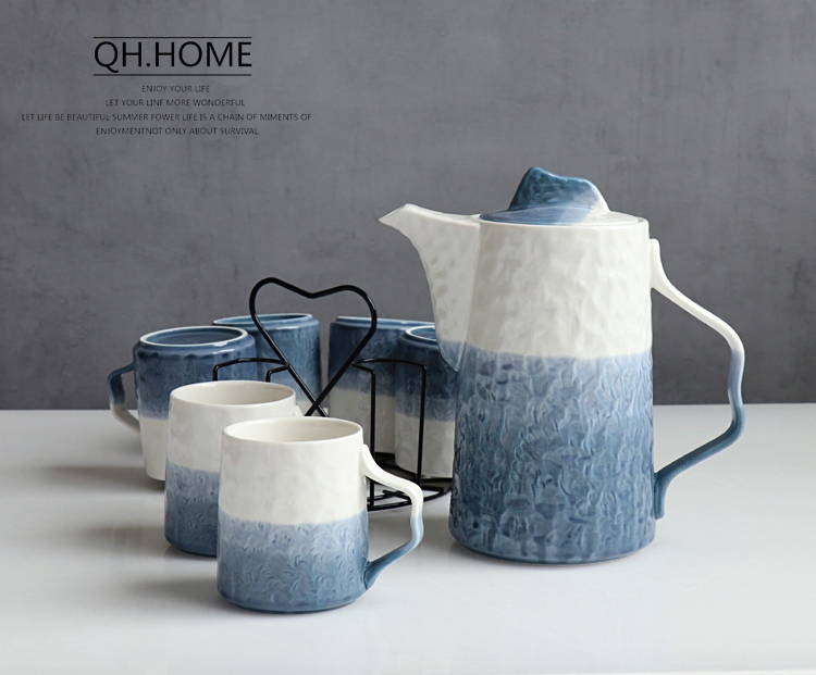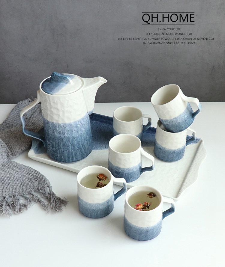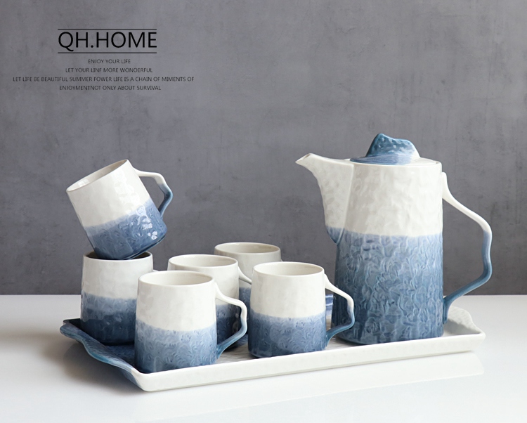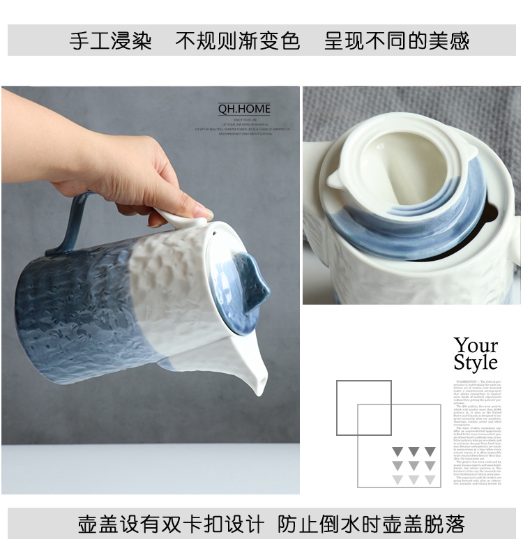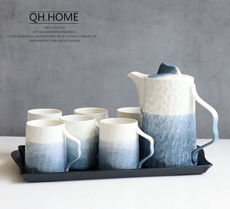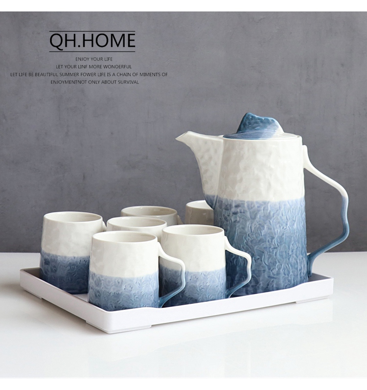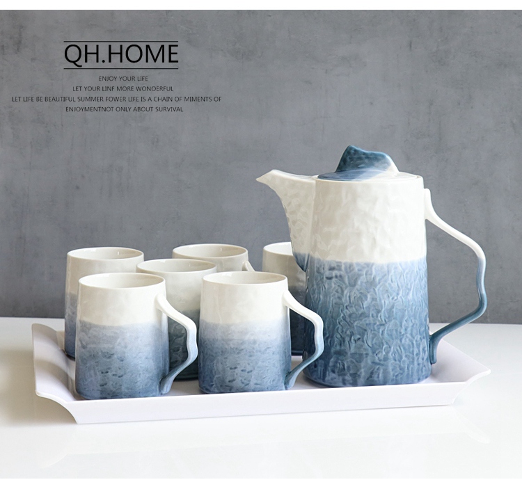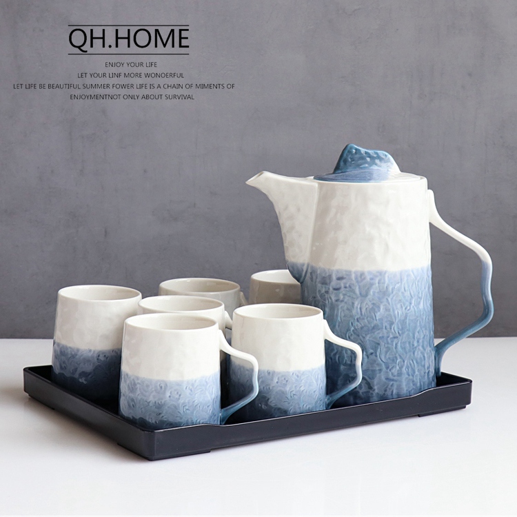 Qianhuiju gradient ceramic kettle suit household heat-resistant Tea Cup suit living room cold Kettle tea set water Cup suit