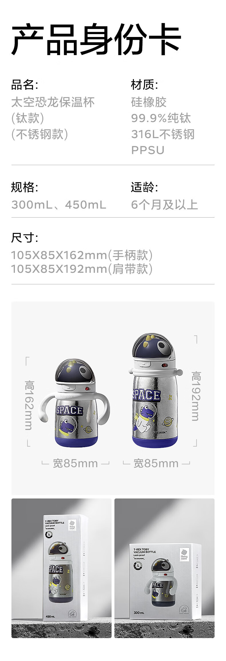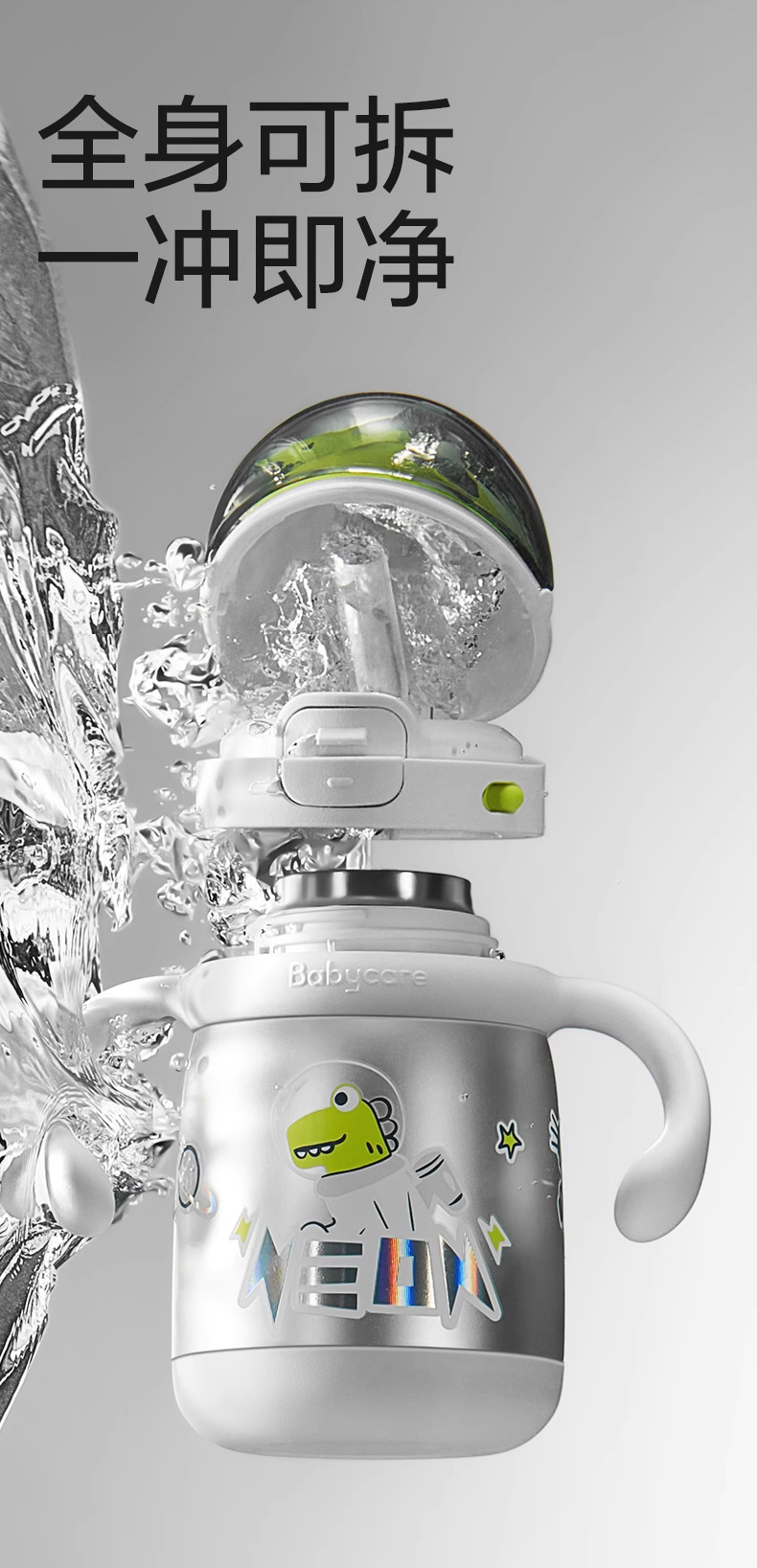 babycare dinosaur titanium empty water cup baby vacuum cup feeding bottle infant learning drinking children school straw Cup
