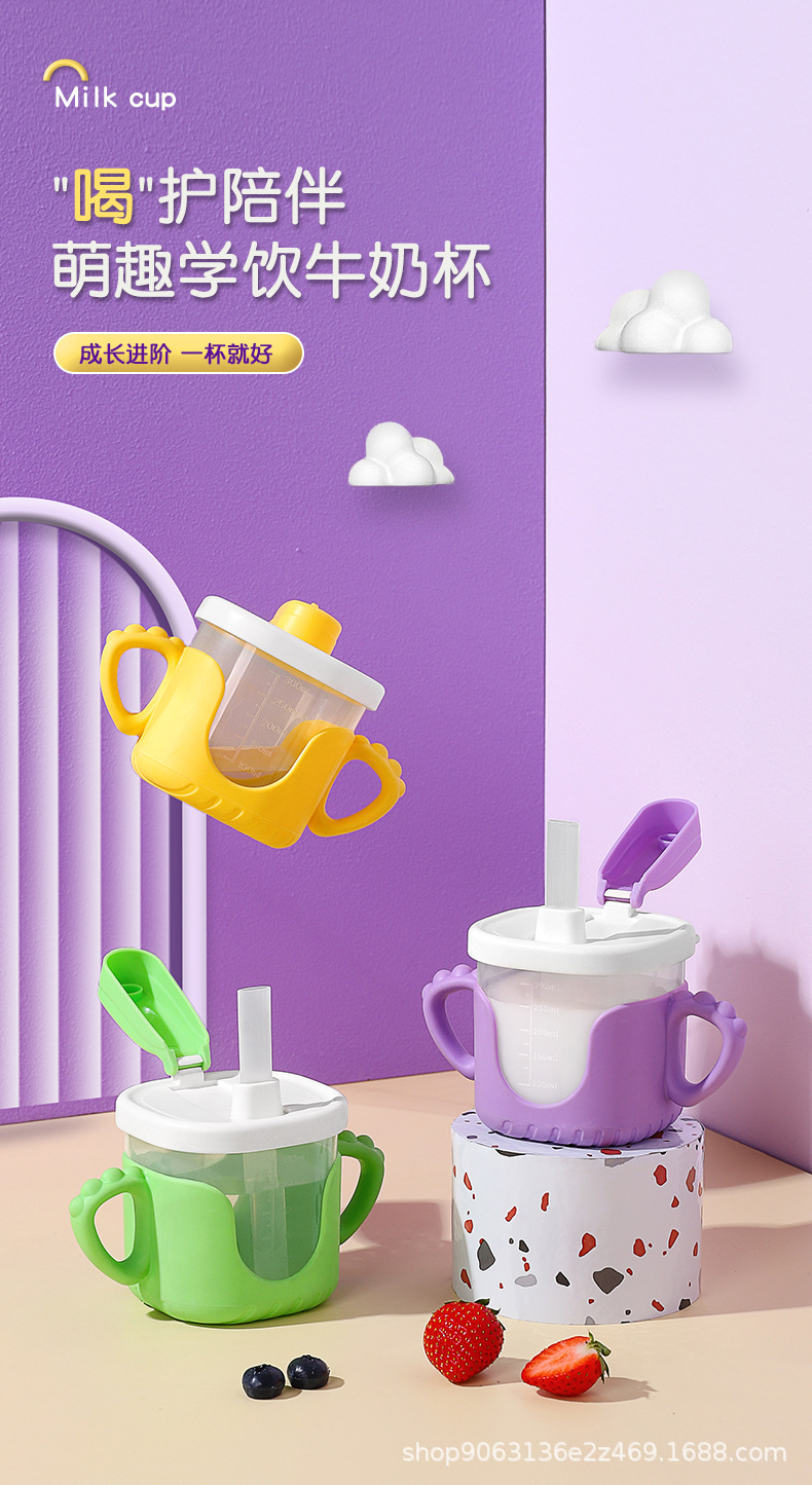 Children's water Cup household drinking Baby Milk Cup with scale straw drinking cup infant drinking soup confused drop-resistant