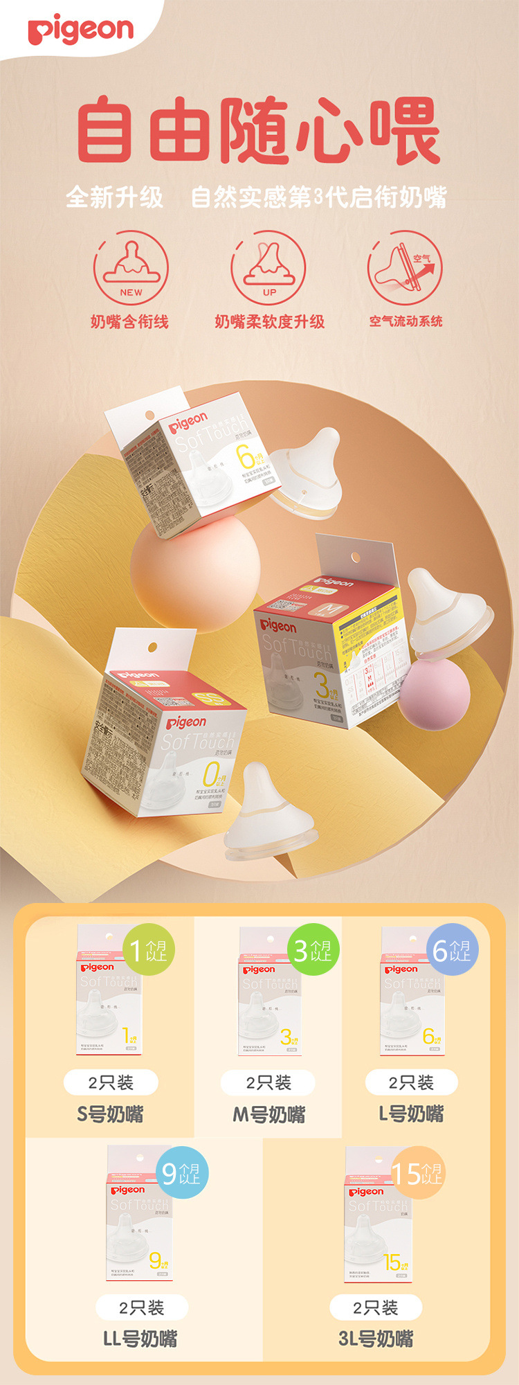 [Brand Authorization] Beiqin Chang Suction Natural Real Sense Wide Caliber Nipple 1-2 Pack SS/S/M/L/LL/LLL