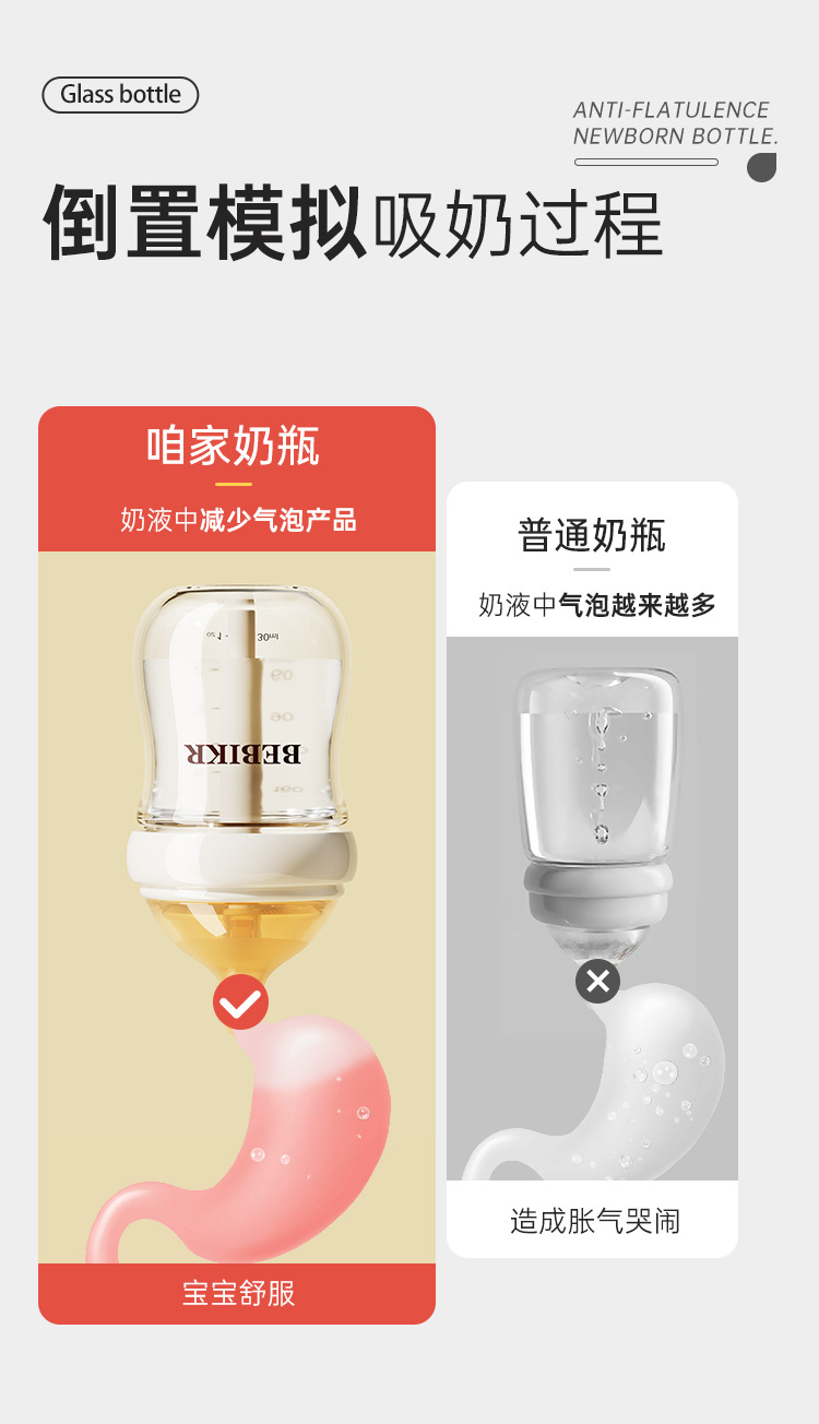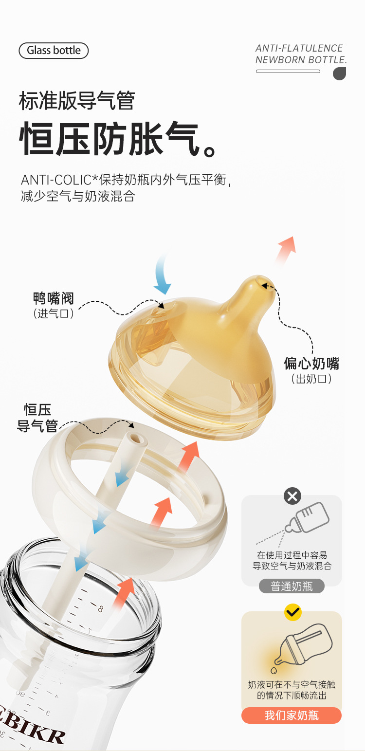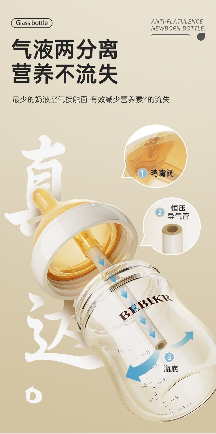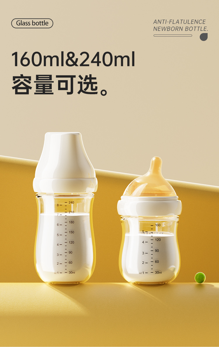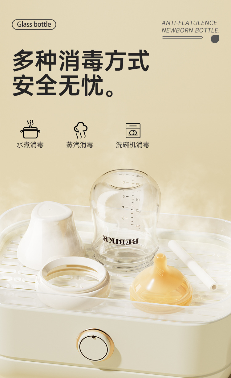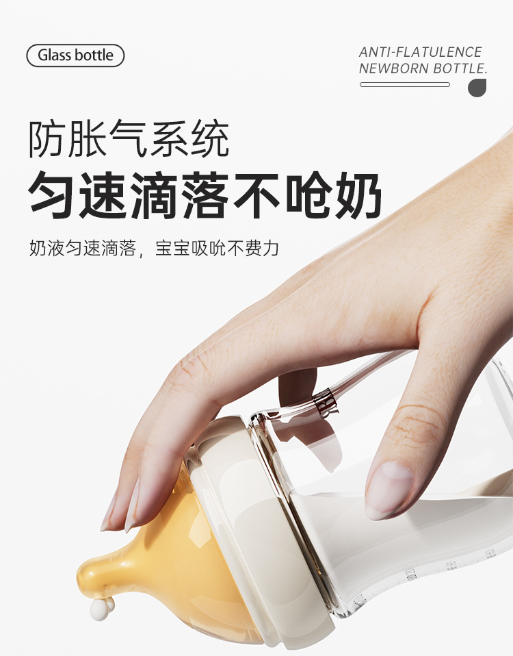 Beisika newborn feeding bottle borosilicate glass feeding bottle baby wide caliber anti-choke anti-flatulence newborn feeding bottle