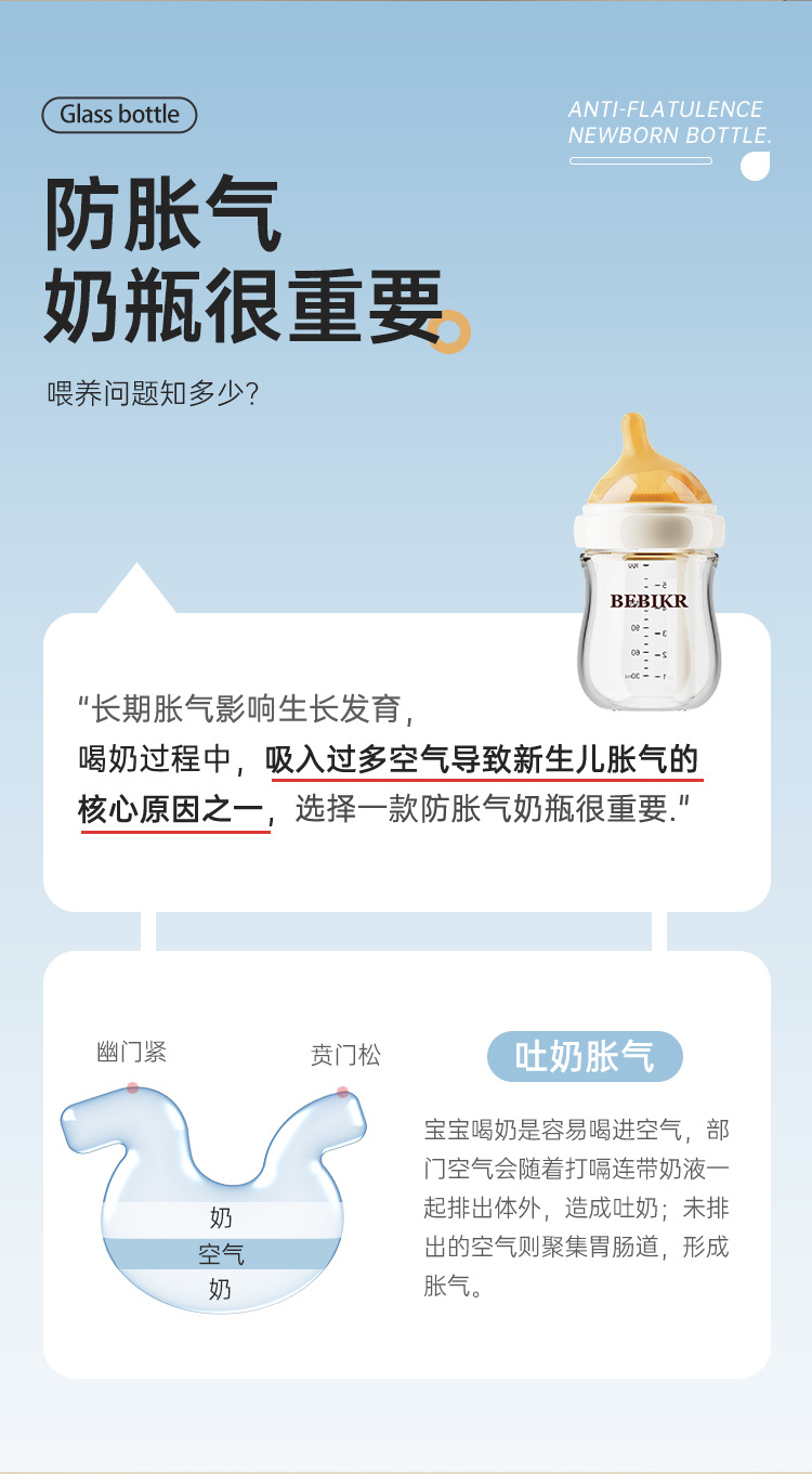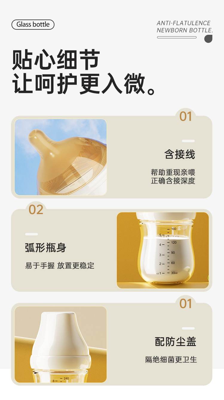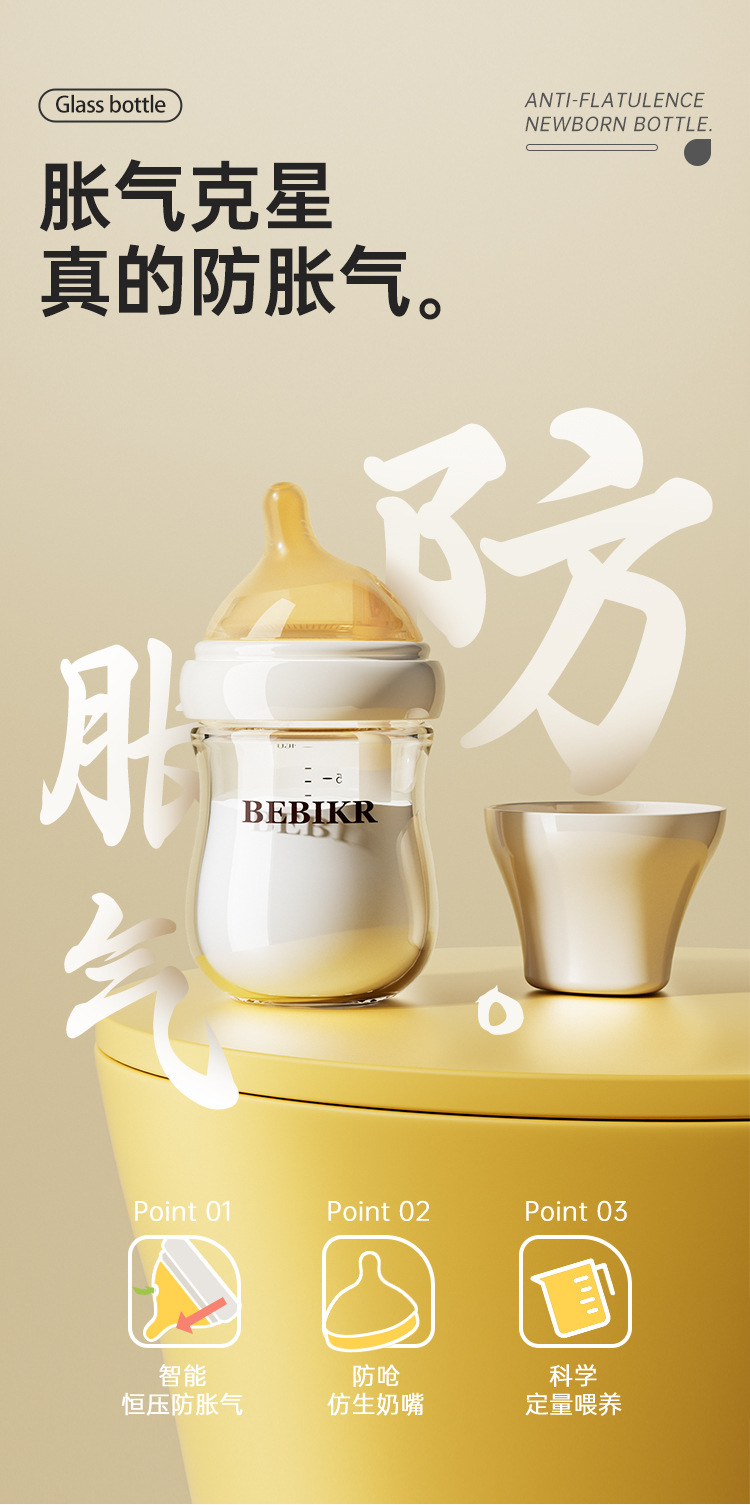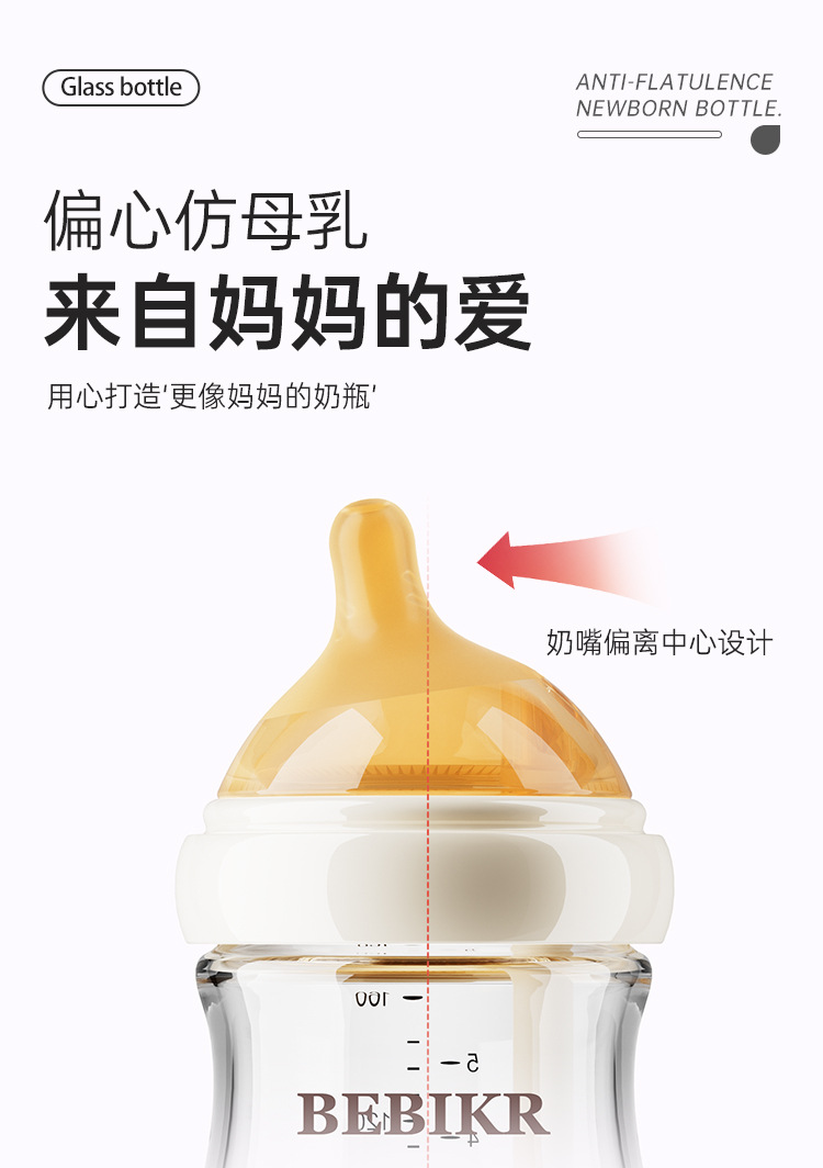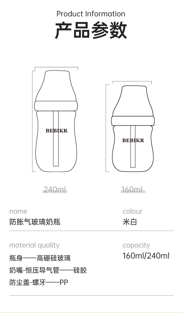 Beisika newborn feeding bottle borosilicate glass feeding bottle baby wide caliber anti-choke anti-flatulence newborn feeding bottle