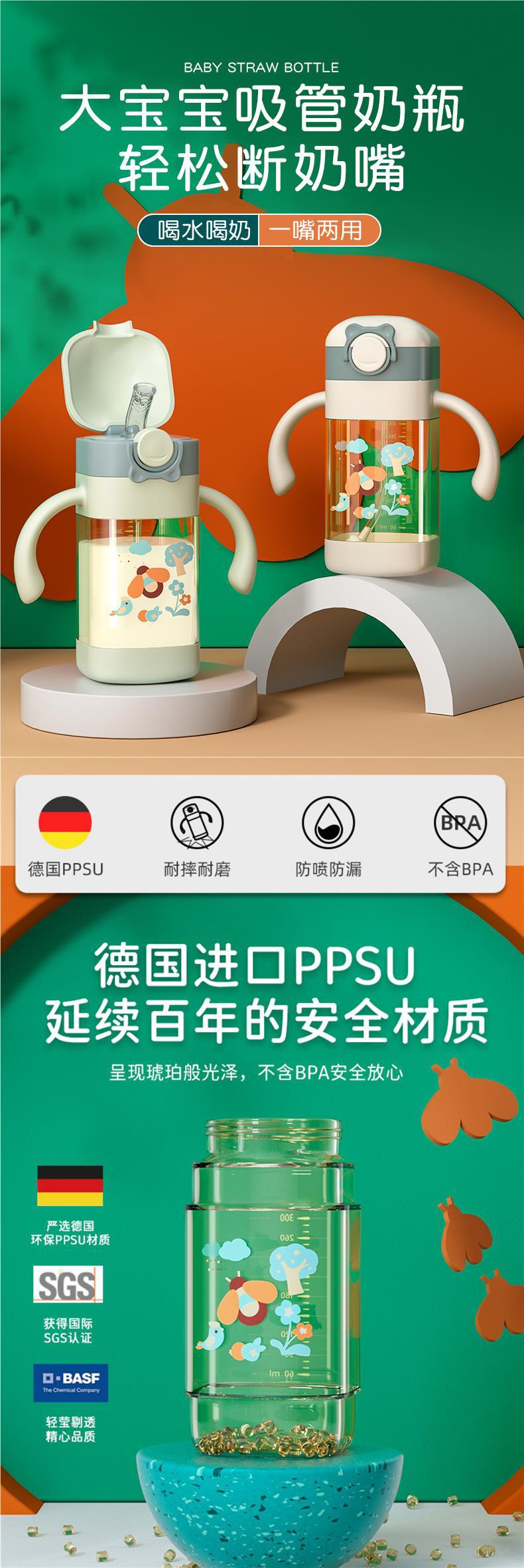 Ppsu Suction Tube Cup Bottle Children over 2-3 Years Old Drink Milk Big Baby Two Years Old Learn to Drink to Prevent Flatulence and Fall Resistance