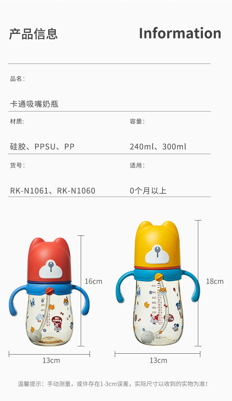 Rikang Baby Bottle ppsu Wide Mouth Fall Resistant Drink Drinking Cup Big Baby Bottle