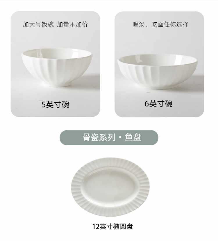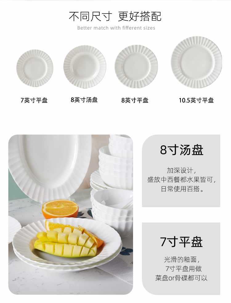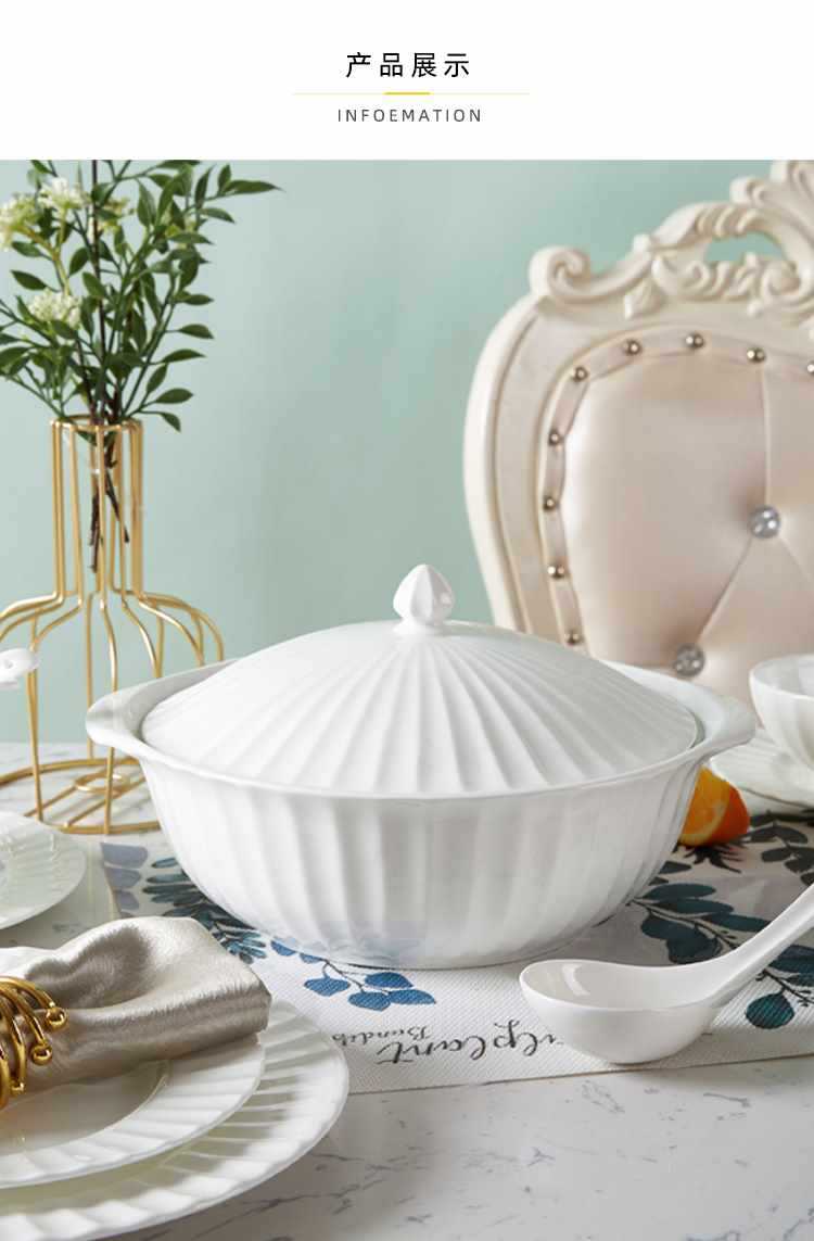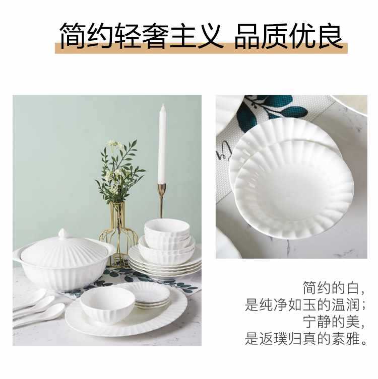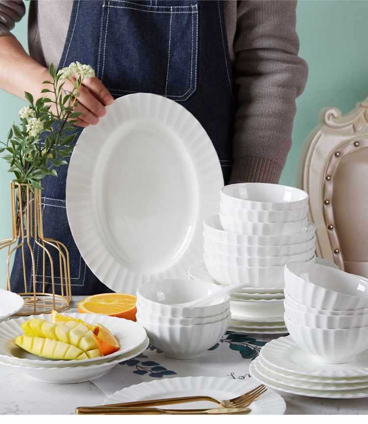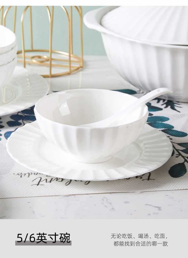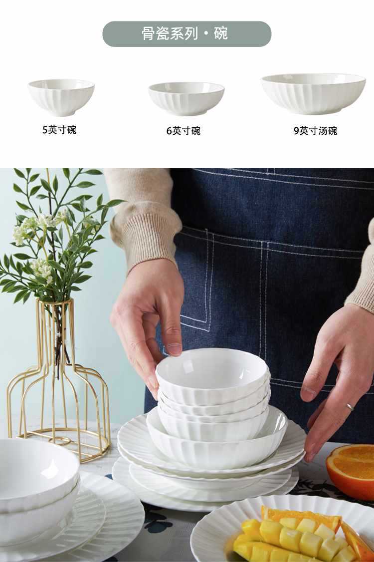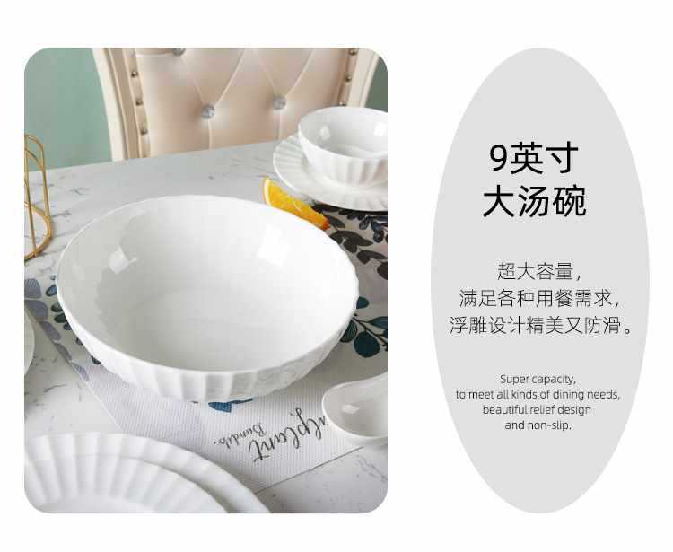 Dish plate white bone china bowl dish tableware European style soup plate embossed ceramic rice bowl suit light luxury household
