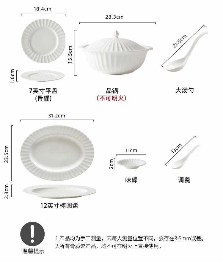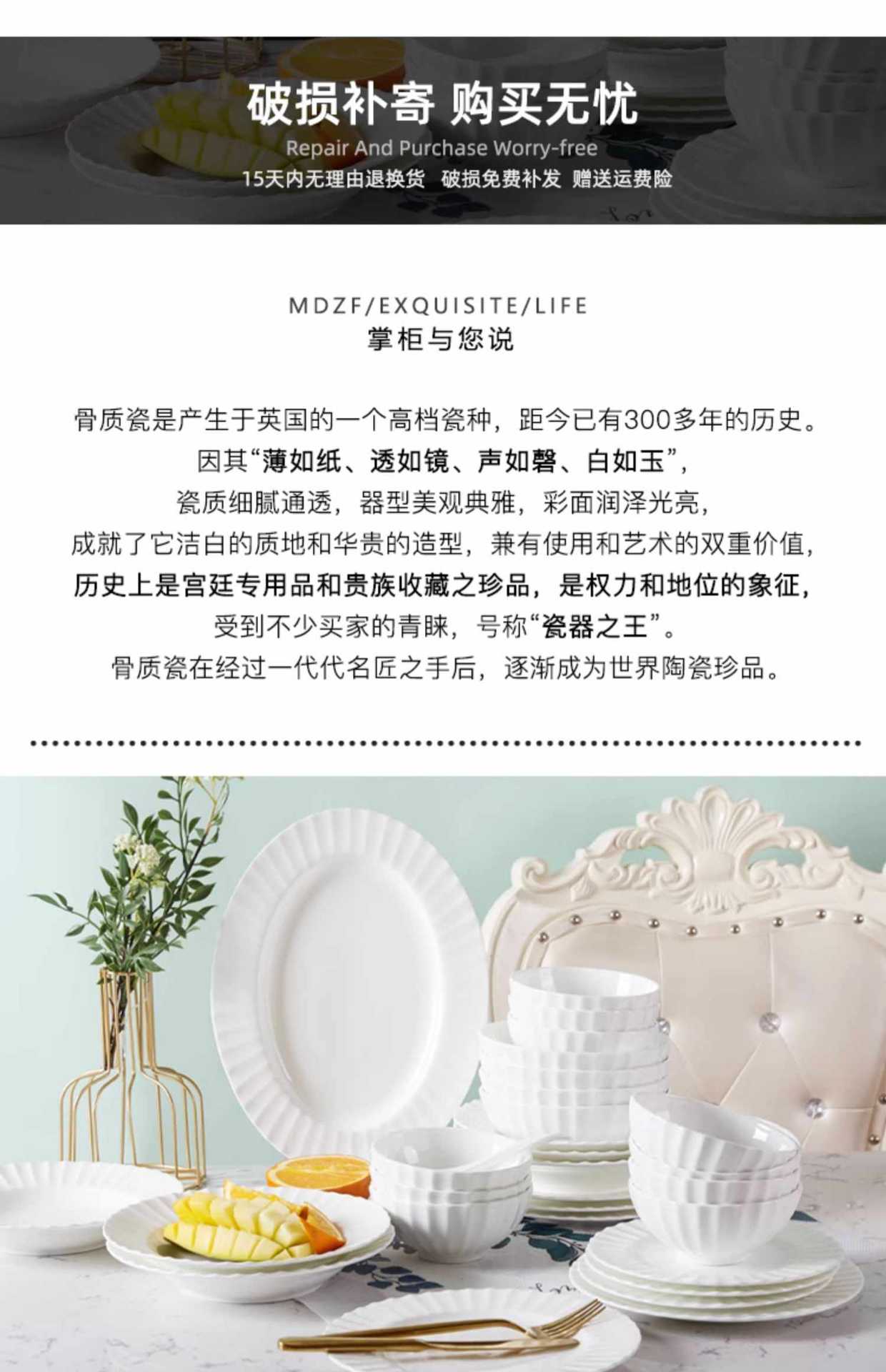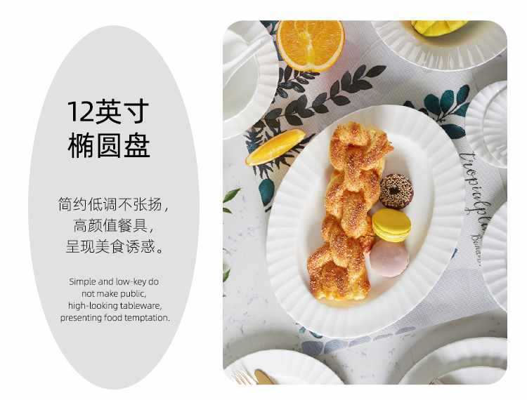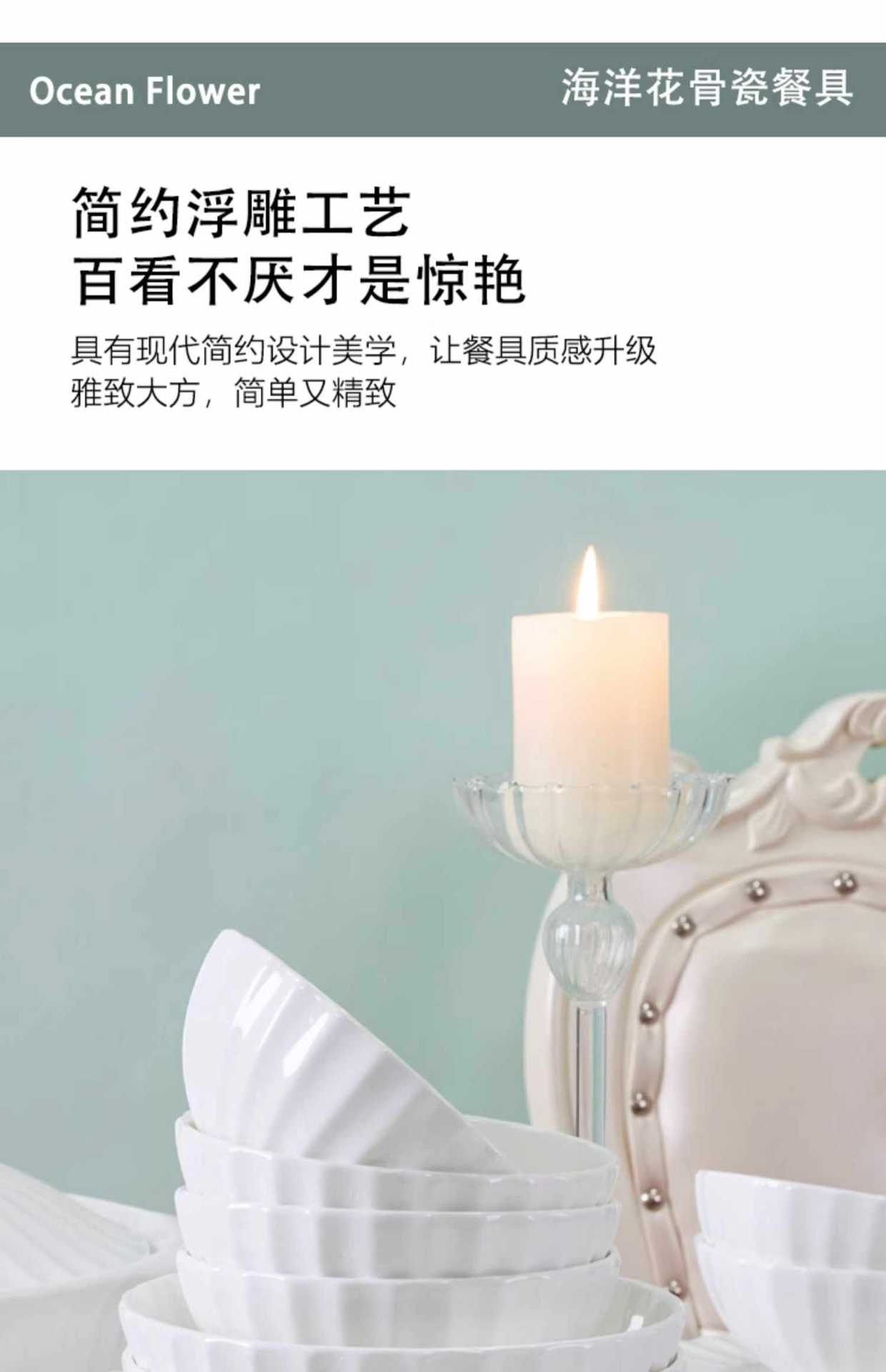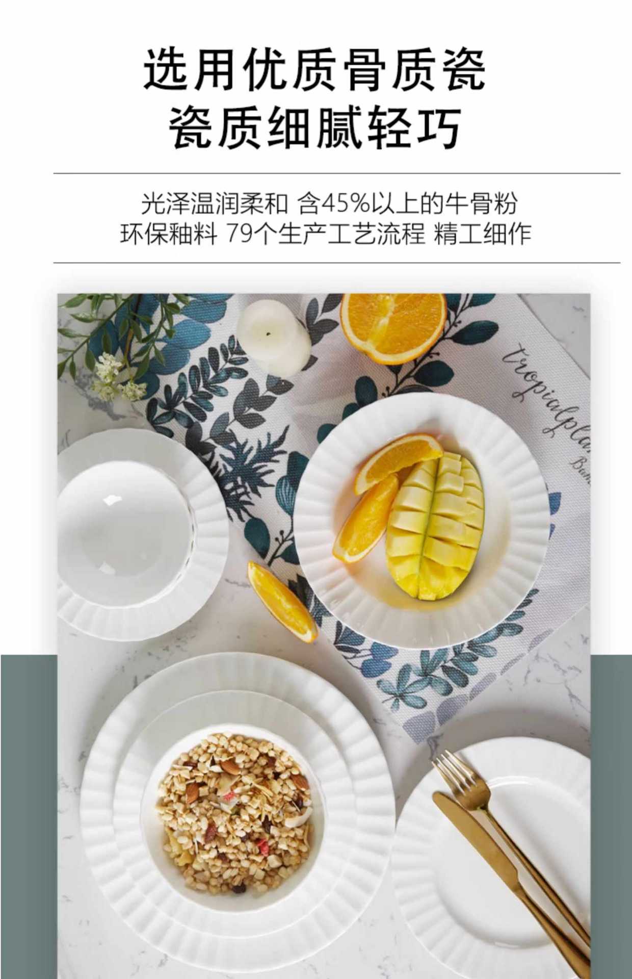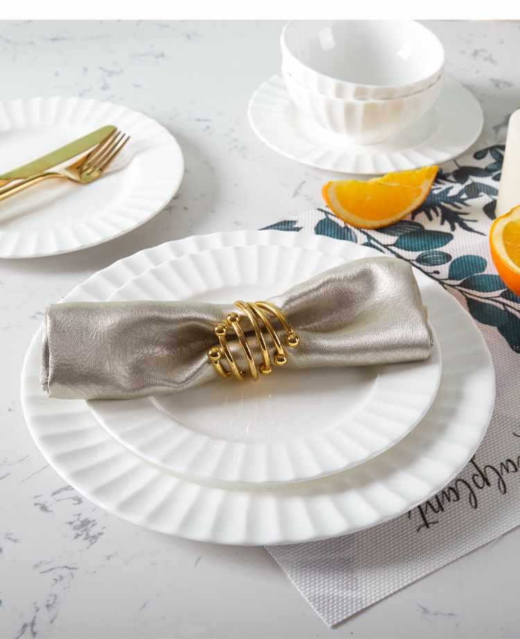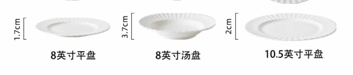 Dish plate white bone china bowl dish tableware European style soup plate embossed ceramic rice bowl suit light luxury household