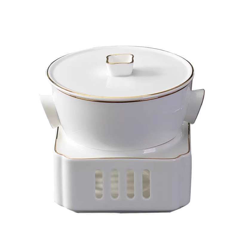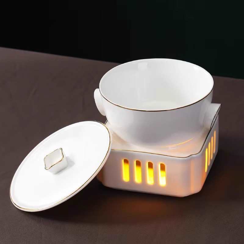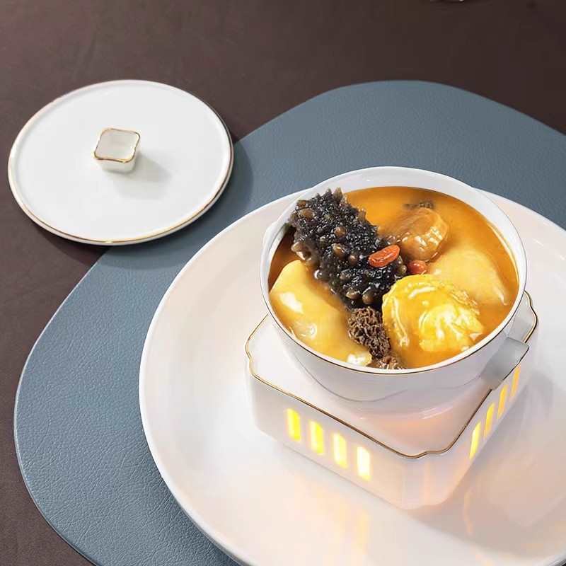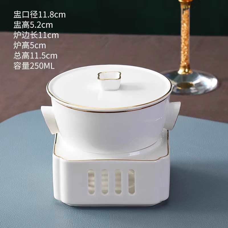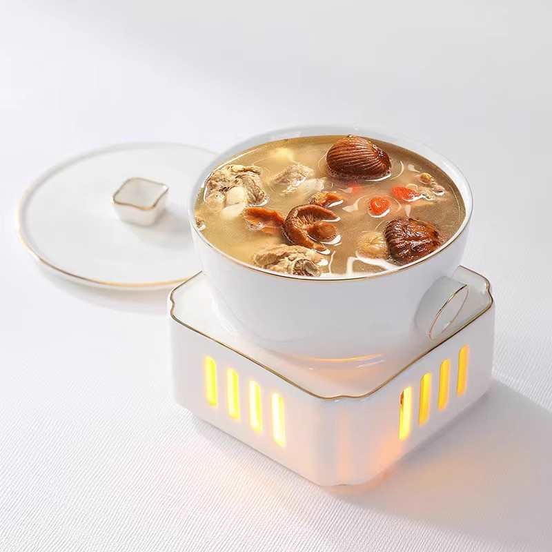 Chinese-style one-person serving soup candle heating Bird's Nest fish wings commercial sea cucumber stew hotel ceramic stew