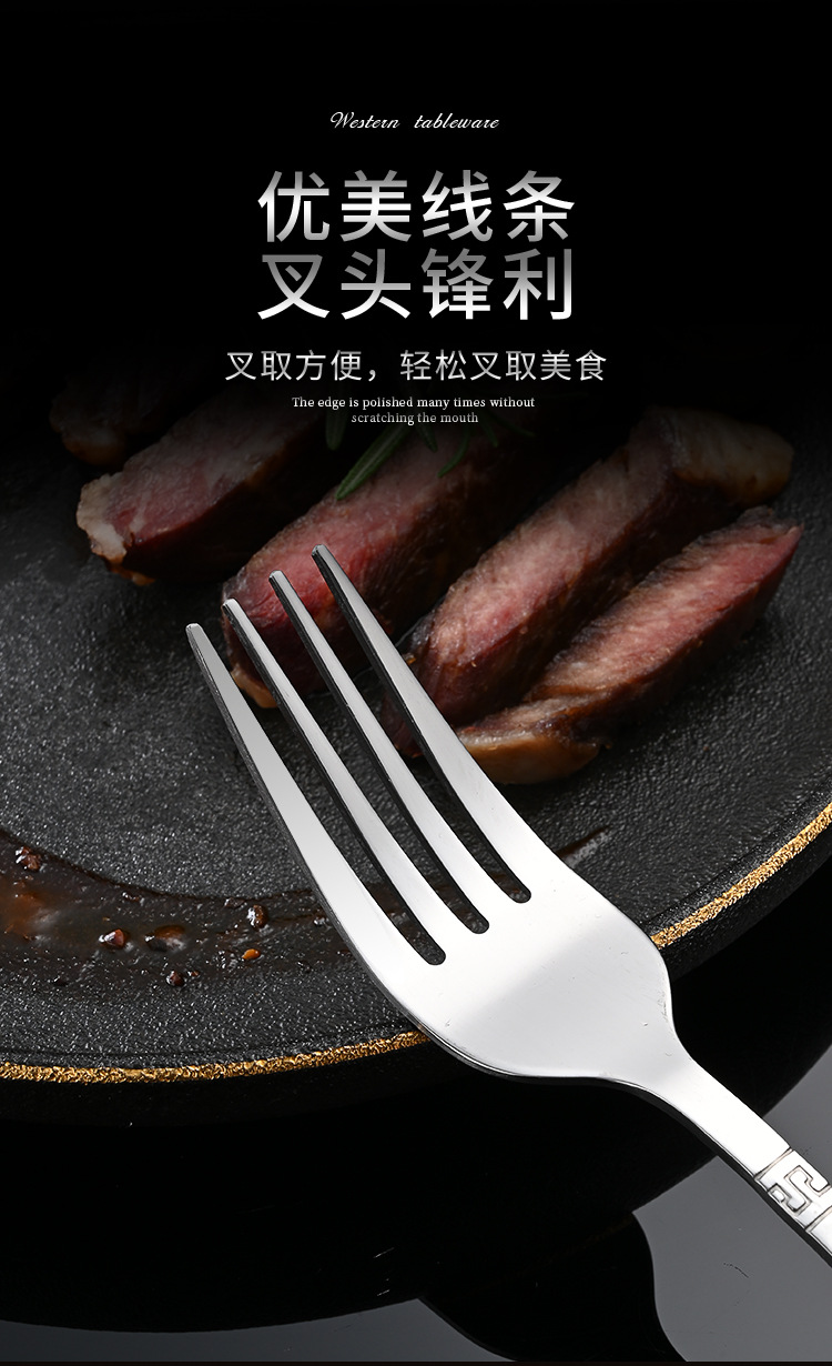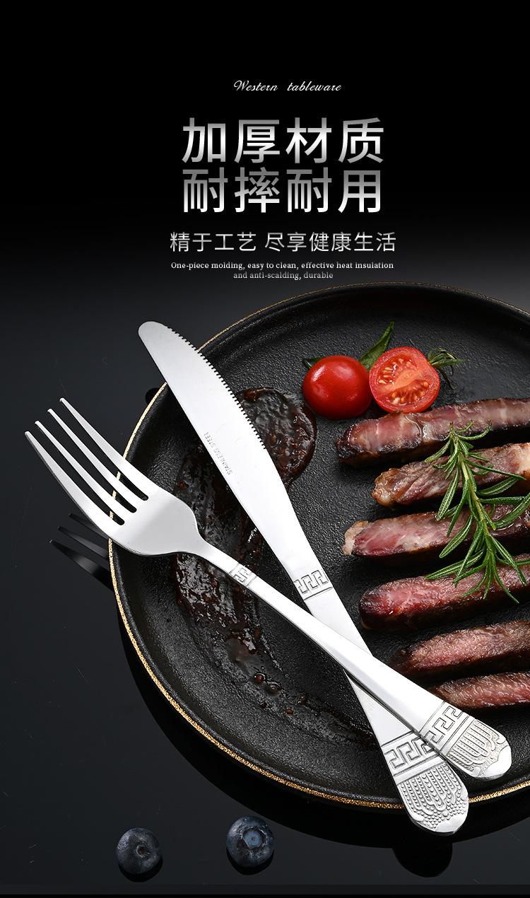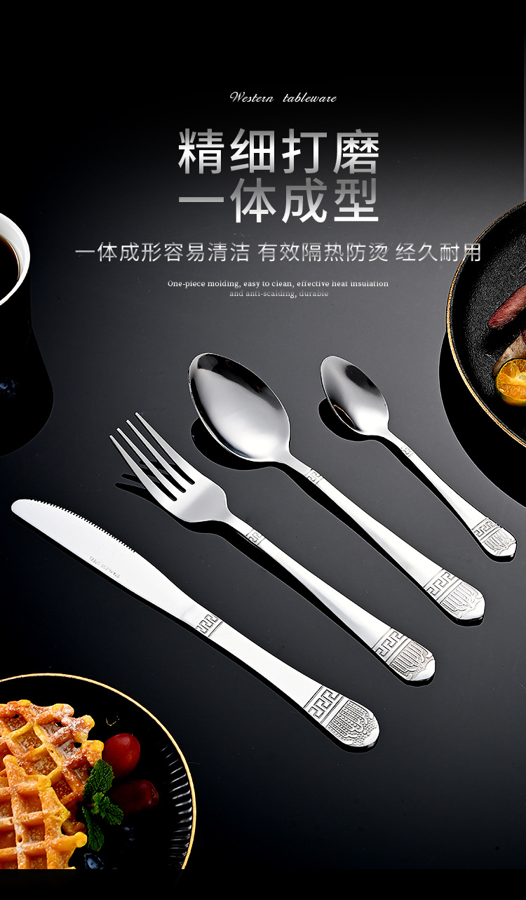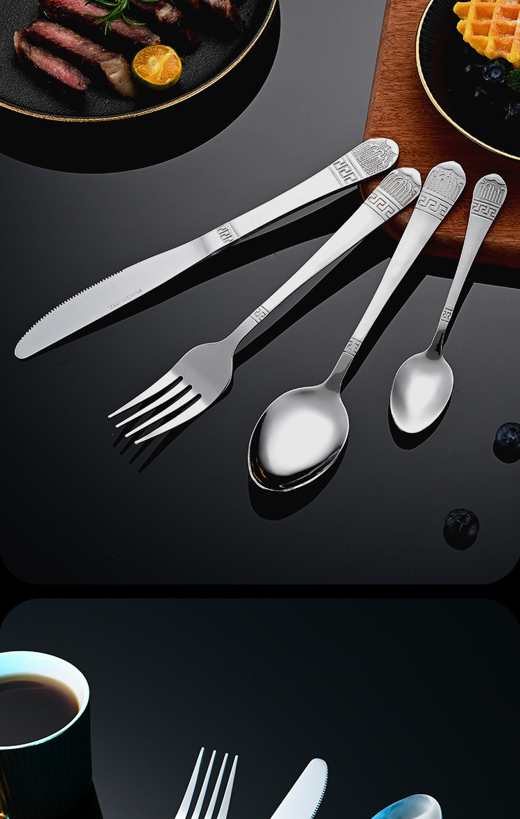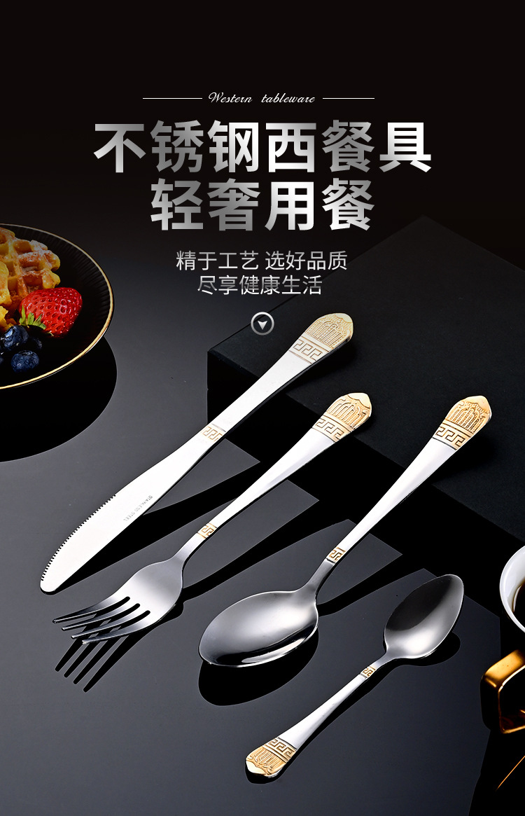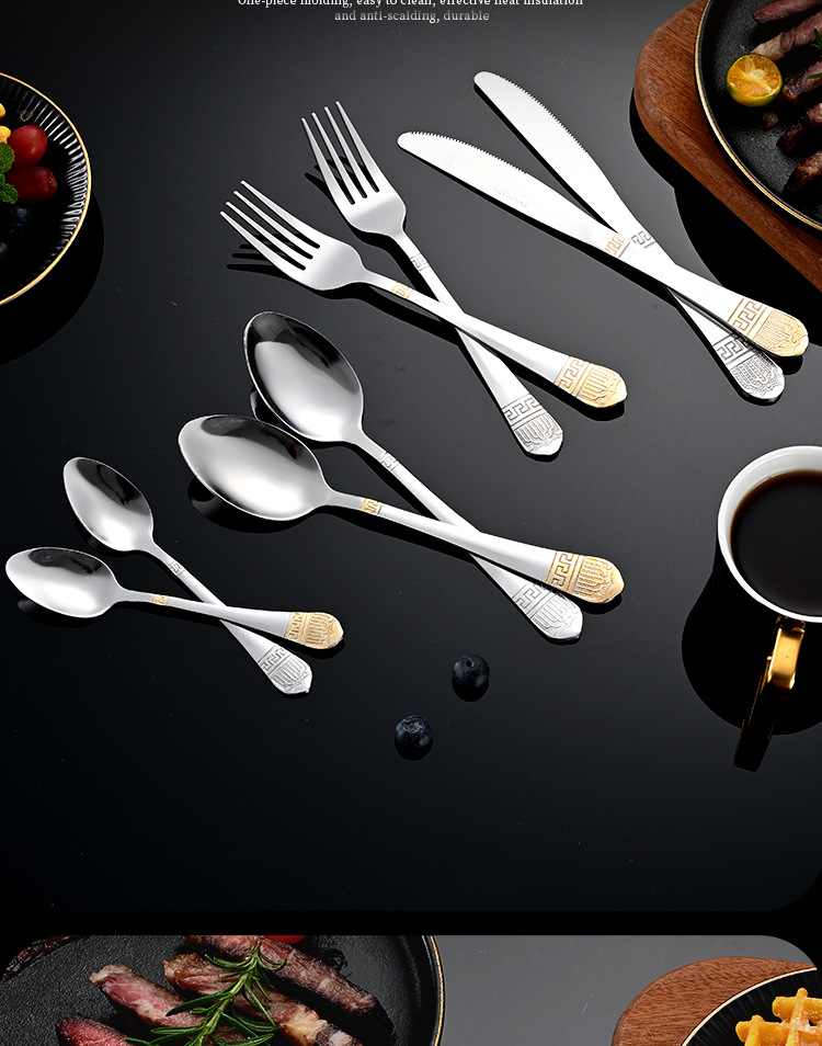 Cross-border stainless steel tableware retro gold-plated 24-piece western knife and fork spoon set hotel steak knife and fork wholesale