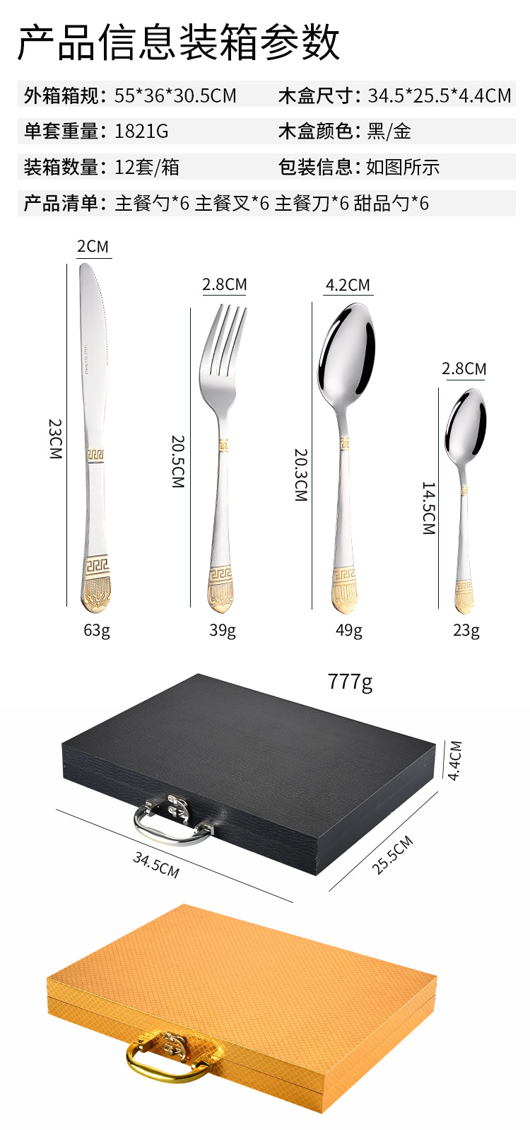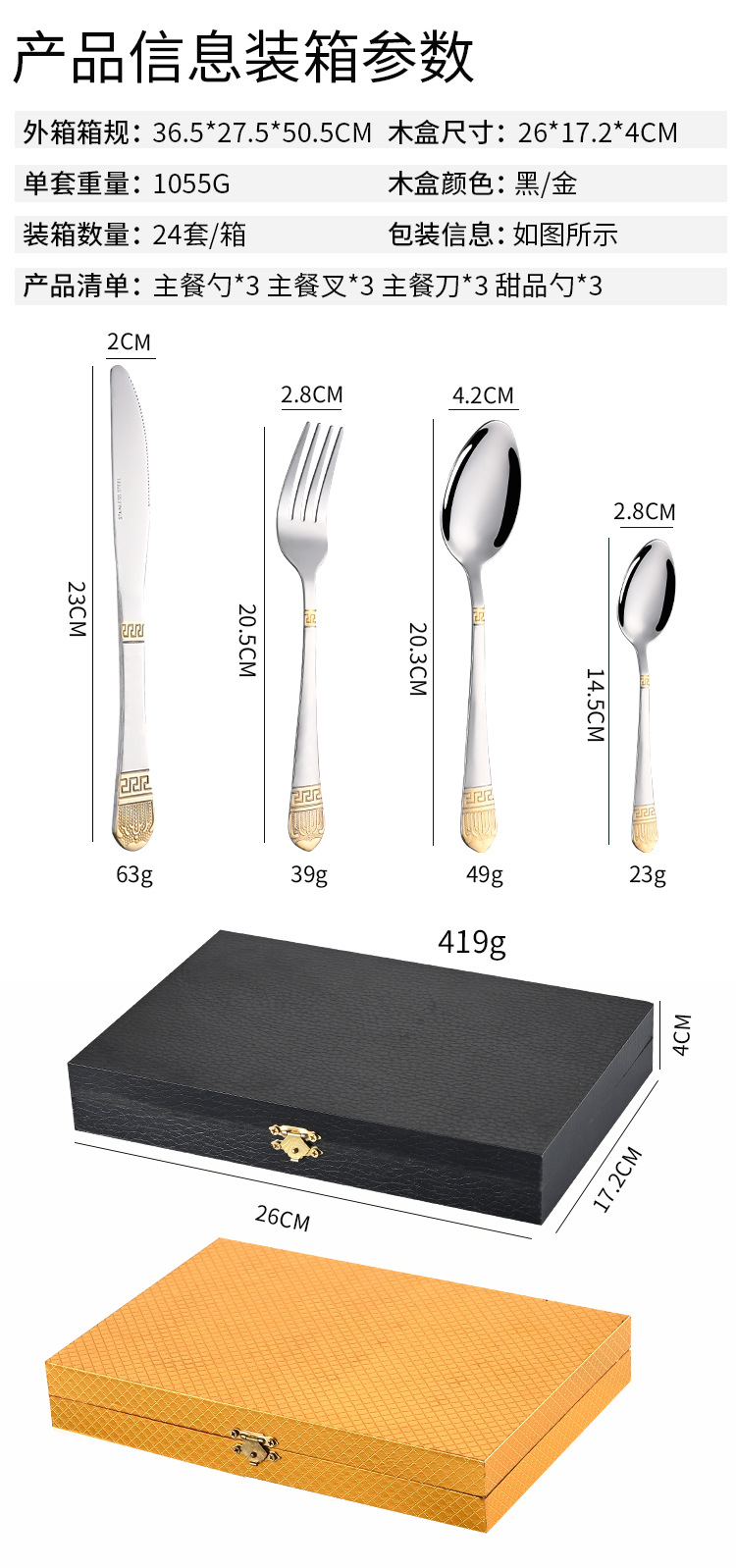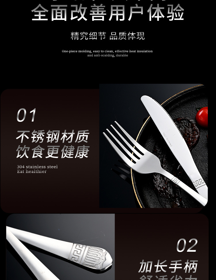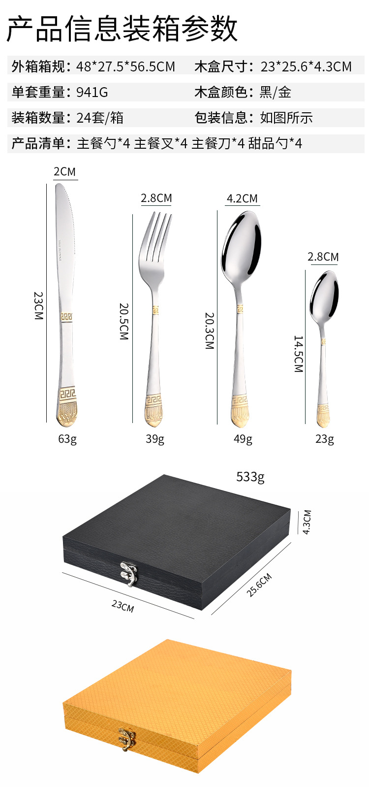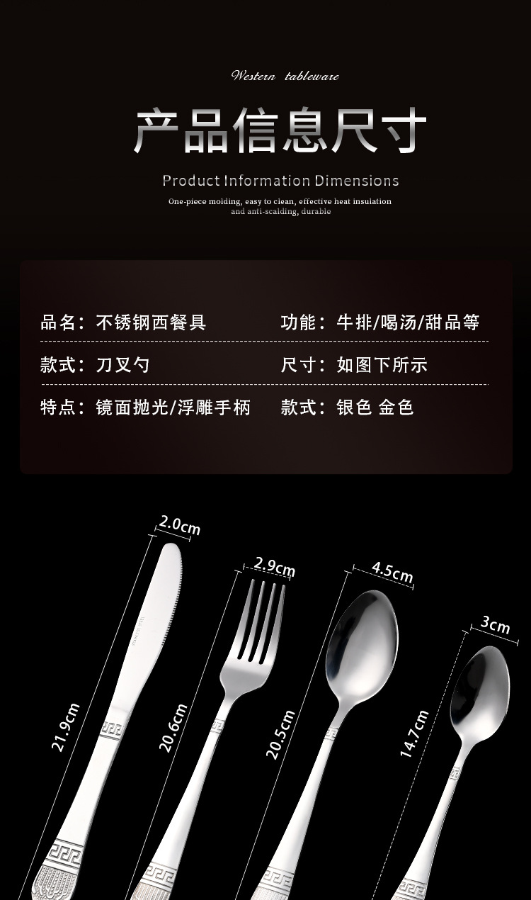 Cross-border stainless steel tableware retro gold-plated 24-piece western knife and fork spoon set hotel steak knife and fork wholesale