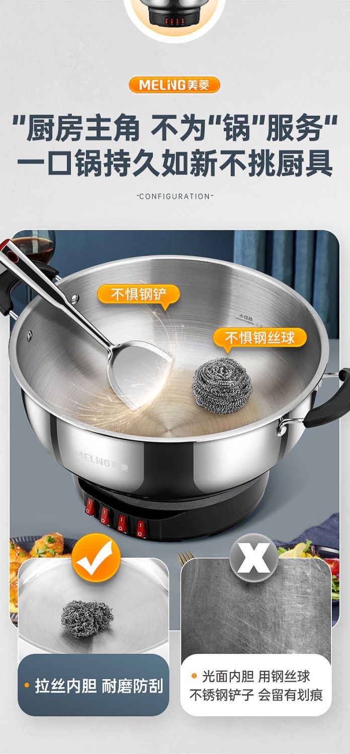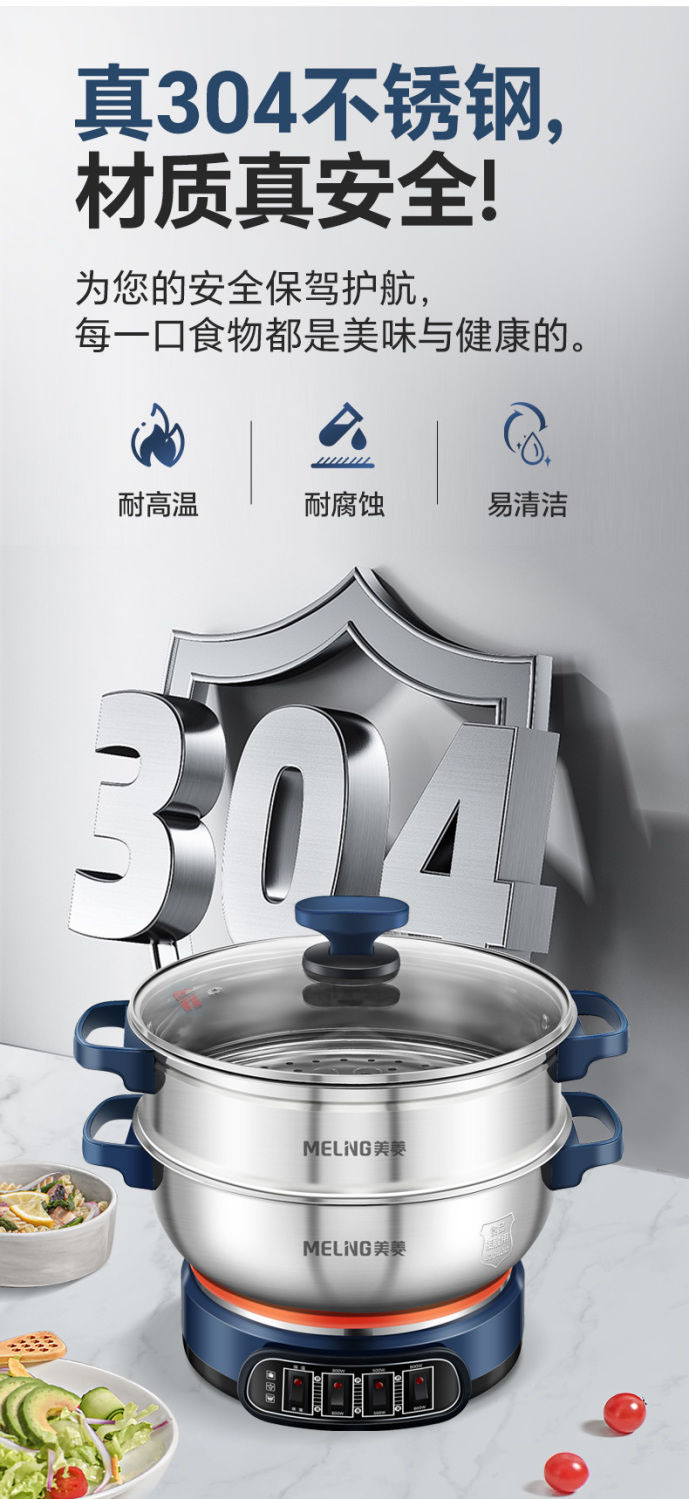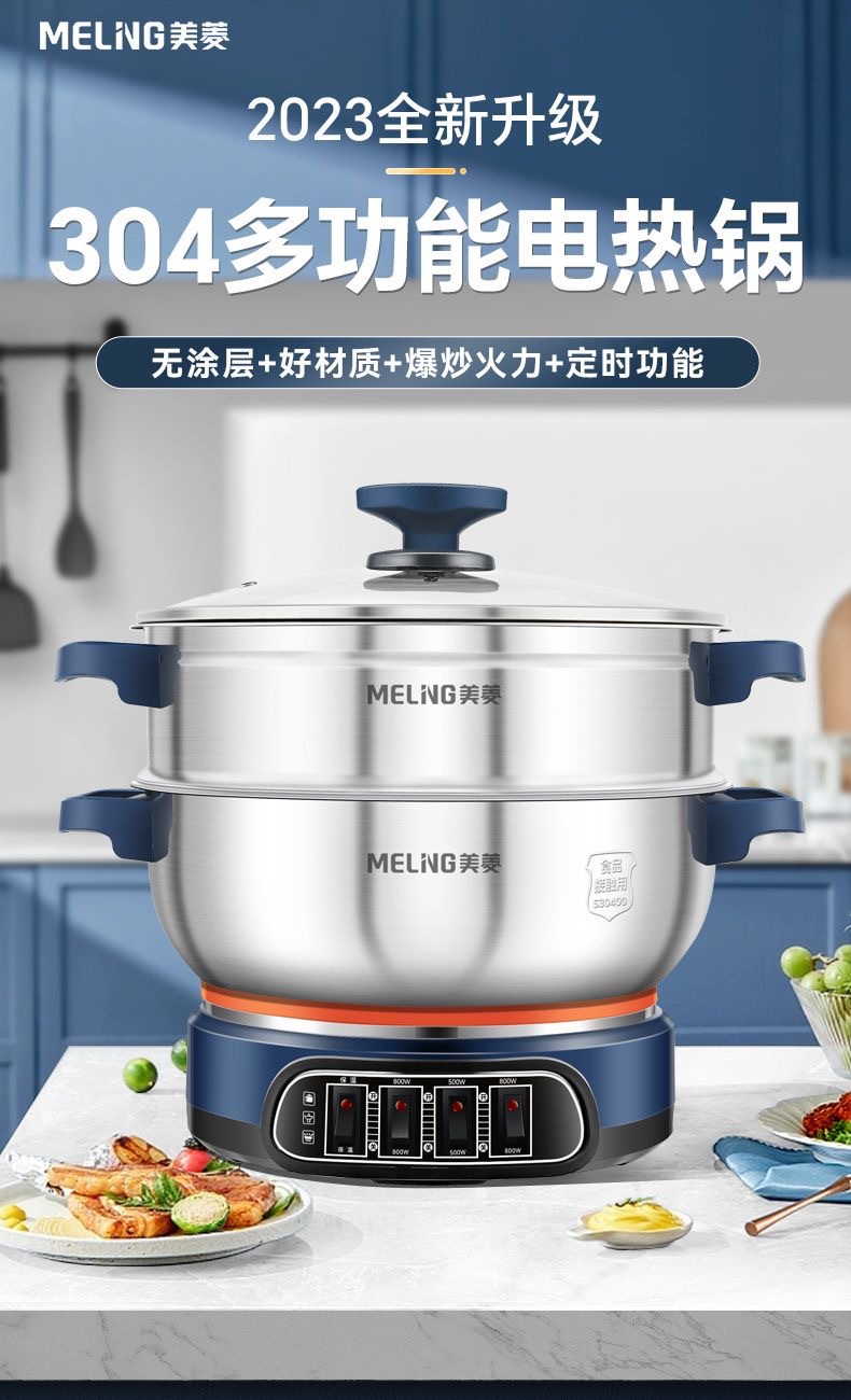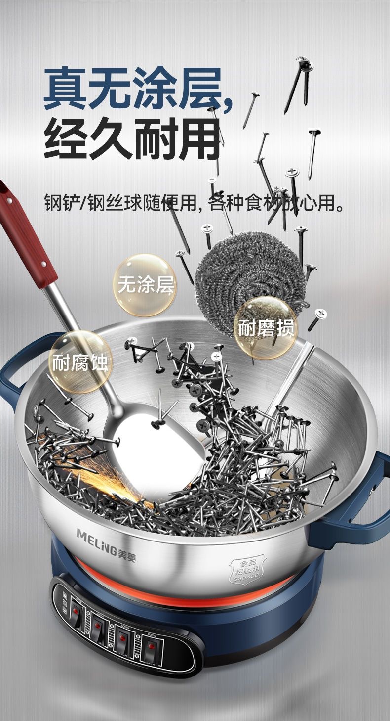 304 stainless steel electric wok extra thick multi-functional electric wok household electric wok Blue