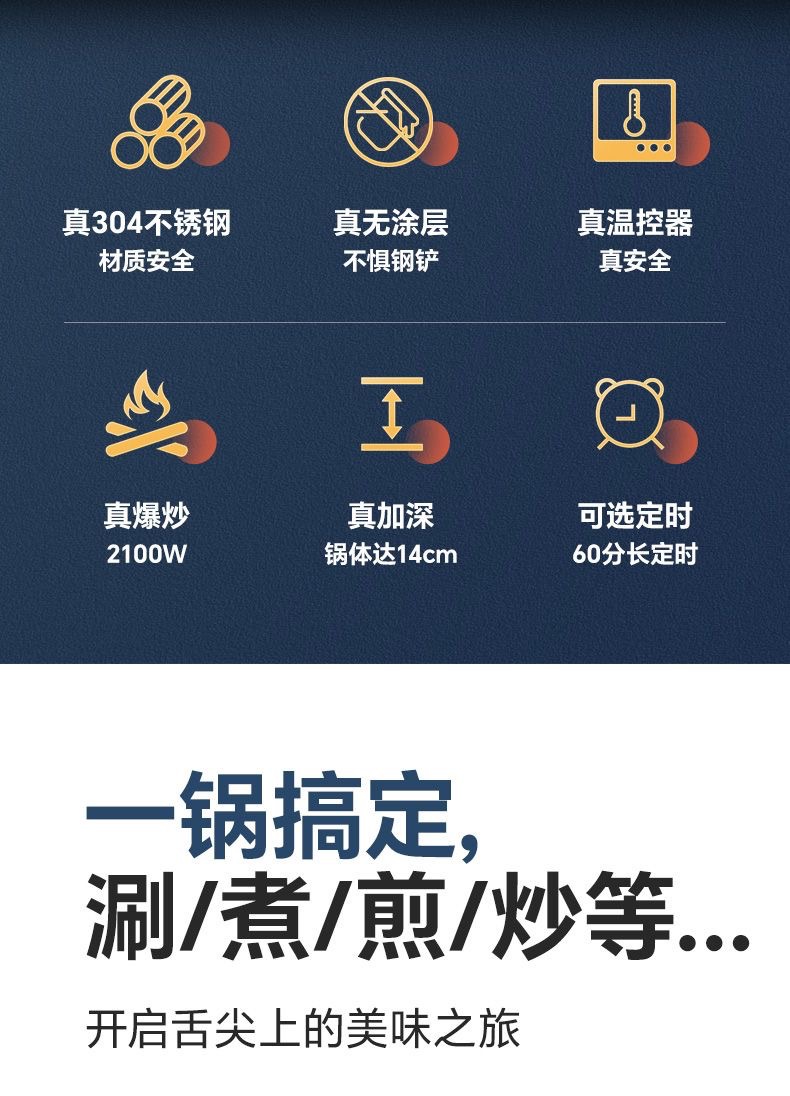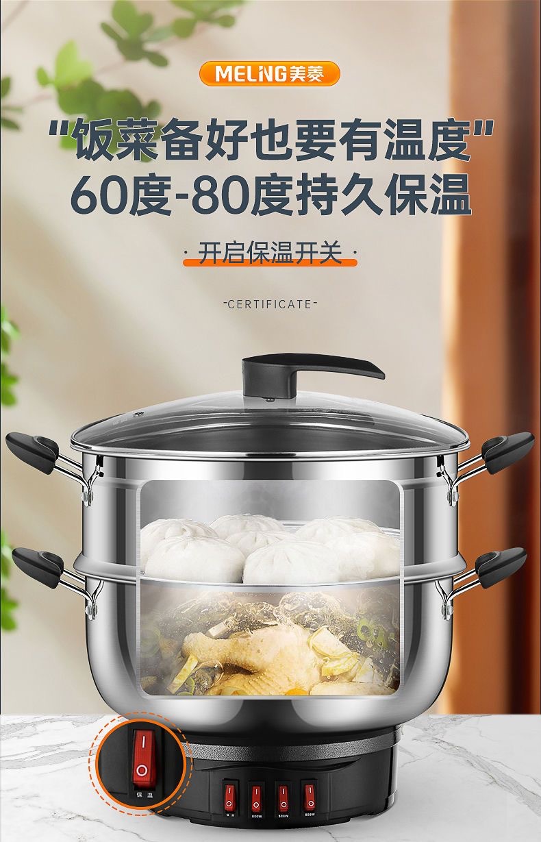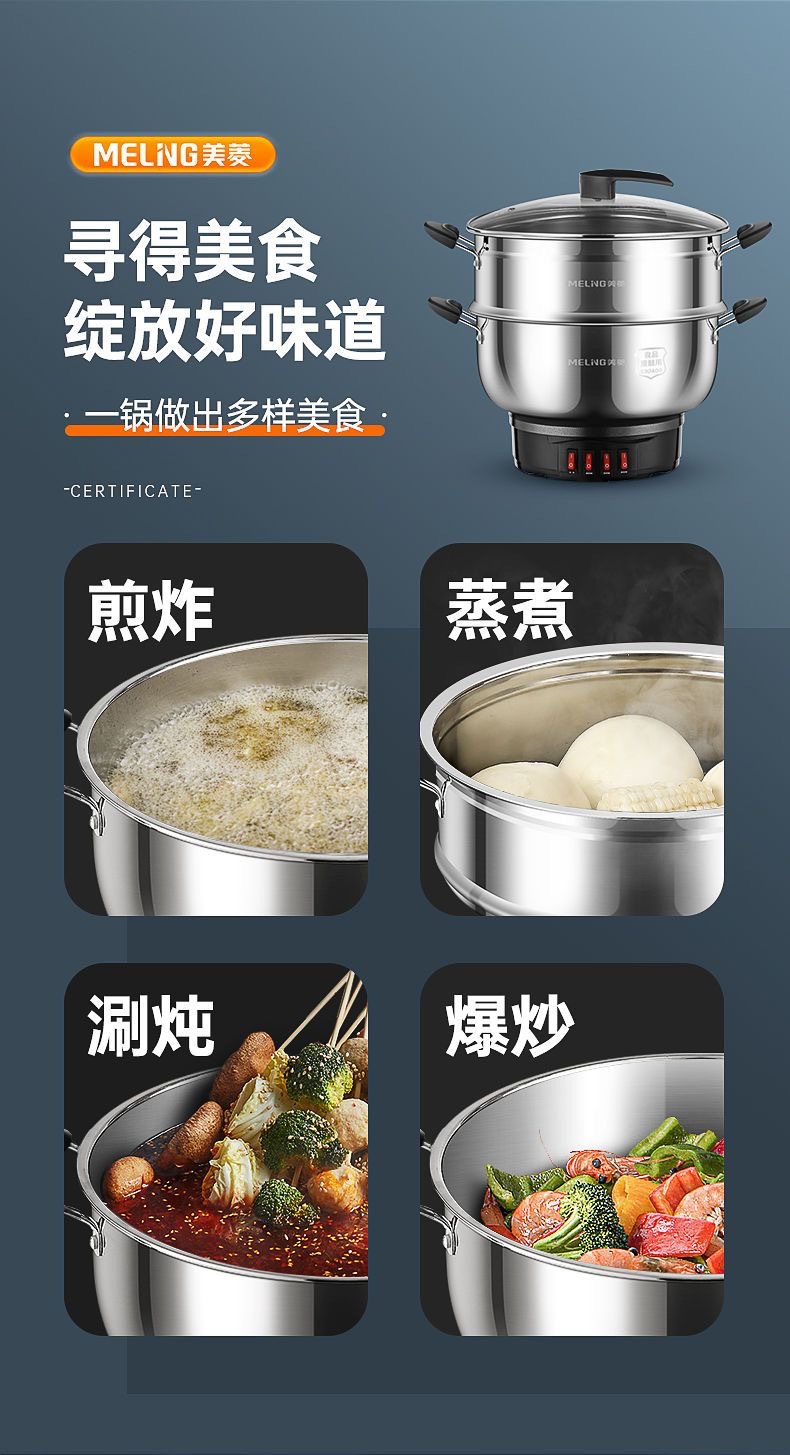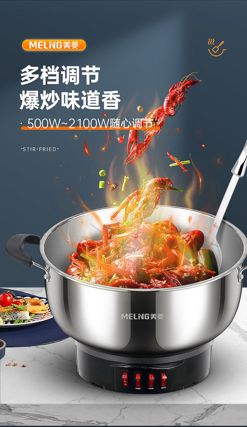304 stainless steel electric wok extra thick multi-functional electric wok household electric wok Blue