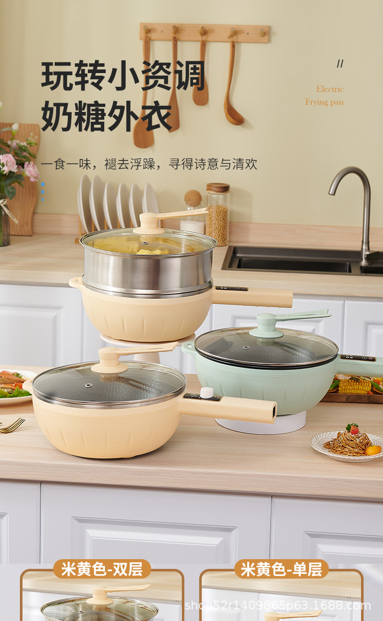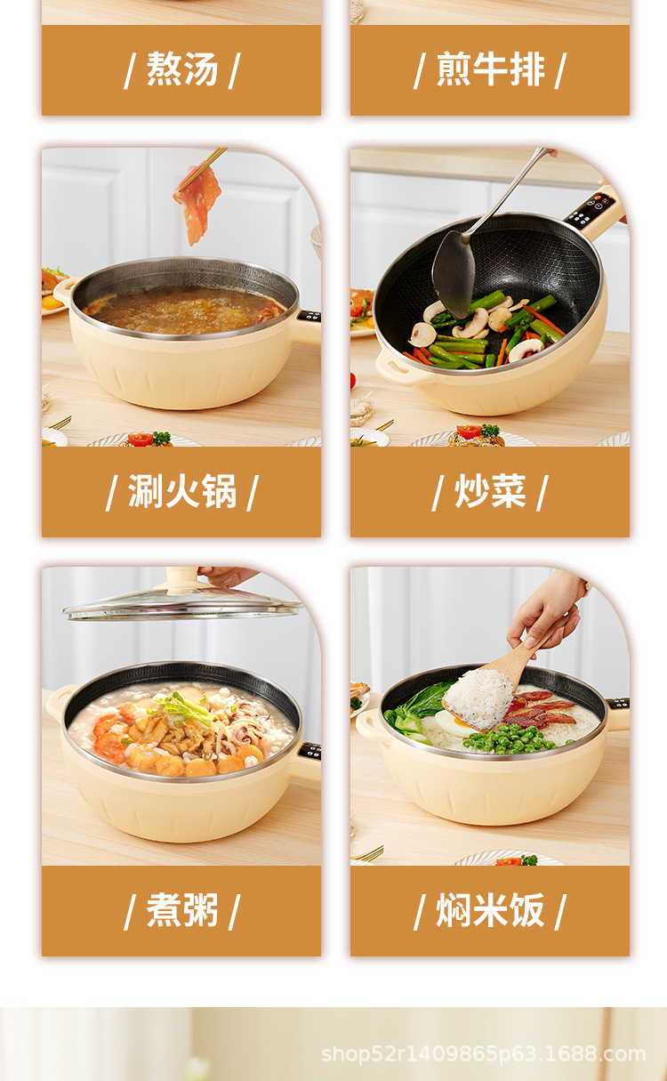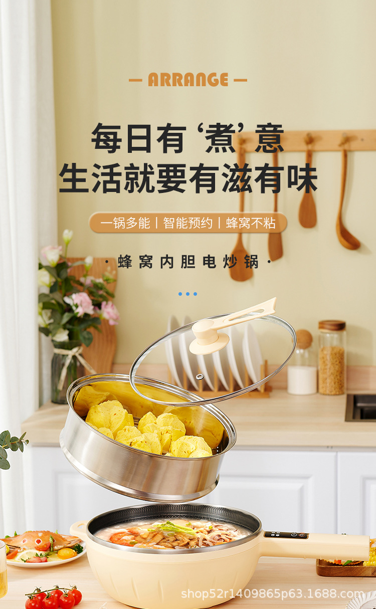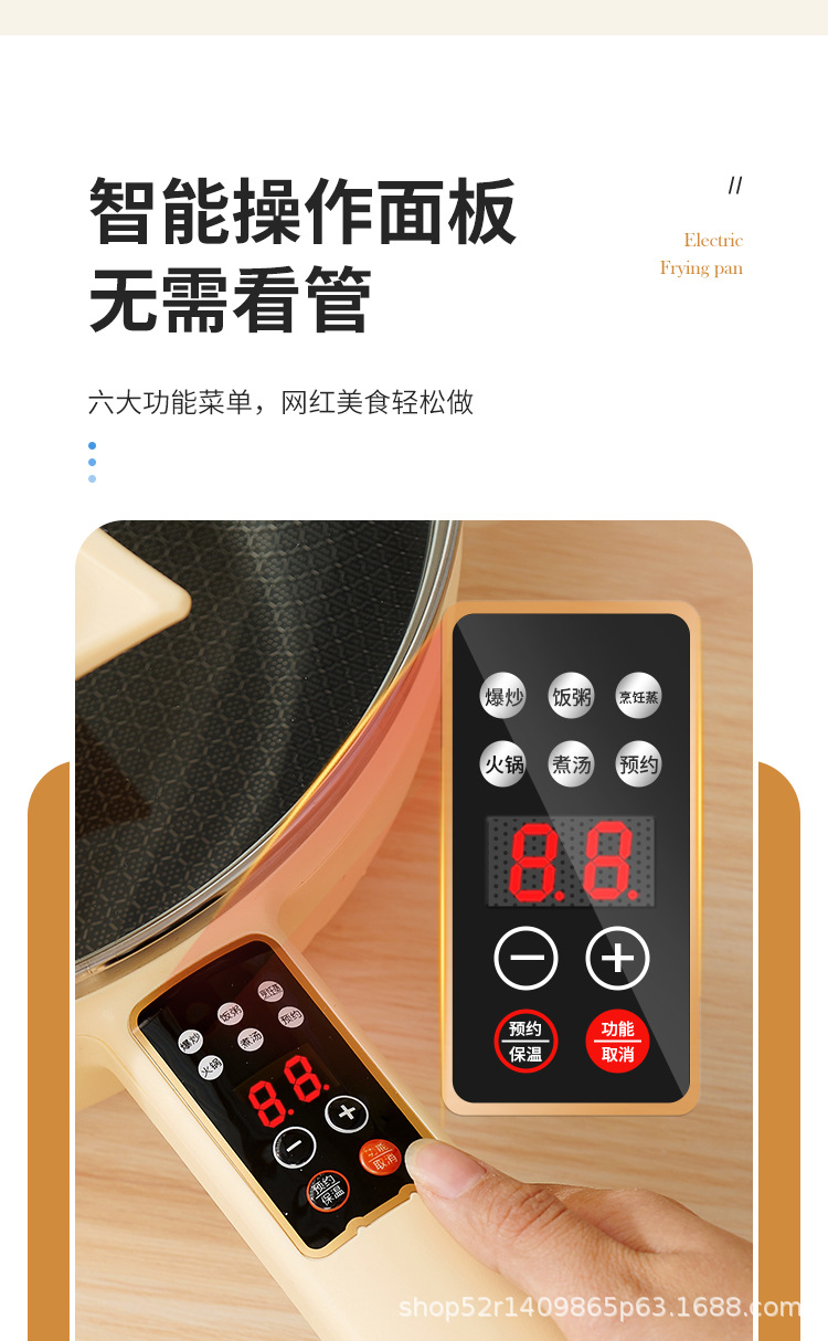 Factory Direct supply electric wok multi-functional household steaming and frying integrated electric hot pot non-stick pan high-power electric cooker
