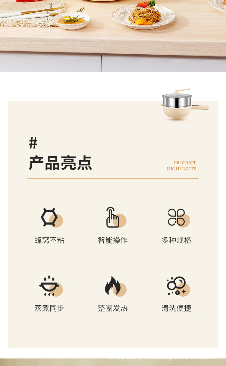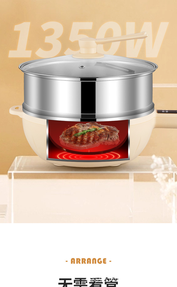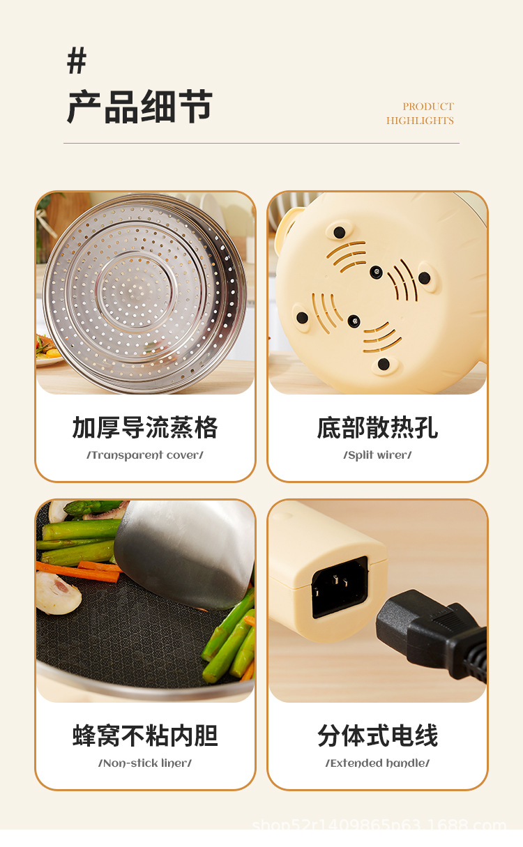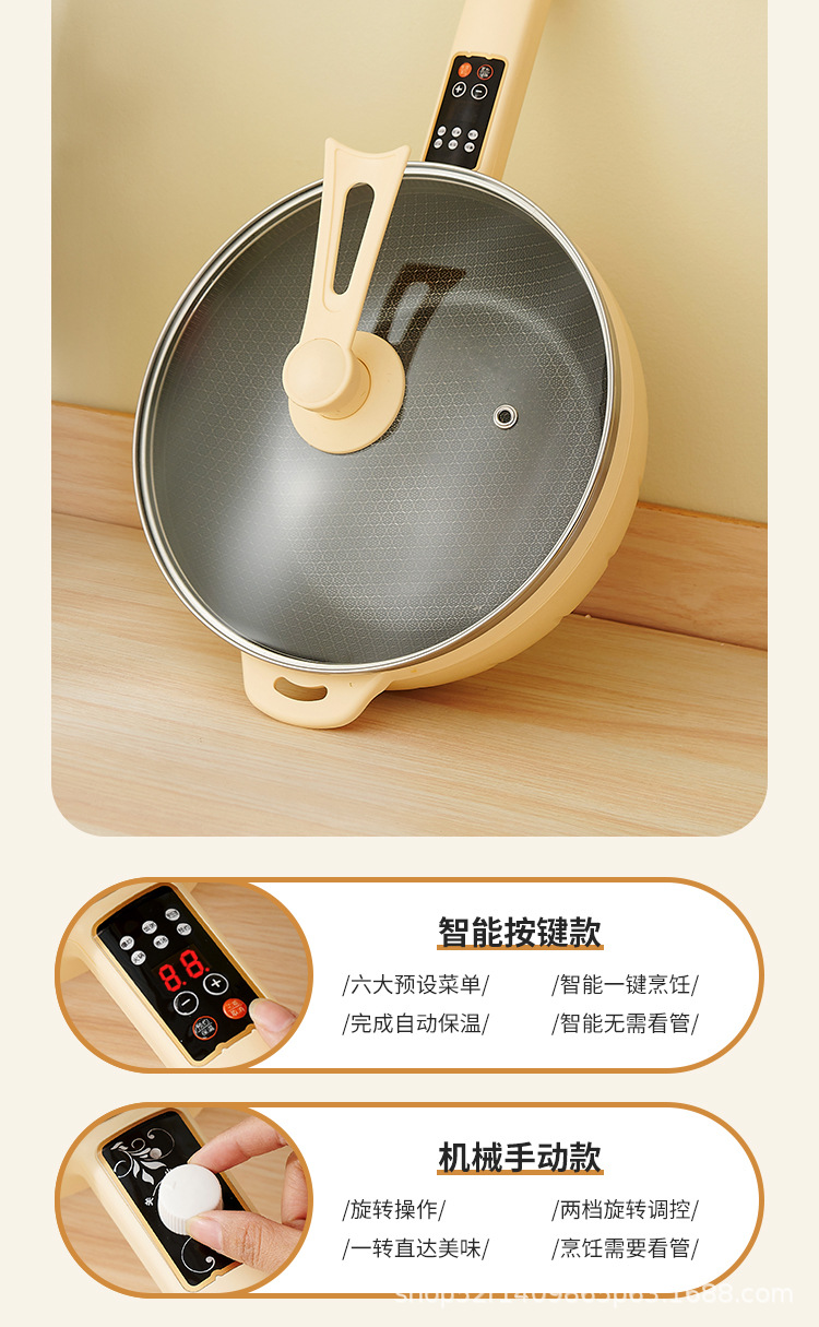 Factory Direct supply electric wok multi-functional household steaming and frying integrated electric hot pot non-stick pan high-power electric cooker
