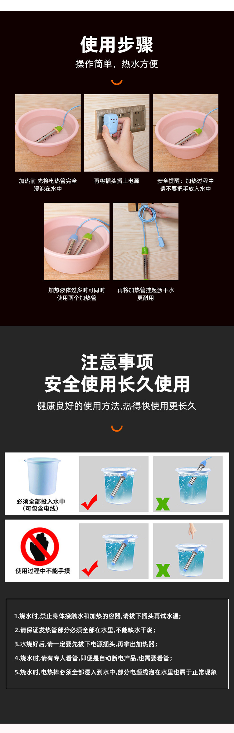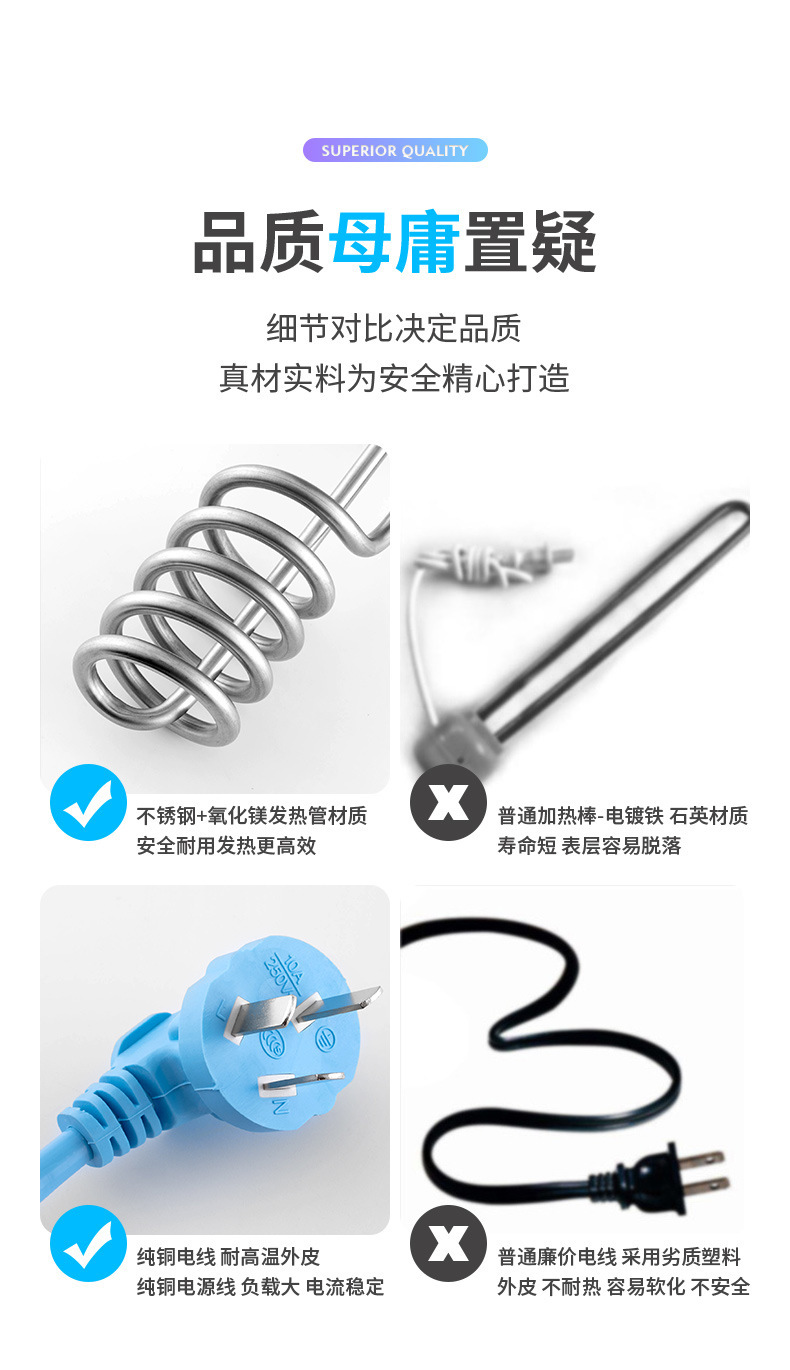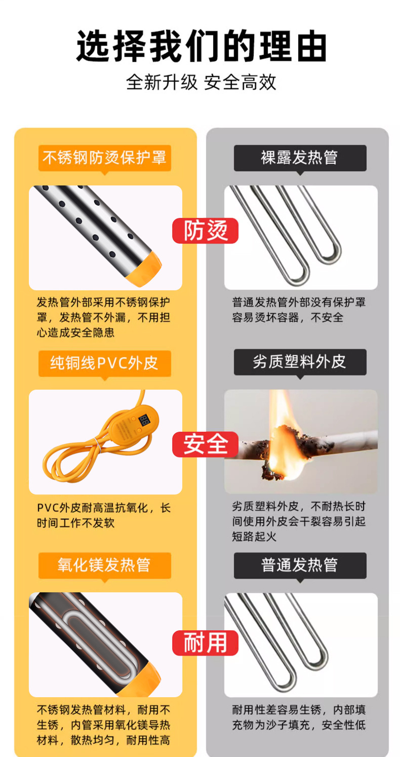 Factory wholesale] Stainless steel hot fast temperature control automatic power off with light heating pipe electric heating Rod Heater