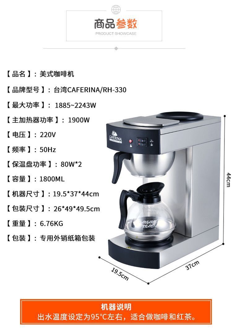 Taiwan CAFERINA coffee machine RH330 semi-automatic American drip filter coffee machine drip tea brewing machine
