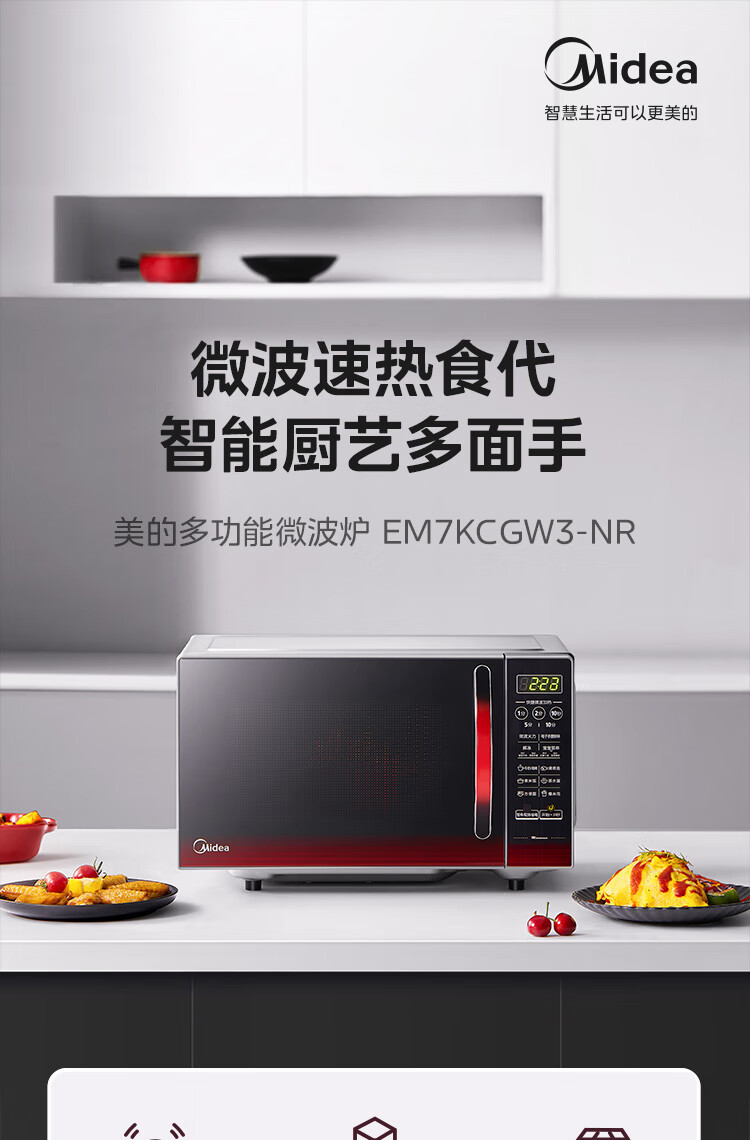 Midea Microwave Oven Household Flat-panel Quick-heating Micro-steaming Intelligent Integrated Multi-functional Menu