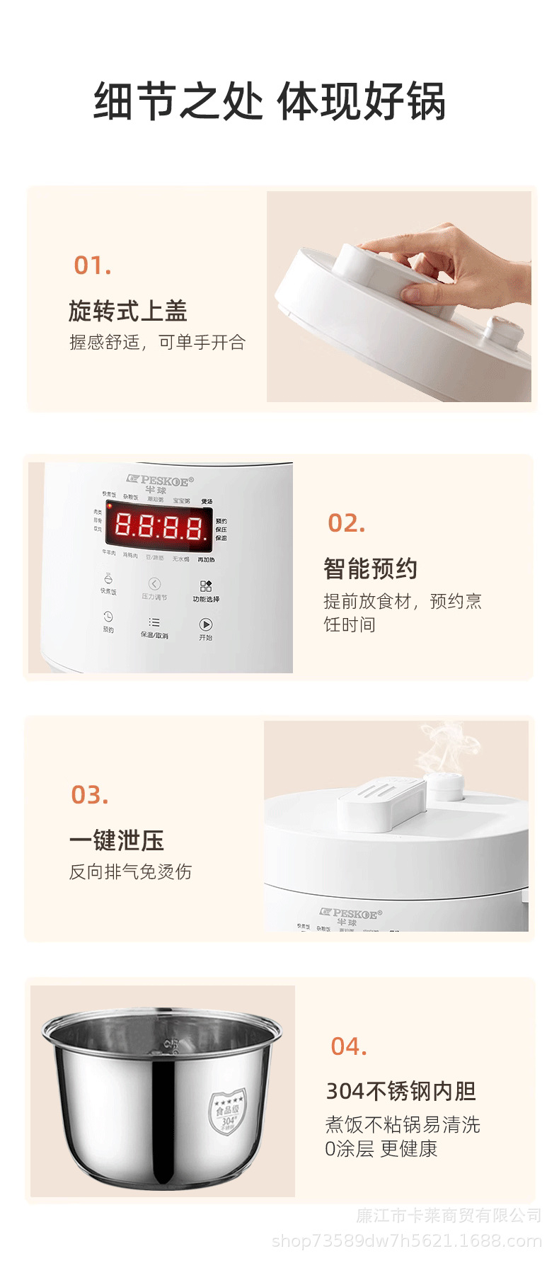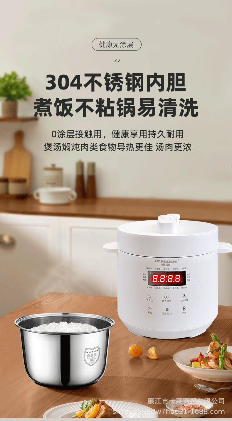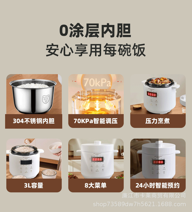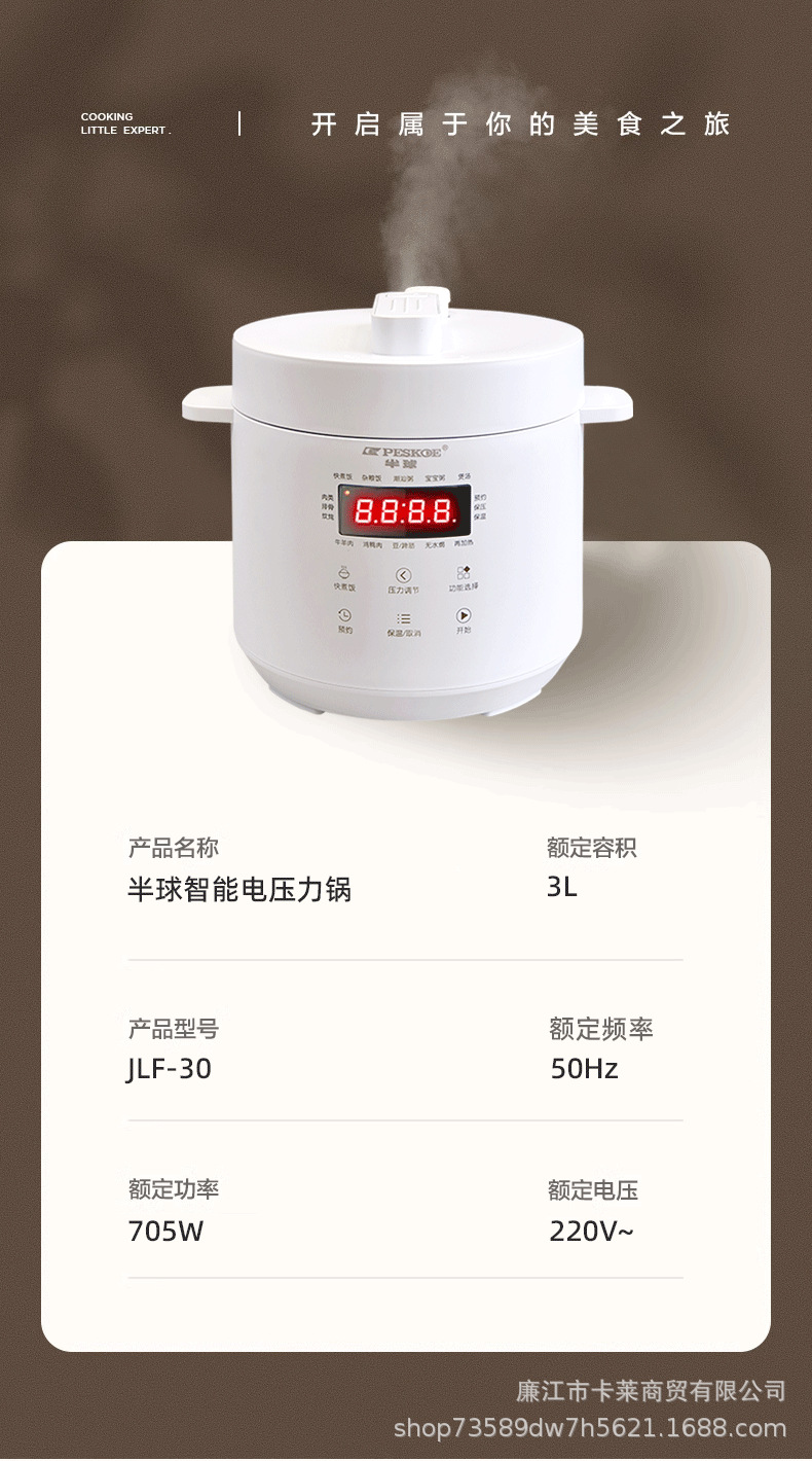 Positive Hemisphere Electric Pressure Cooker 3L Small Mini Multifunctional Automatic High Voltage Rice Cooker 304 Stainless Steel Inner Pot